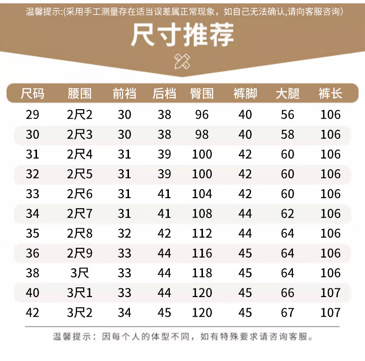 Outseam (cm) 99 cm 101.5 cm 104 cm 106.5 cm 109 cm