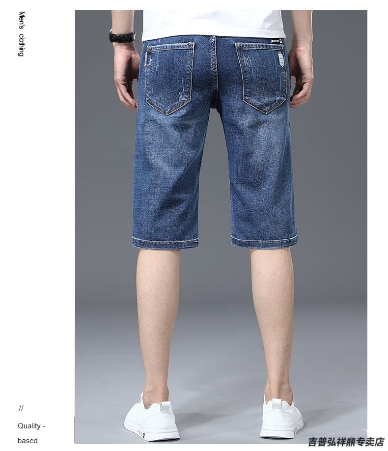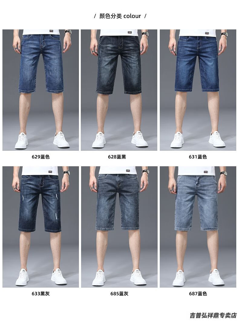 JEEP SPIRIT Pantalones cortos de mezclilla finos de verano para hombre, pantalones sueltos informales de moda cinco quintos 2025, nuevos pantalones elásticos medianos para hombre XBL-631 Azul + XBL-687 Azul 28 100-109 Jin Jin equivale a 0,5 kg