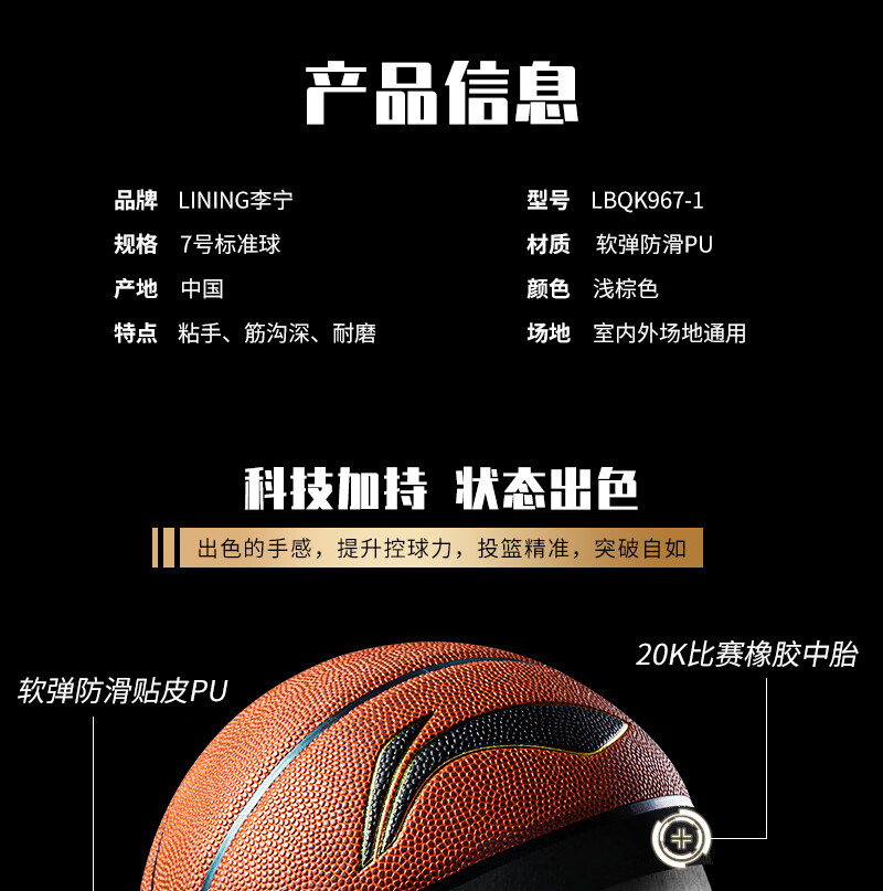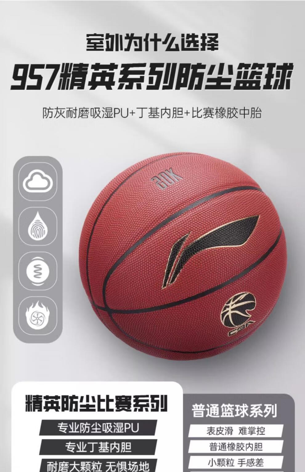 iosn李柠篮球957男CBA专用7号室内外用中考比赛用967蓝球20K礼物 李宁957-3[20K精英防尘款B80 七号篮球