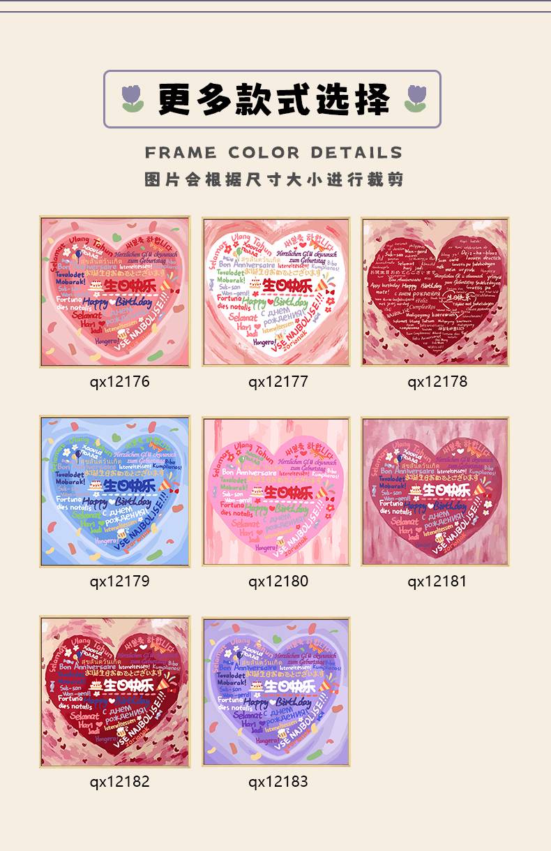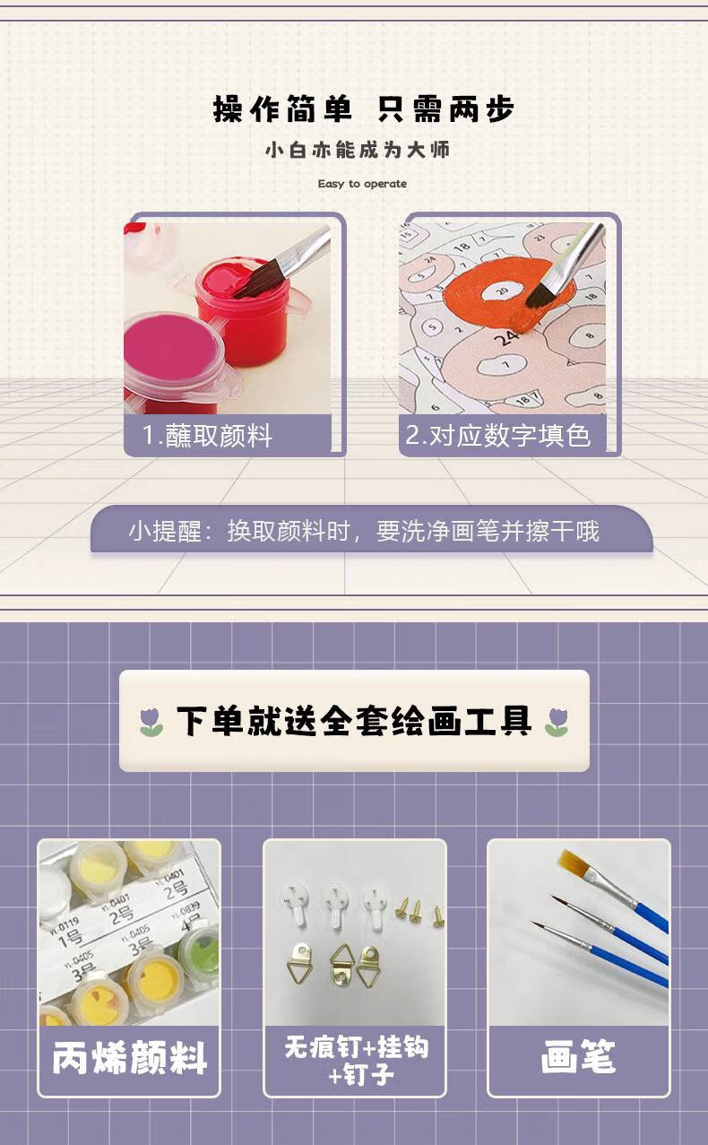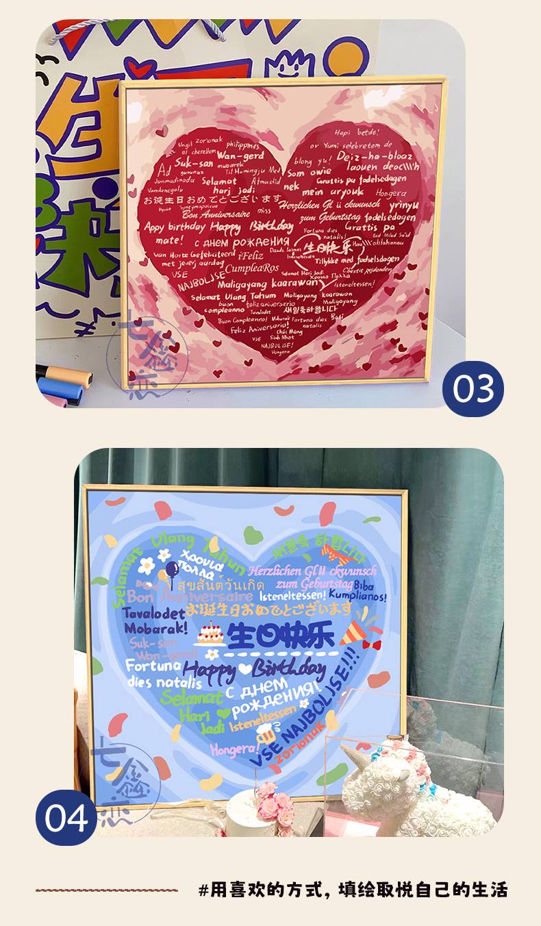 三栖虎生日快乐数字油画填充涂鸦填色手工礼物手绘爱心丙烯画装饰画 qx12176 80*80cm加厚实木内框+装饰外框