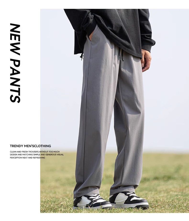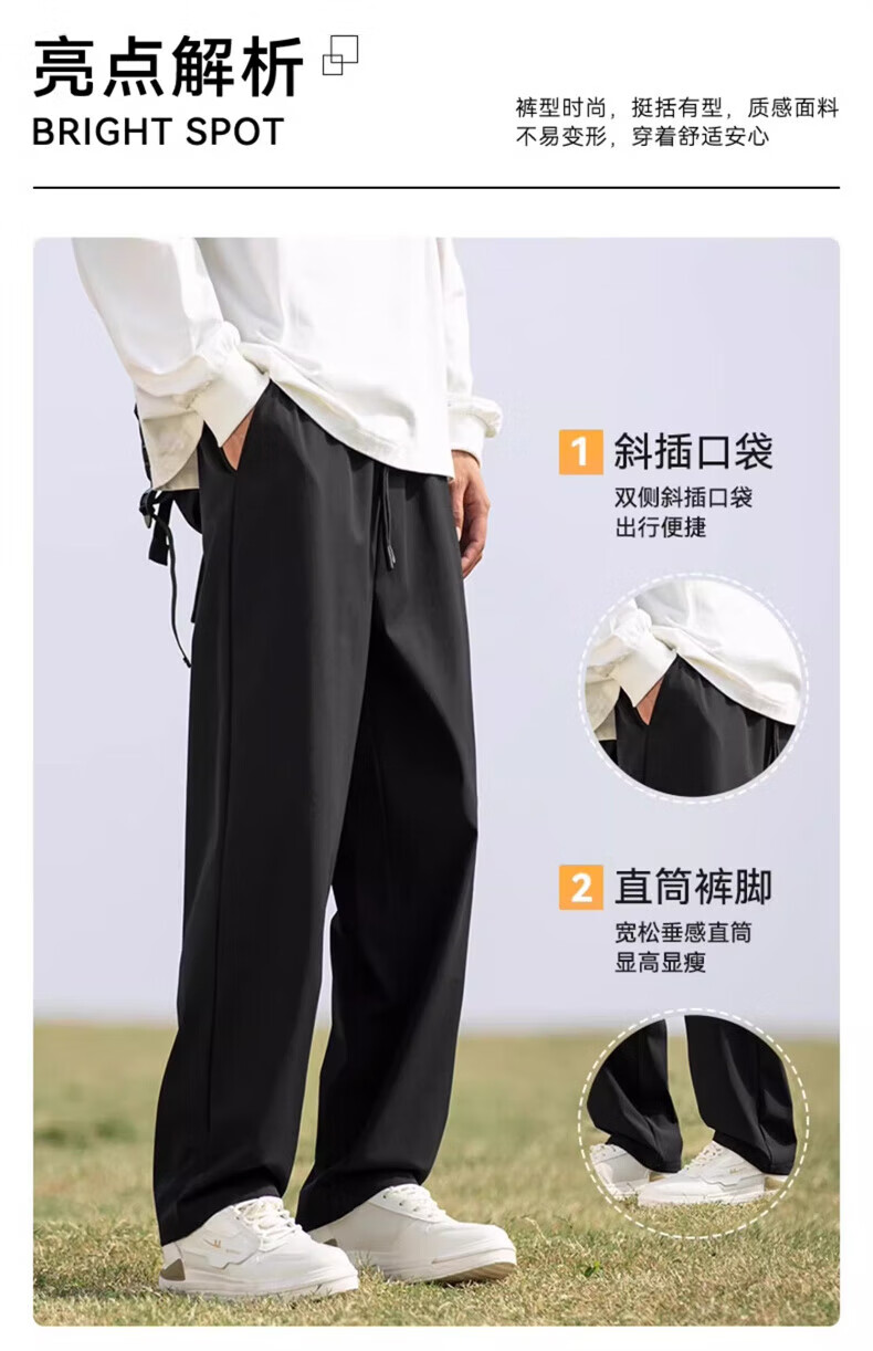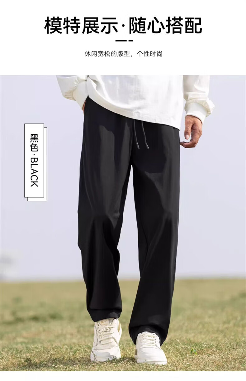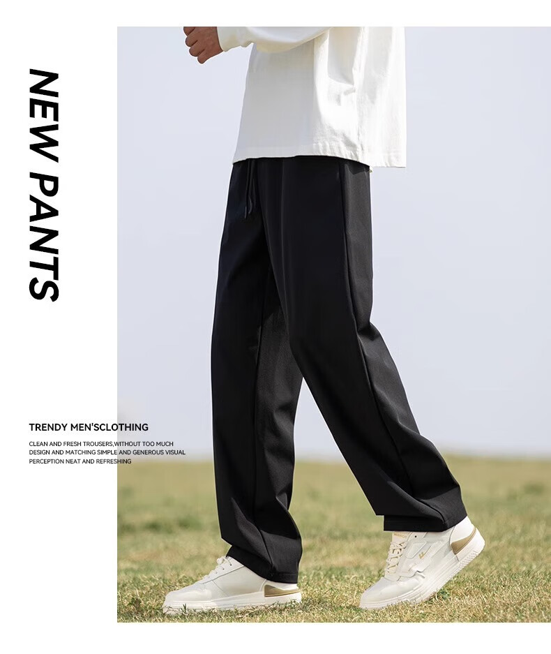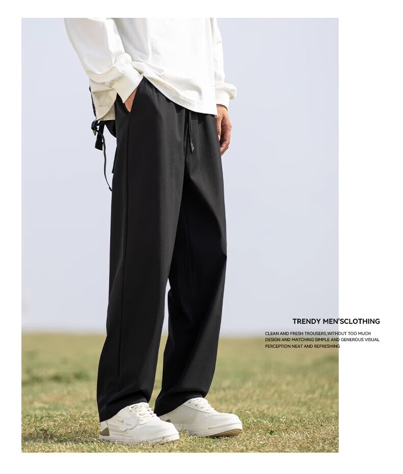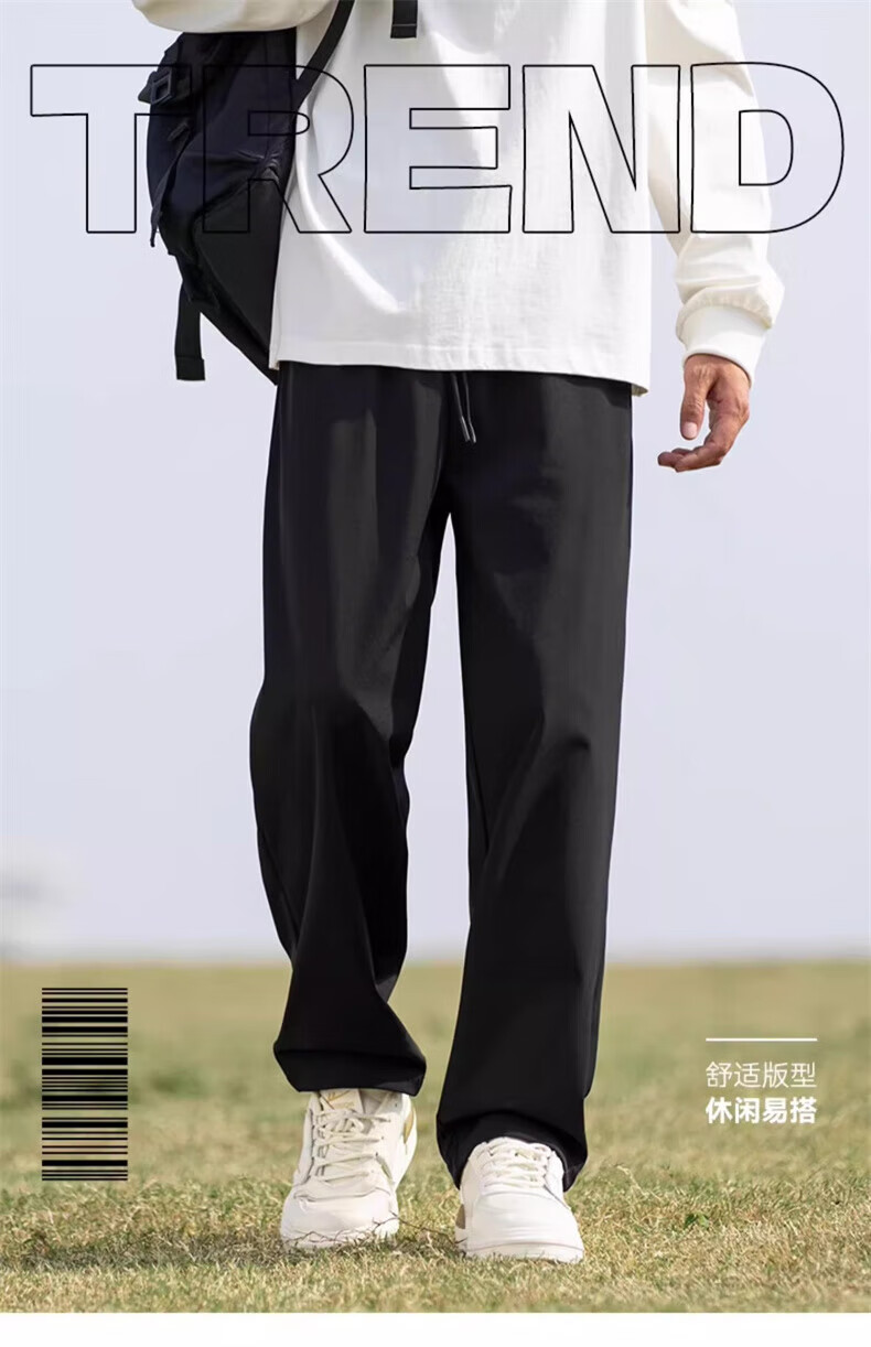 Pull back long pants men's autumn and winter 2025 new vertical straight plus velvet casual pants men's loose sports pants black spring and autumn XL