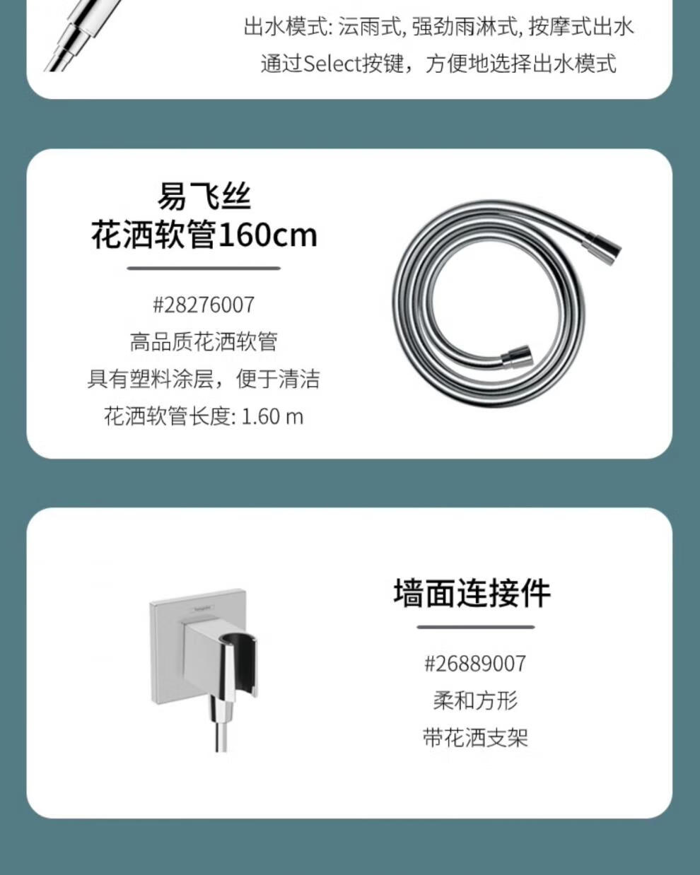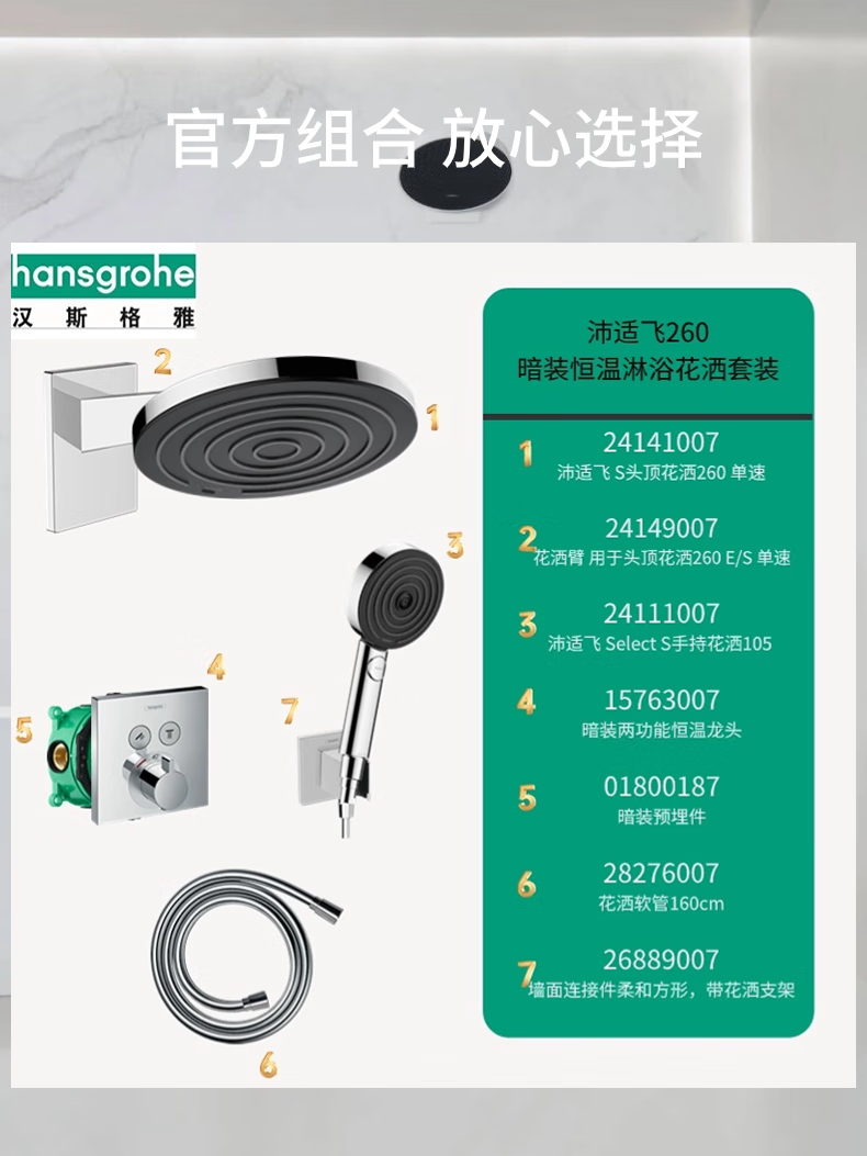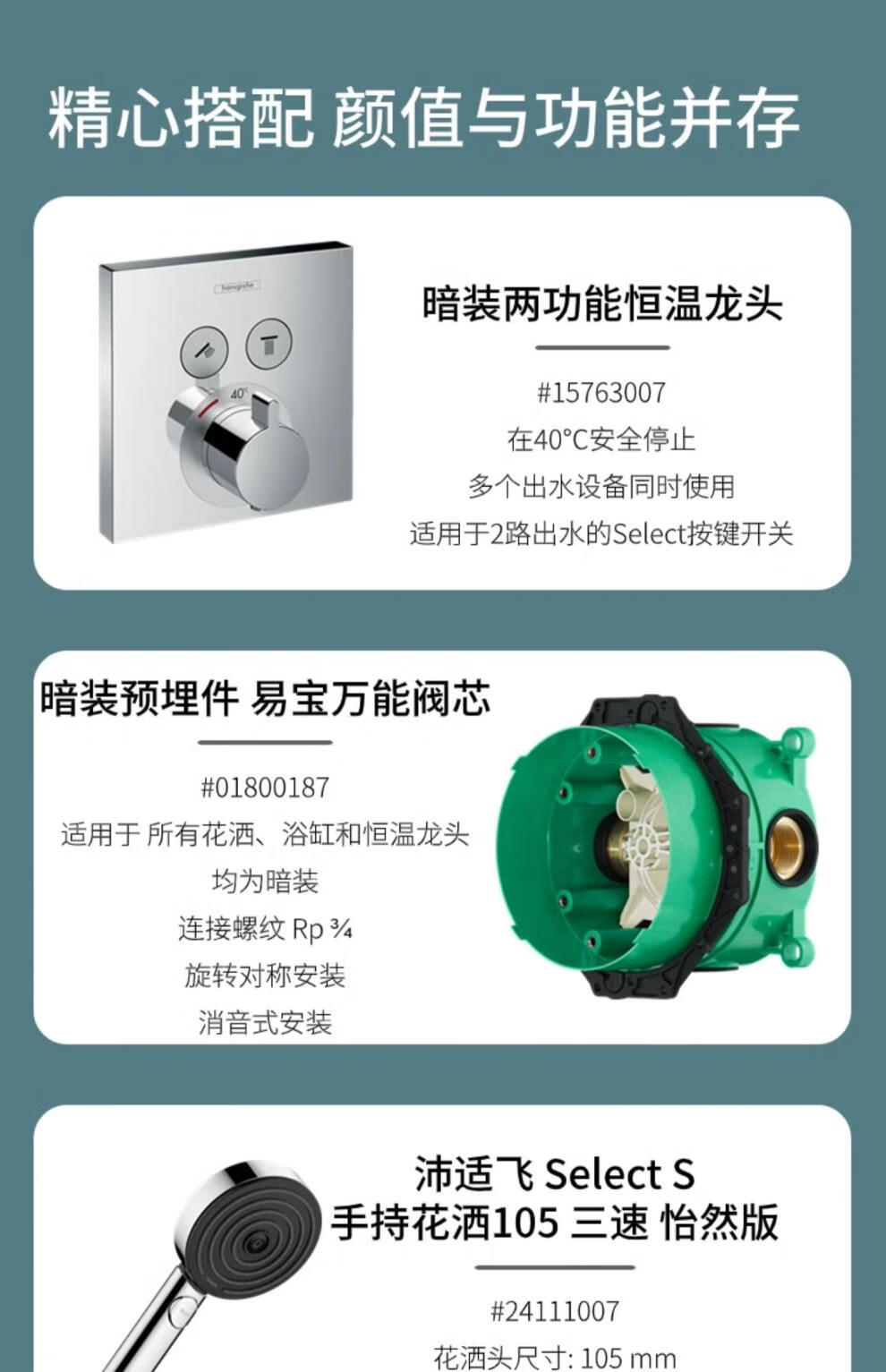 汉斯格雅(Hansgrohe)沛适飞暗装花洒套餐24141007/24149007/1576300724111007 镀铬24141007/24149007/15763