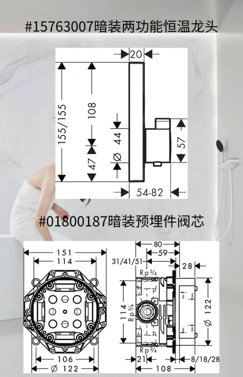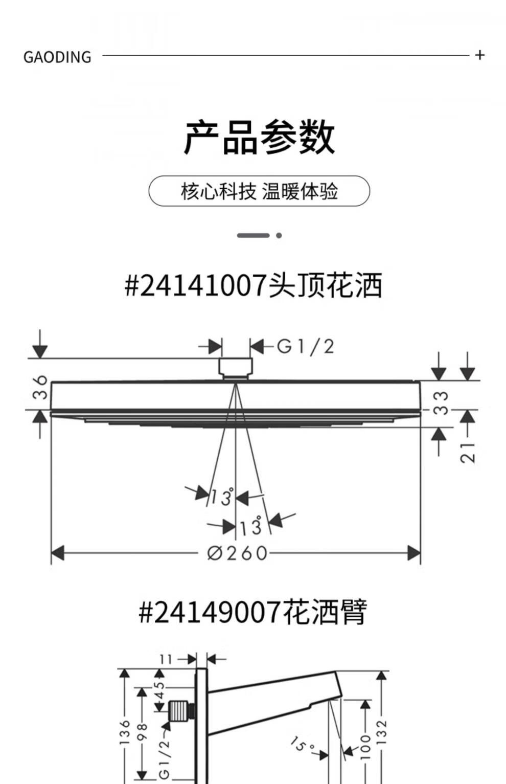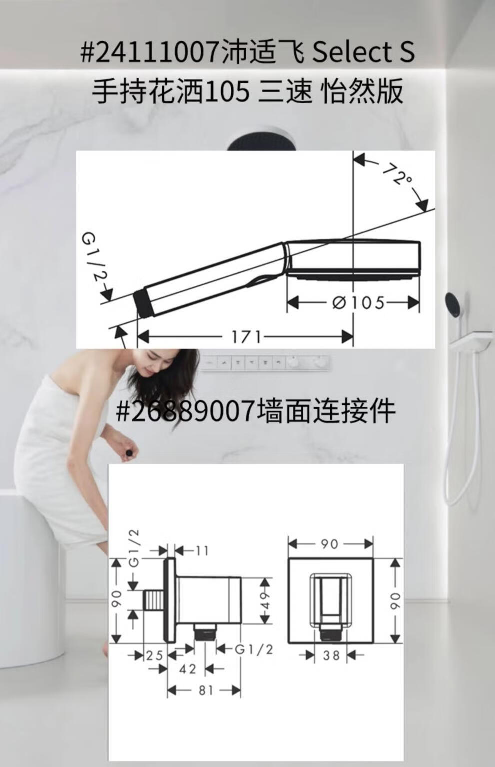汉斯格雅(Hansgrohe)沛适飞暗装花洒套餐24141007/24149007/1576300724111007 镀铬24141007/24149007/15763