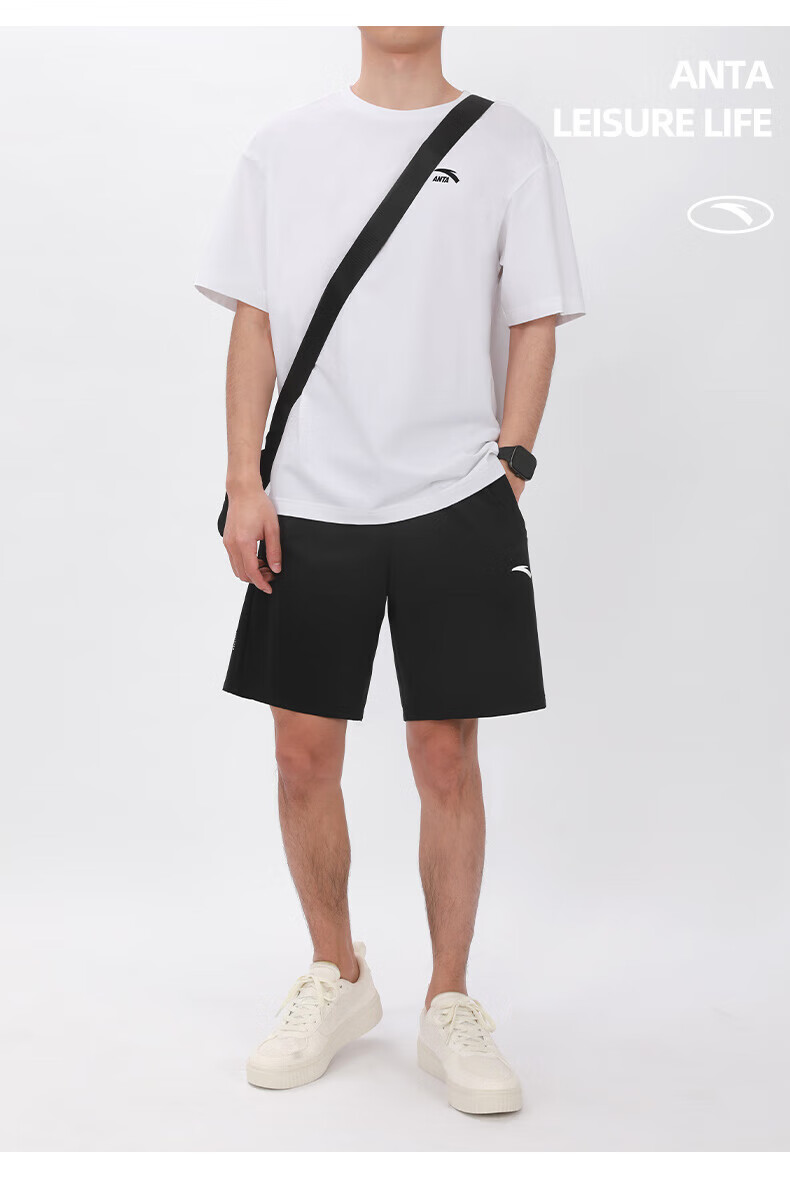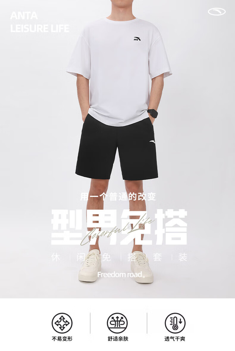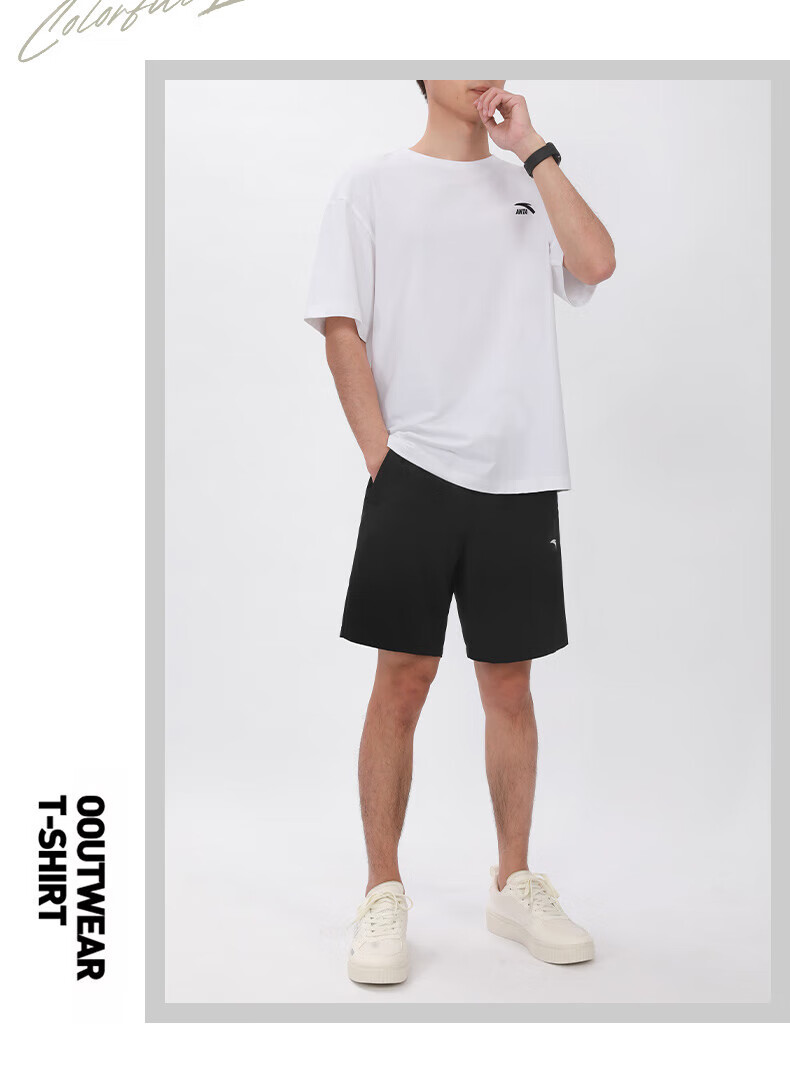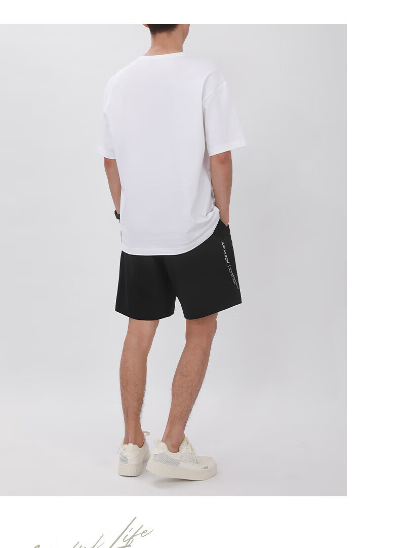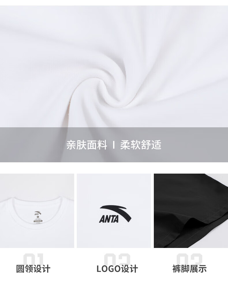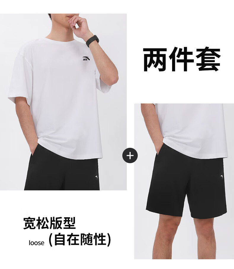 安踏休闲运动套装男夏季新款纯棉短袖T恤短裤宽松运动服青少年两件套 【套装】-1纯净白 L/175