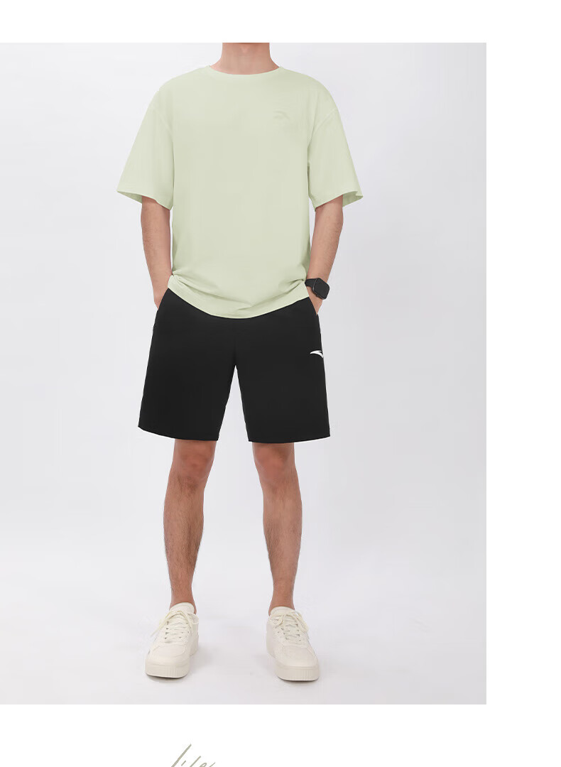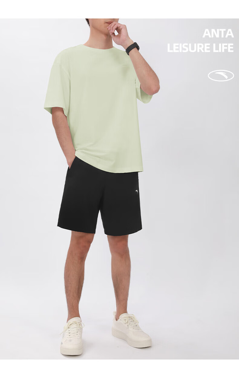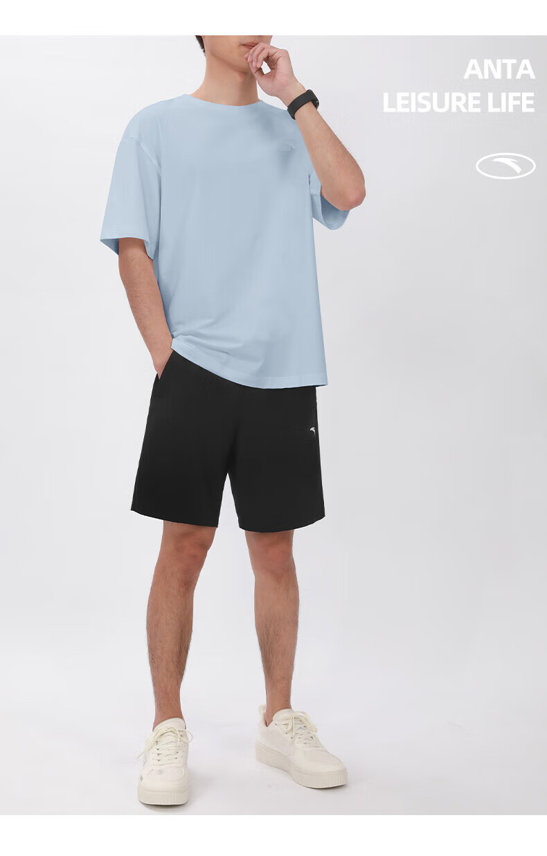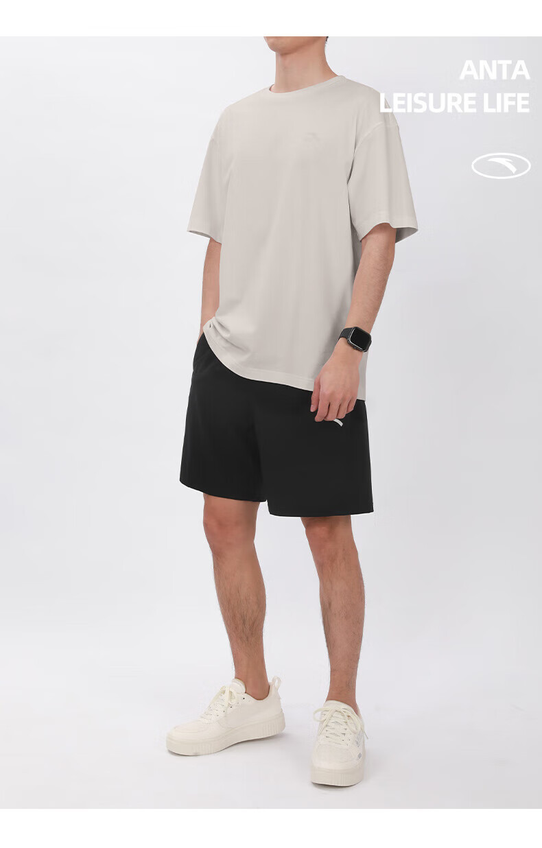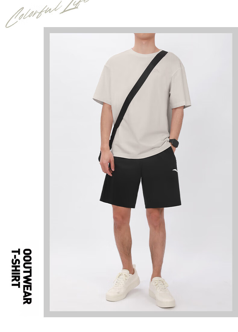 安踏休闲运动套装男夏季新款纯棉短袖T恤短裤宽松运动服青少年两件套 【套装】-1纯净白 L/175