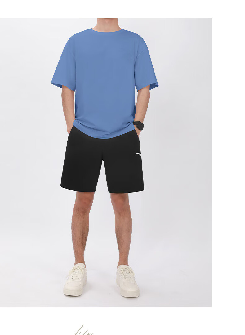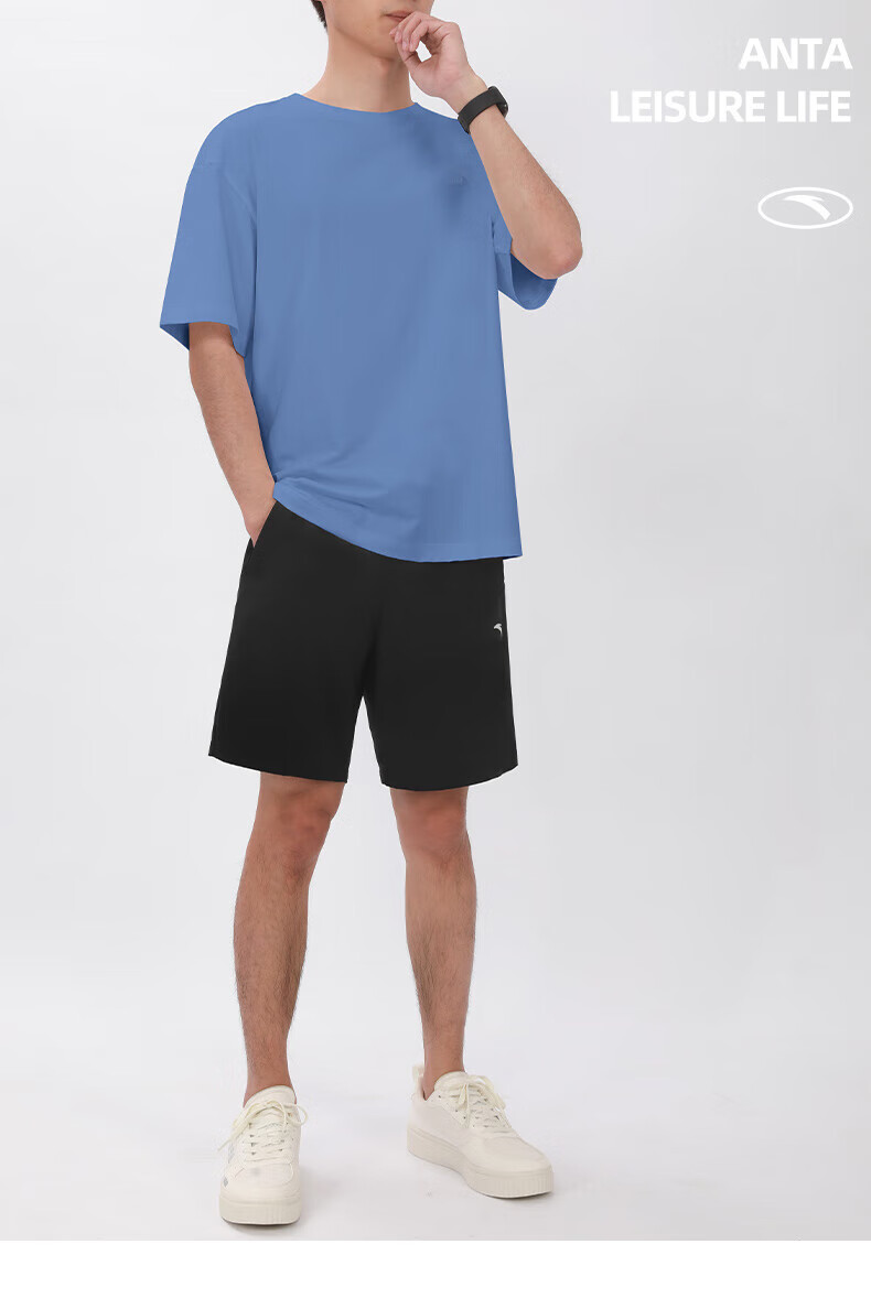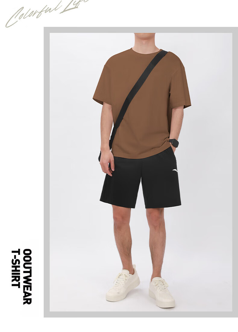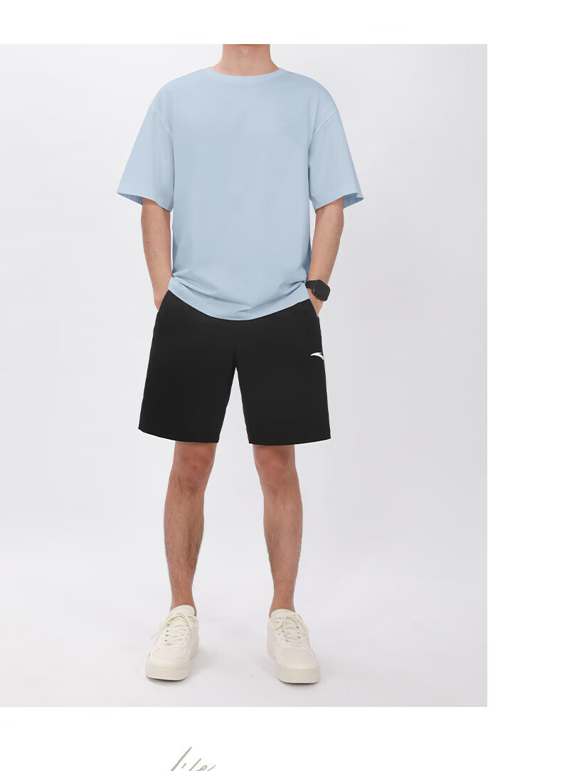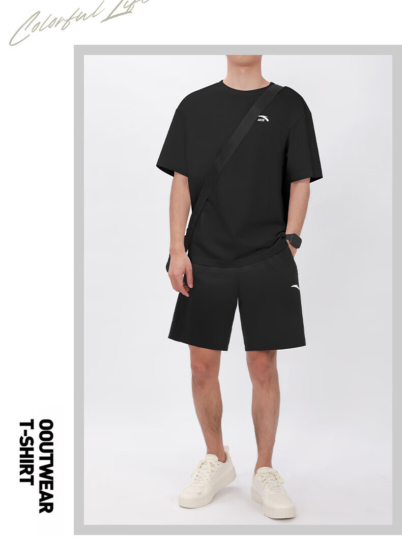 安踏休闲运动套装男夏季新款纯棉短袖T恤短裤宽松运动服青少年两件套 【套装】-1纯净白 L/175