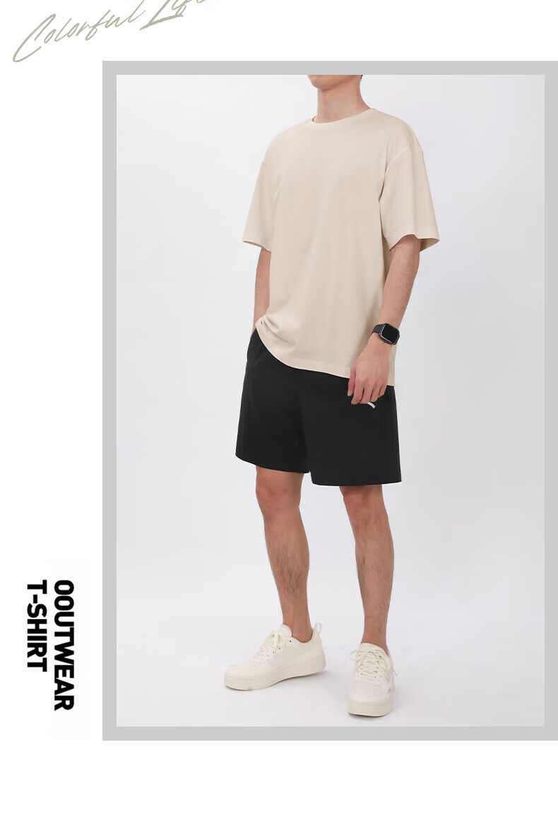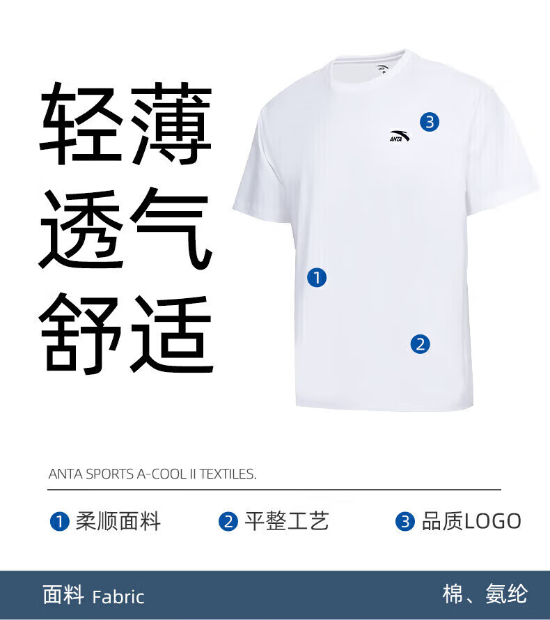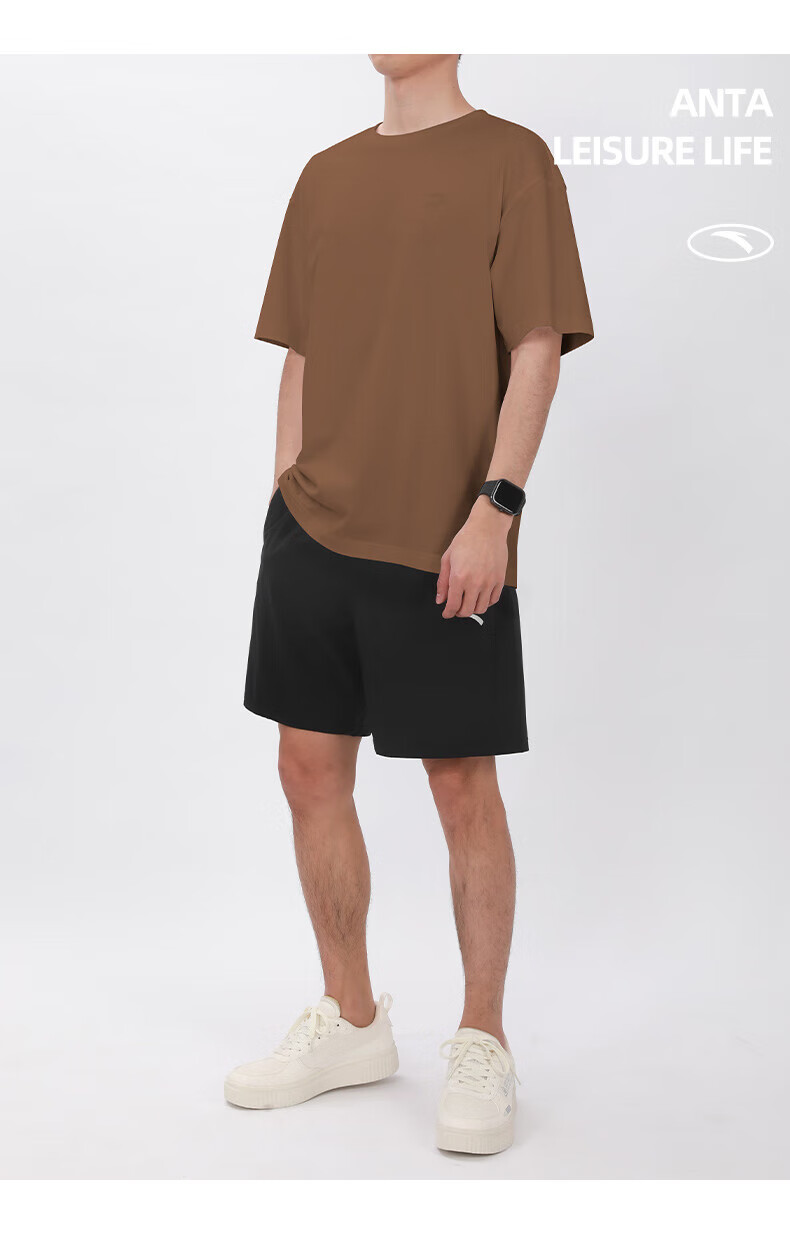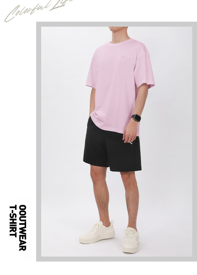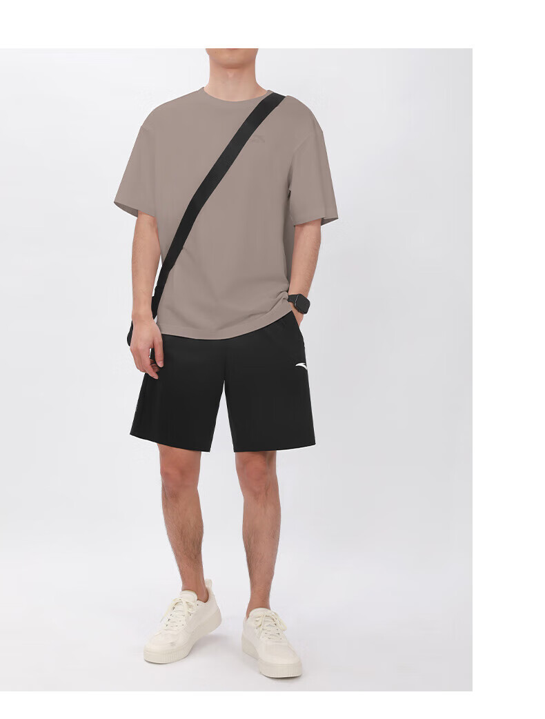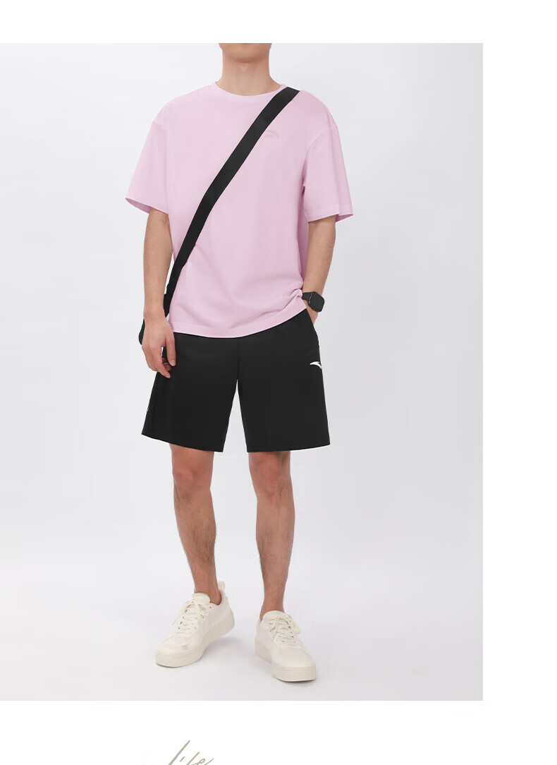 安踏休闲运动套装男夏季新款纯棉短袖T恤短裤宽松运动服青少年两件套 【套装】-1纯净白 L/175