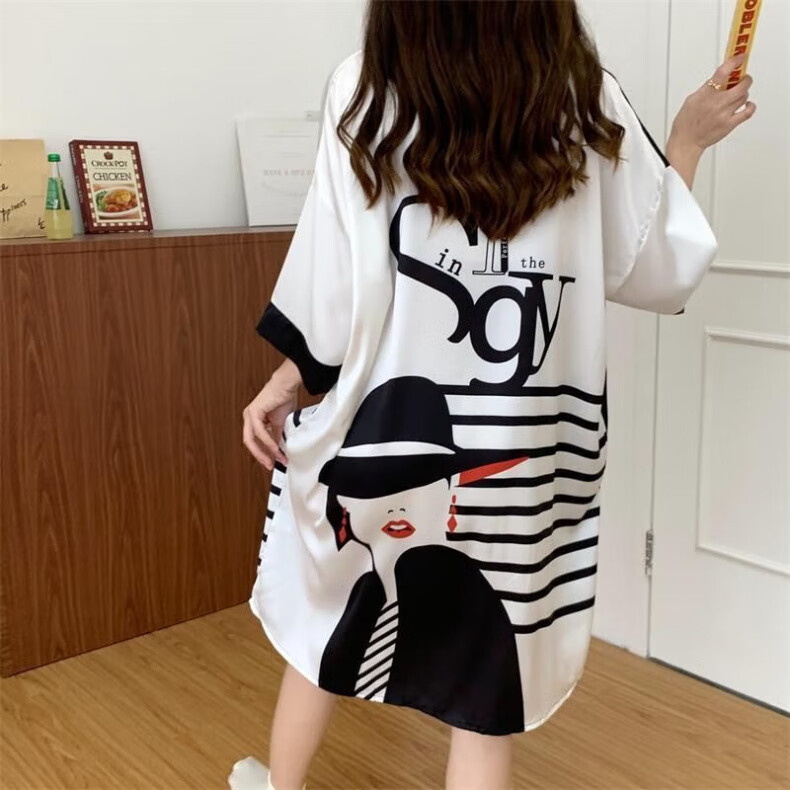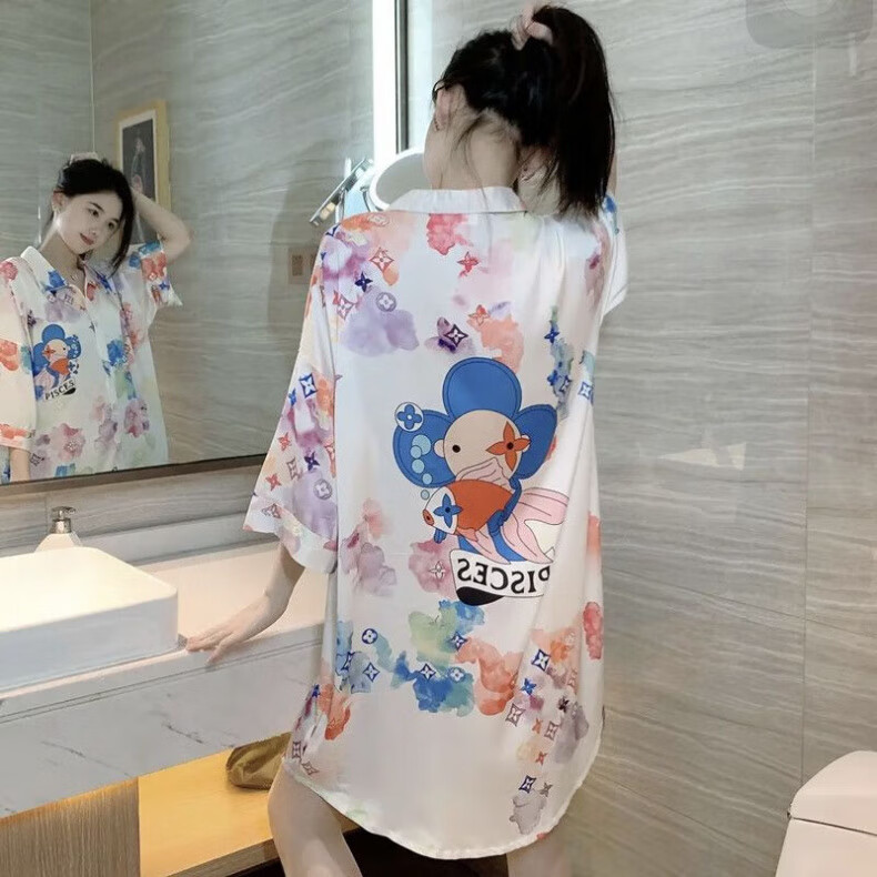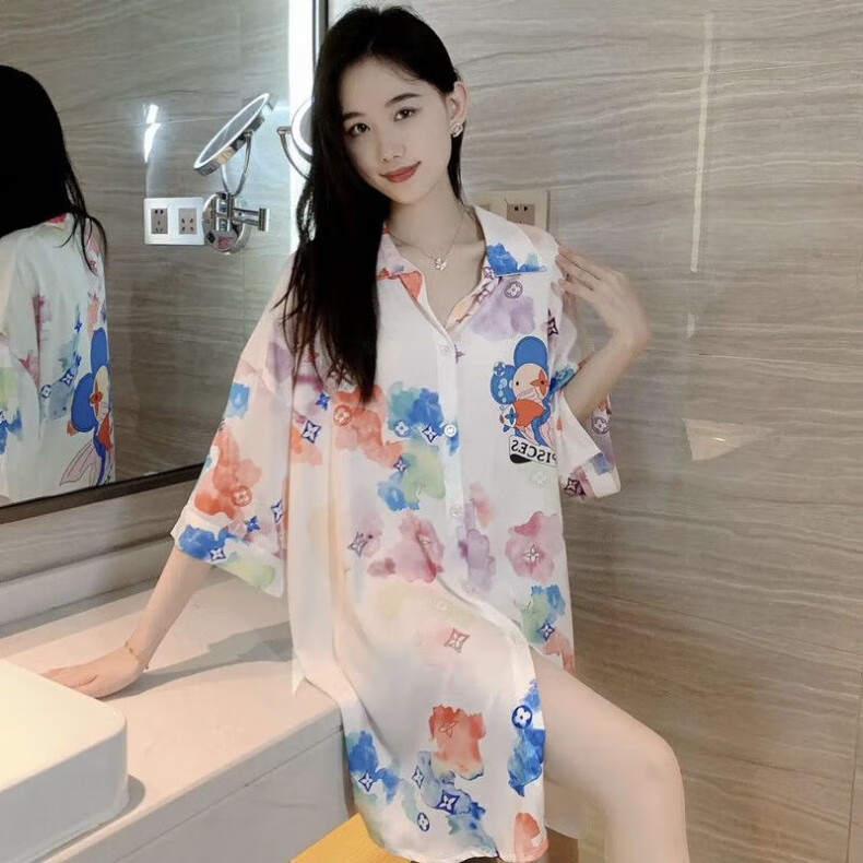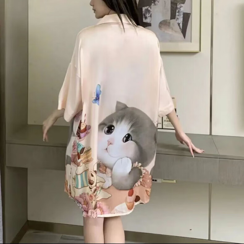 汀泺睡裙女士夏季性感冰丝纯欲风睡衣加大码家居服女大学生连衣裙青年 719橘色猫咪[单件裙] M [80-100斤]