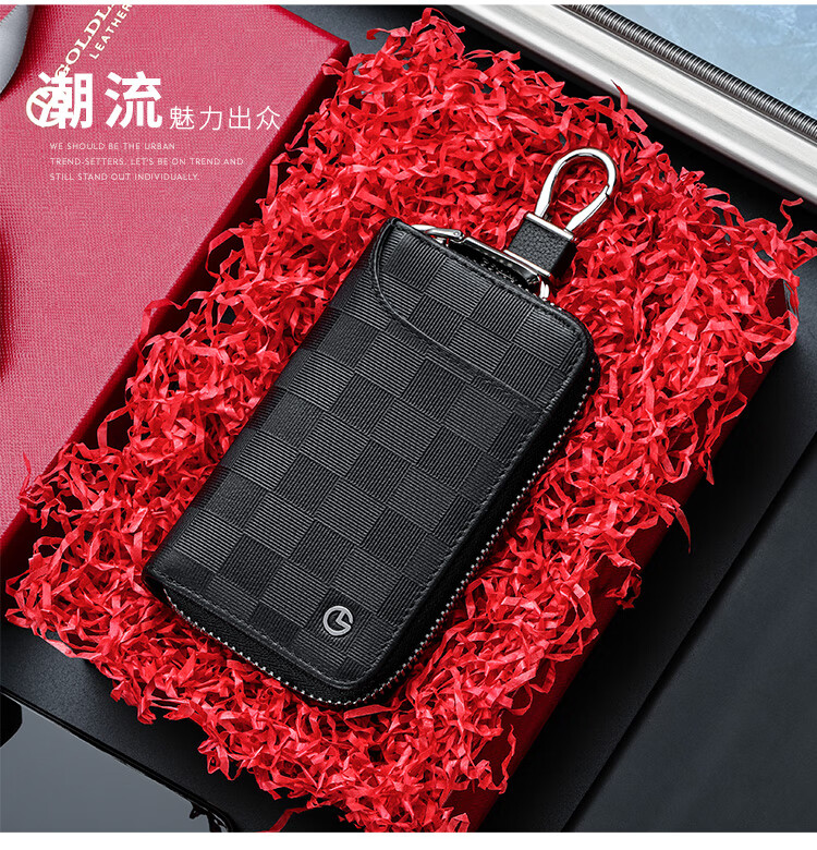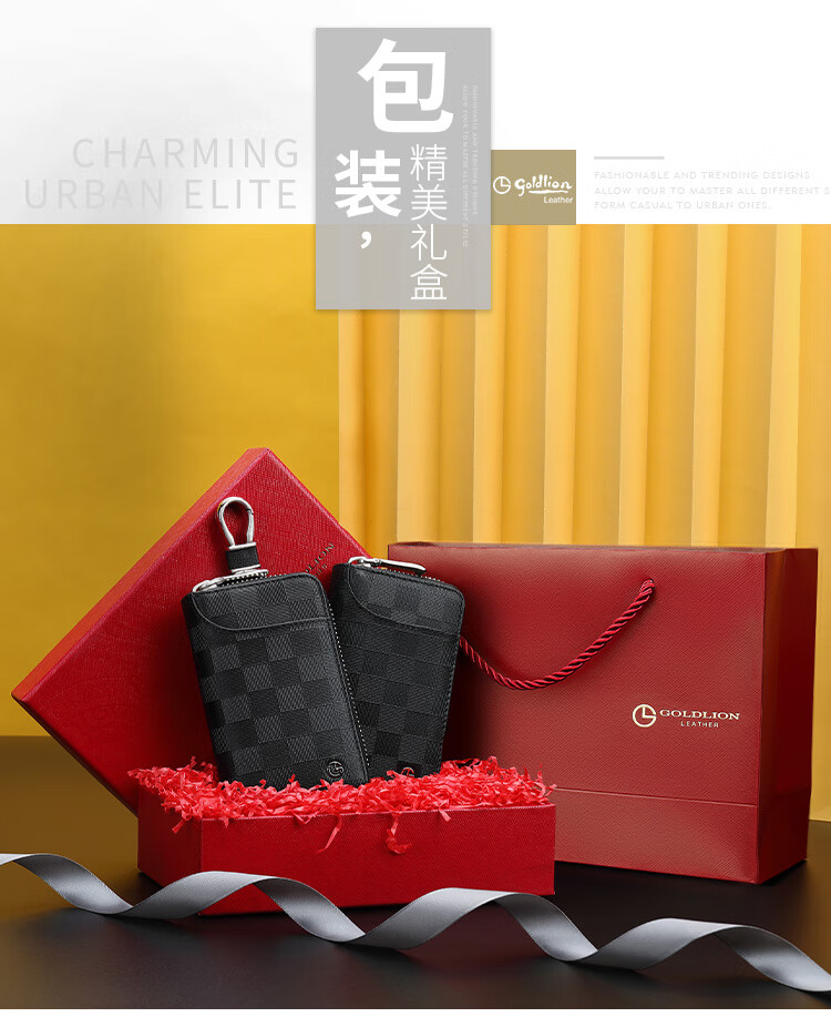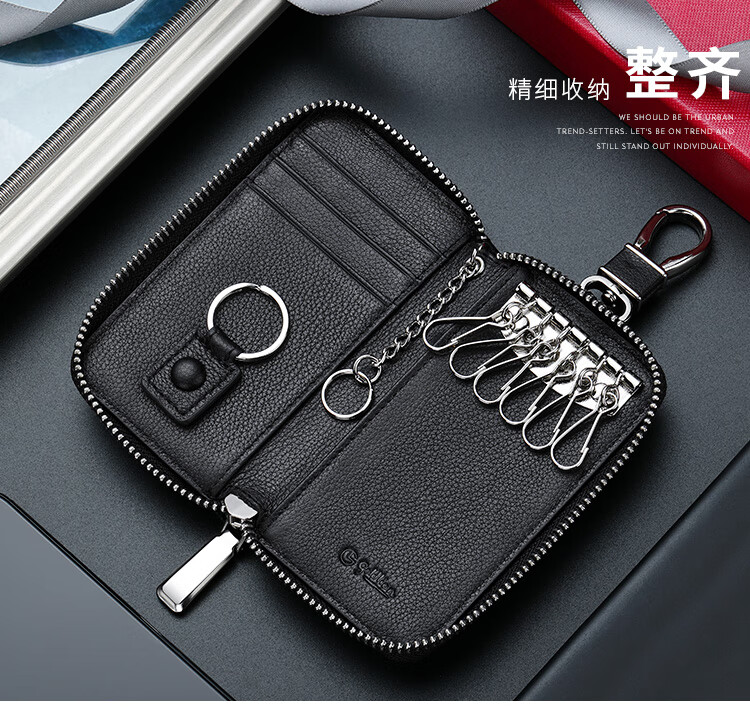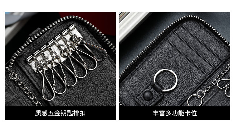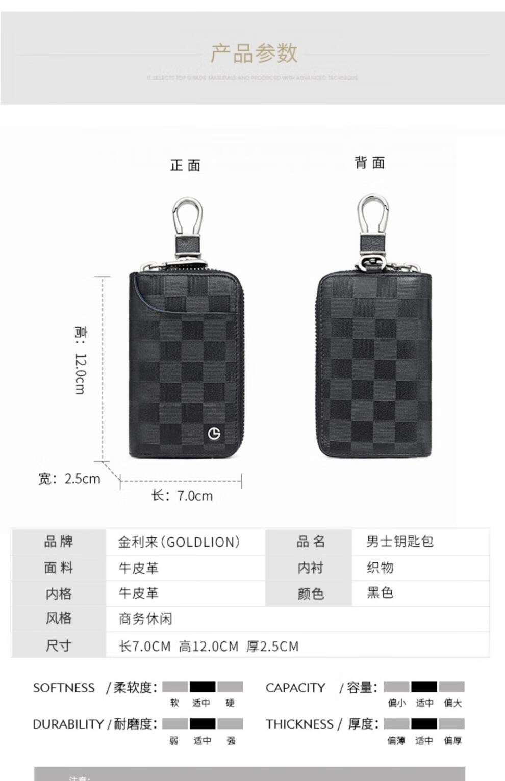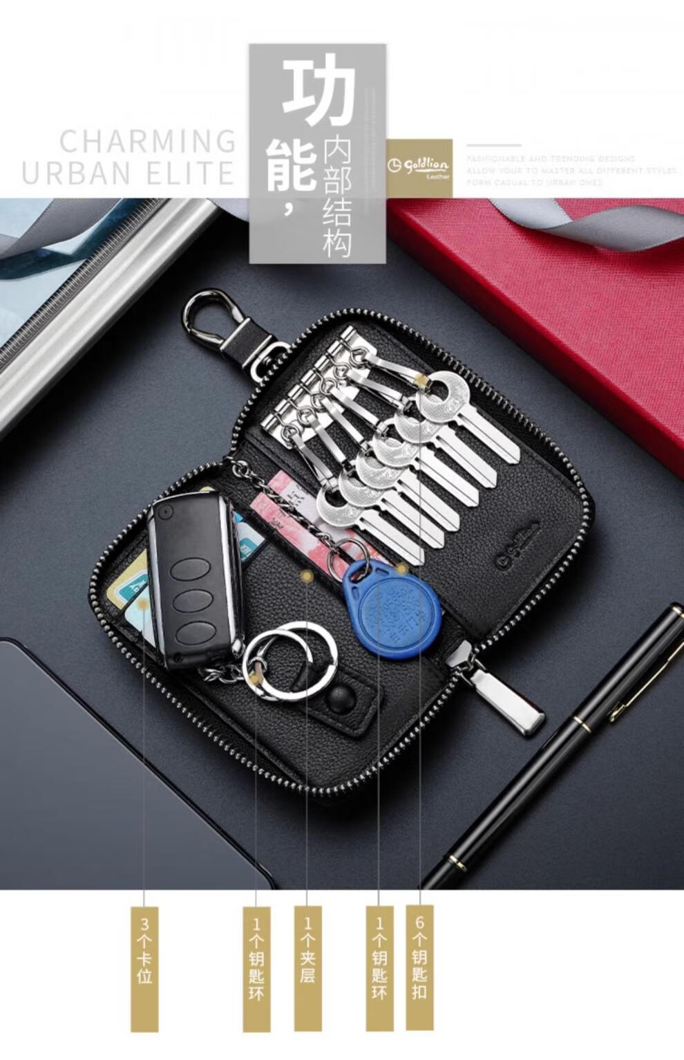 GOLDLION G+金利来新款钥匙包男真皮钥匙袋一体头层牛皮腰挂汽车锁匙包卡包潮 黑