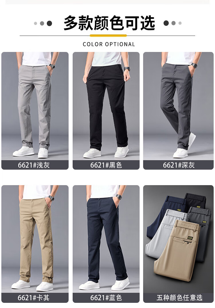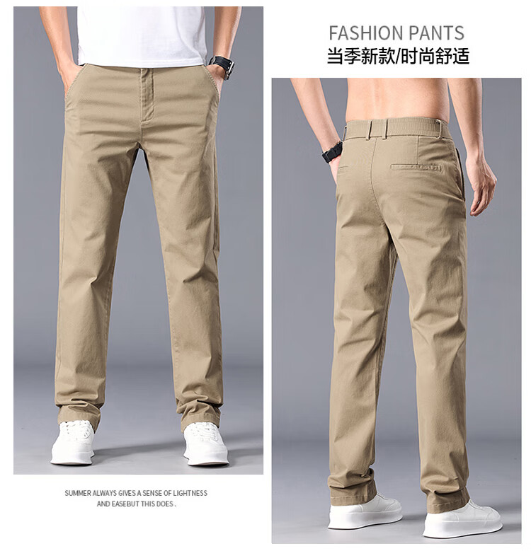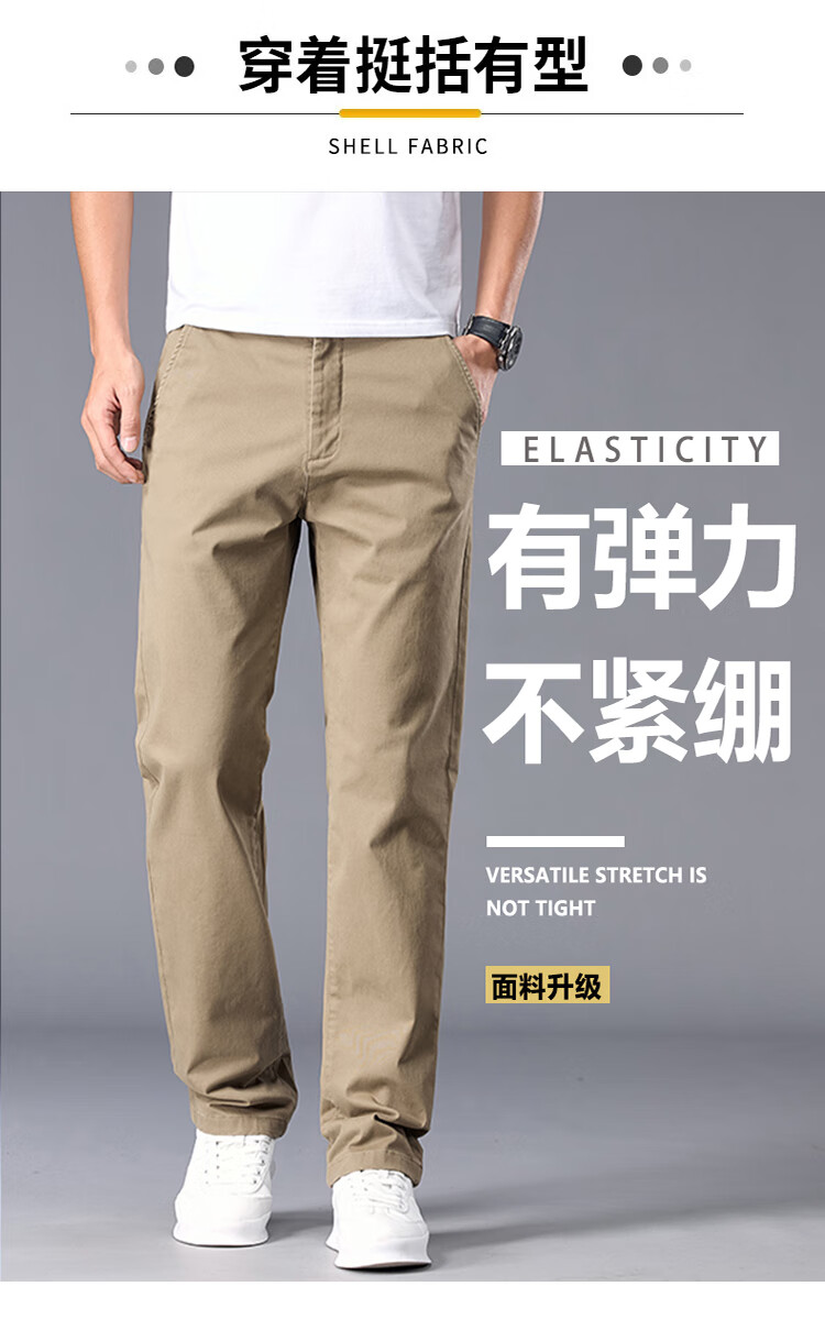 利郎2025新款半松紧腰休闲裤男士中年百搭简约直筒 卡其色6621 28