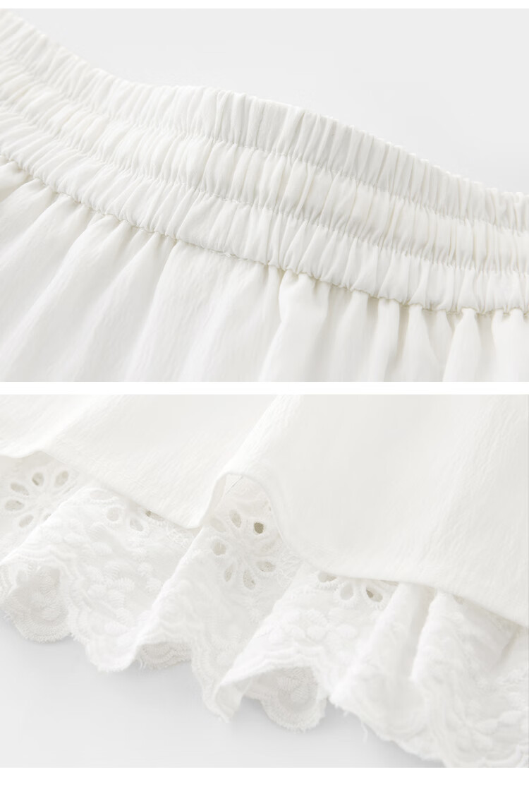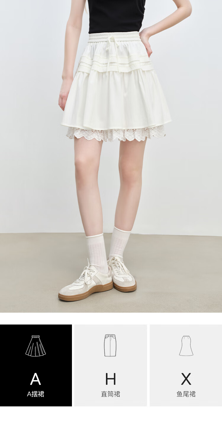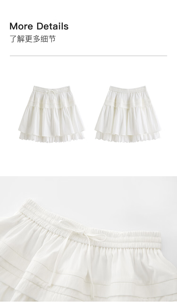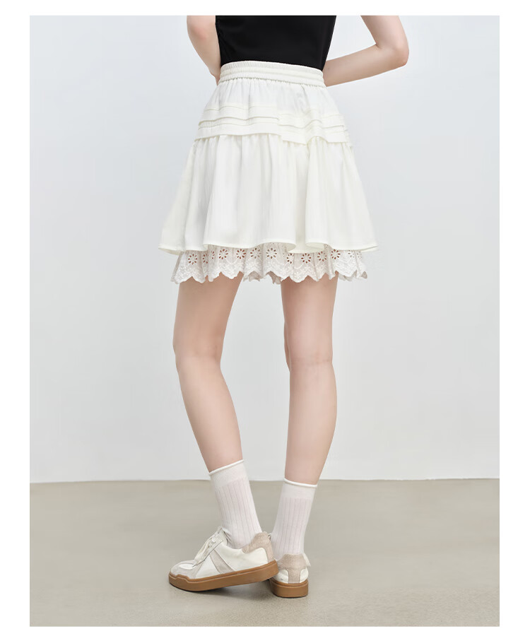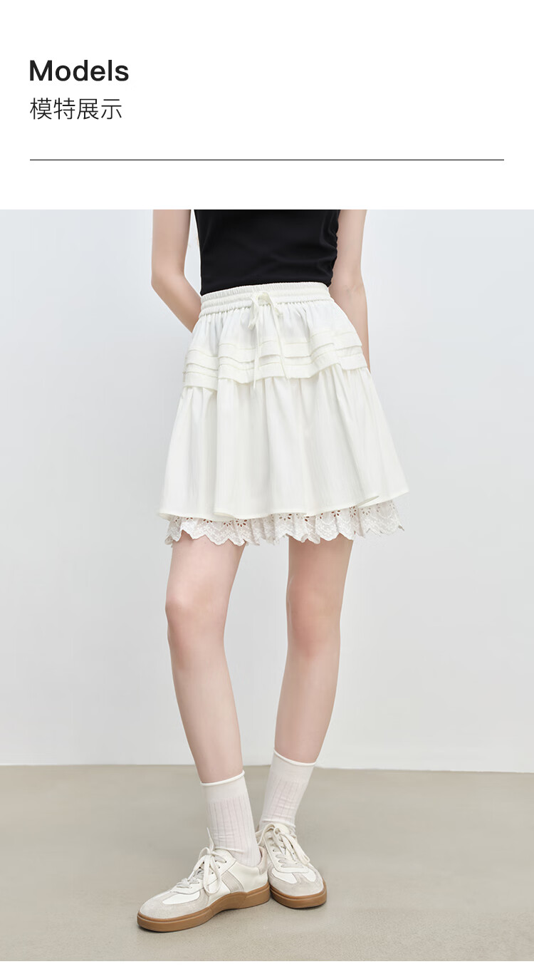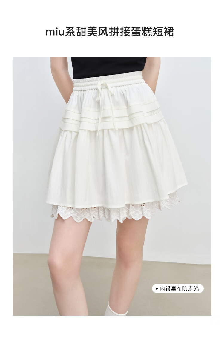 自巧小个子蕾丝拼接设计感短款半身裙女夏季2025新款蛋糕a字短裙 雅白色 S (尺码:3)