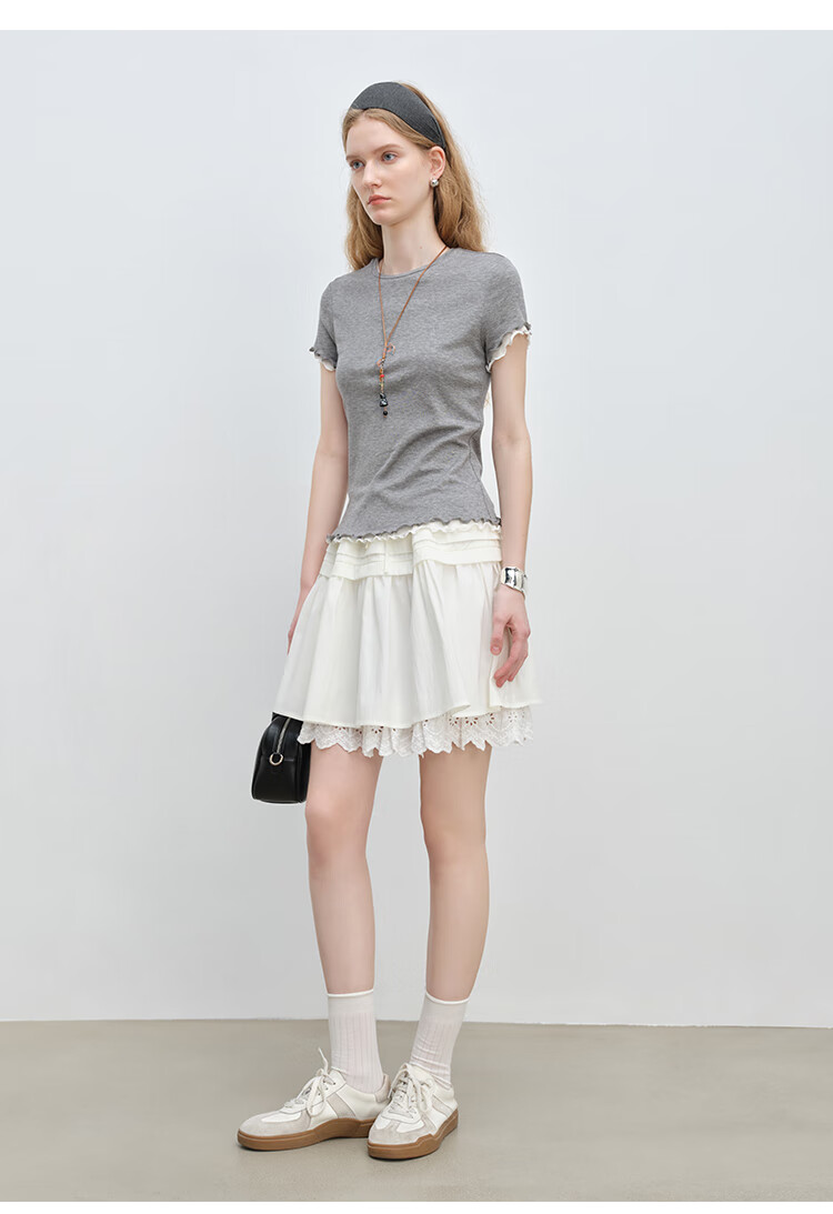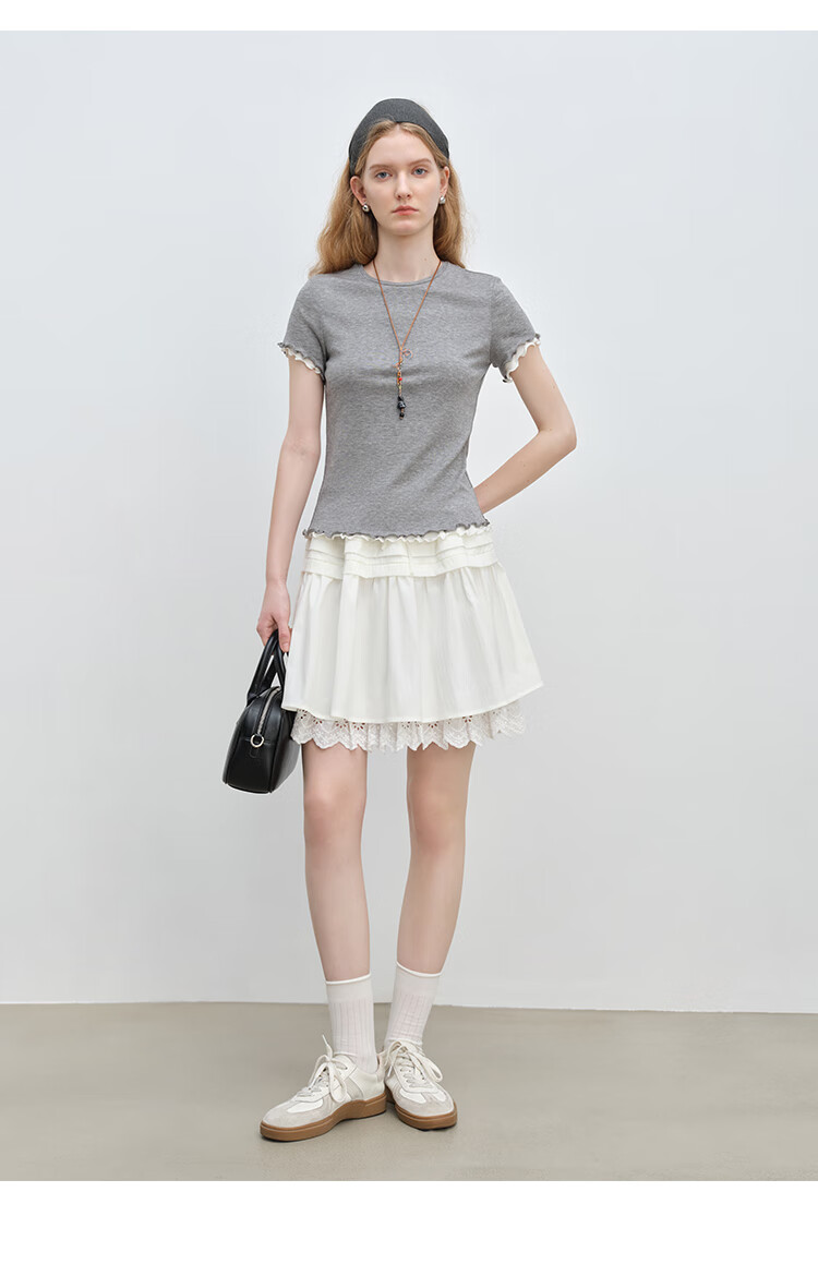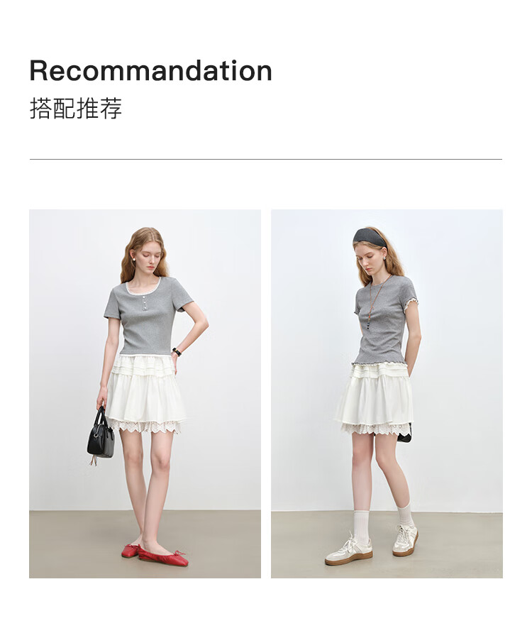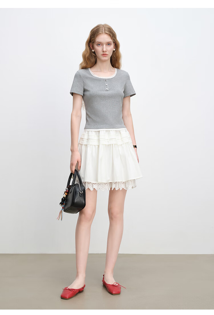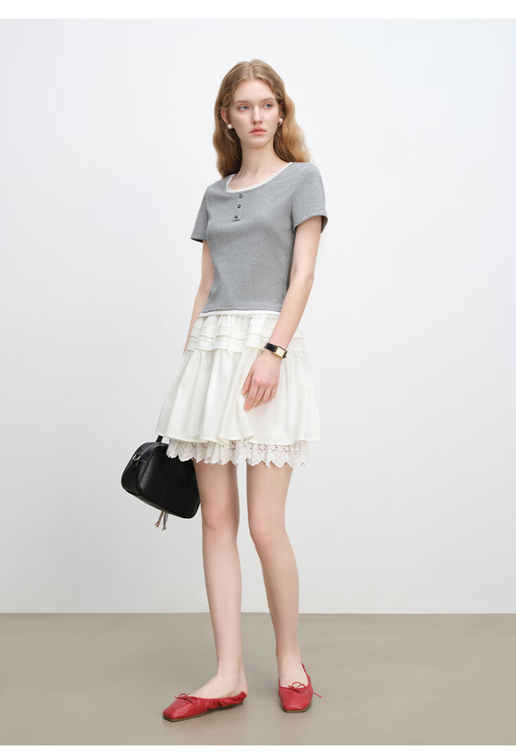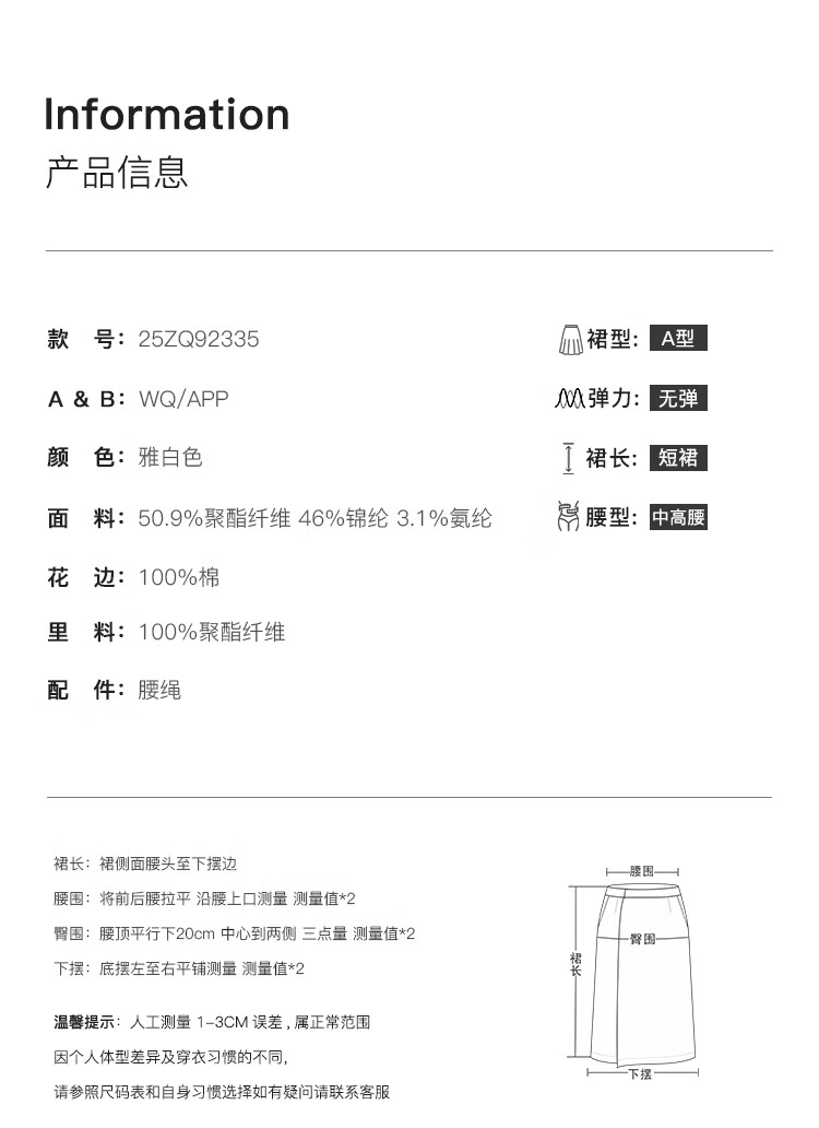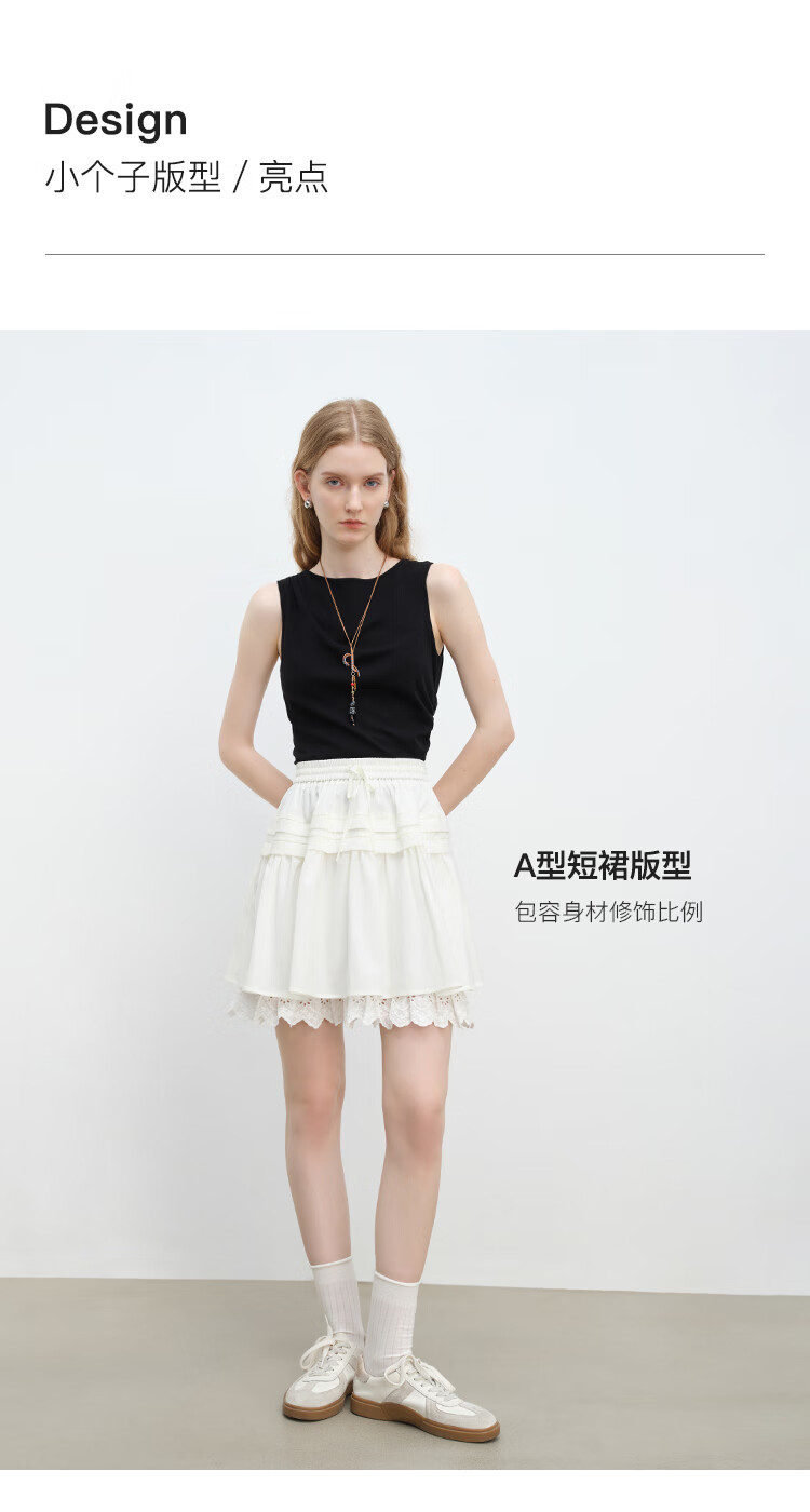 自巧小个子蕾丝拼接设计感短款半身裙女夏季2025新款蛋糕a字短裙 雅白色 S (尺码:3)