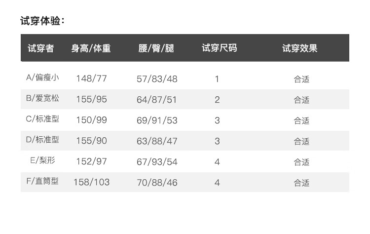 China (cm) 160-165/84-86 165-170 / 88-90 167-172 / 92-96 168-173 / 98-102 170-176 / 106-110