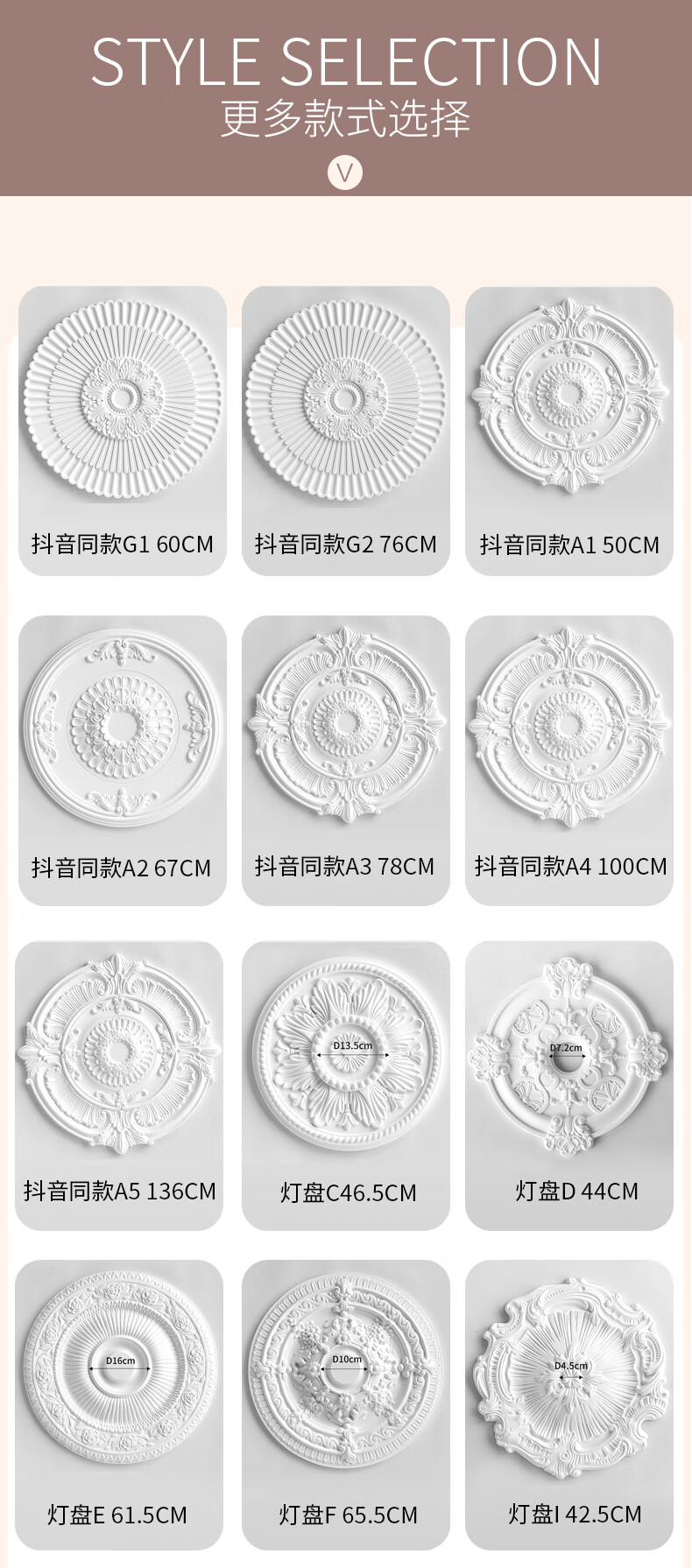 XMSJ法式pu灯盘石膏底座圆形欧式吊顶天花板装饰线雕花组合拼花灯座 灯盘7029-60cm 0mm