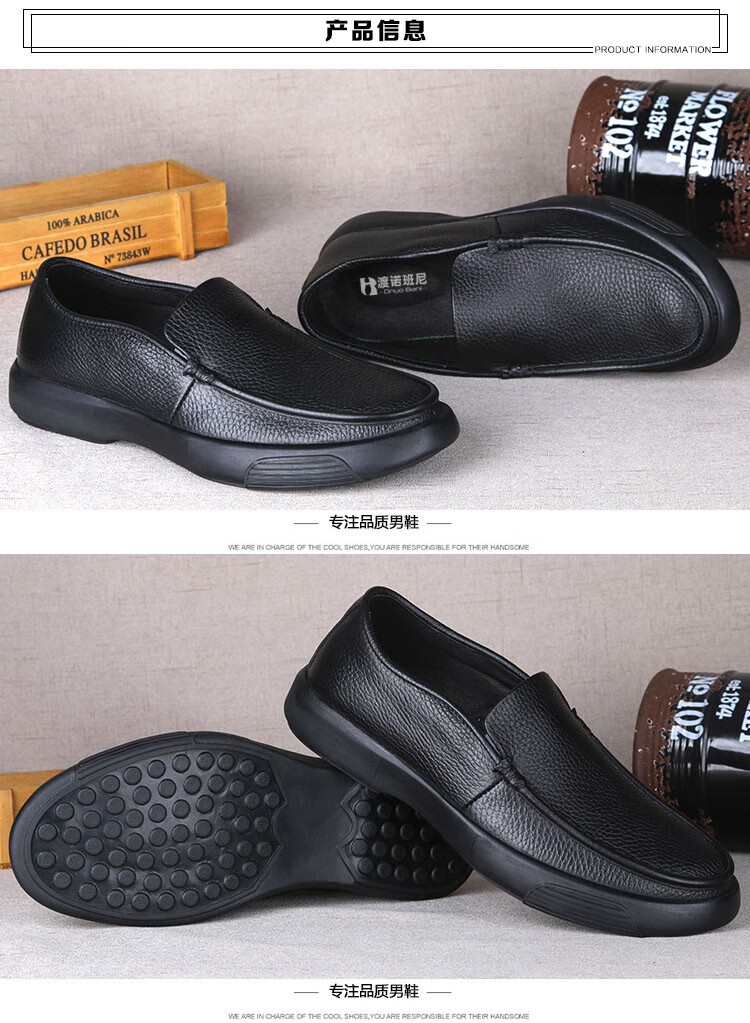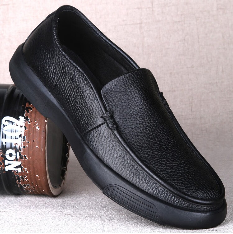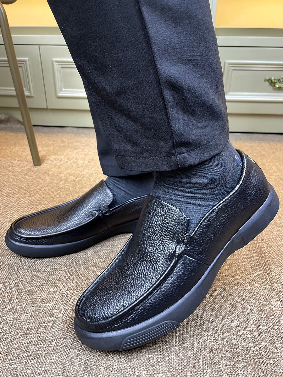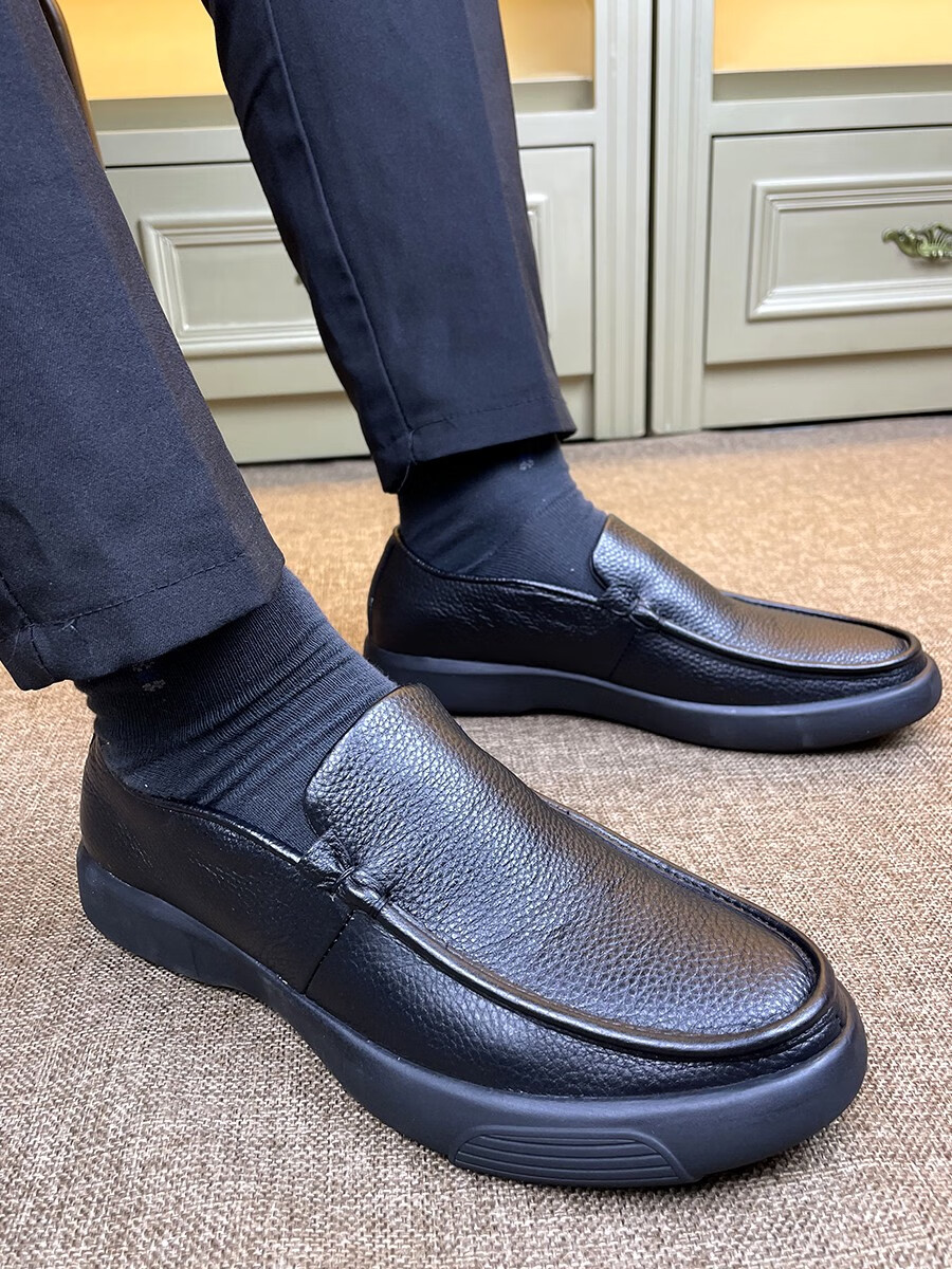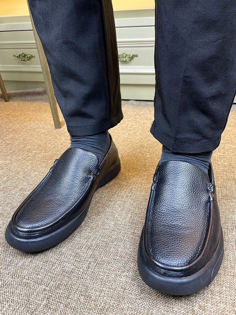 沙驰(SATCHI)休闲皮鞋男一脚蹬大码宽脚真皮男鞋头层牛皮透气中年爸爸皮鞋软底 3895真皮内里 47