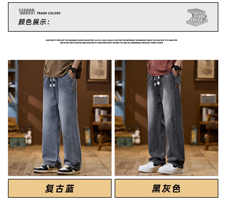 凡客诚品2025新款星空纹抽绳拖地裤子男款美式牛仔裤男士宽松直筒休闲长裤 9854黑灰色 M