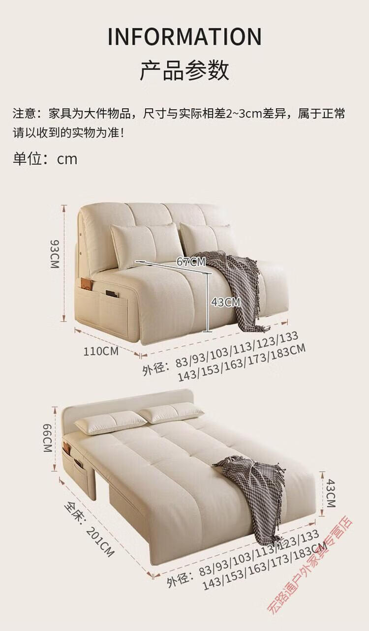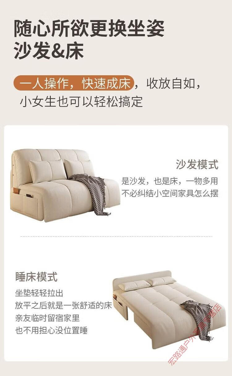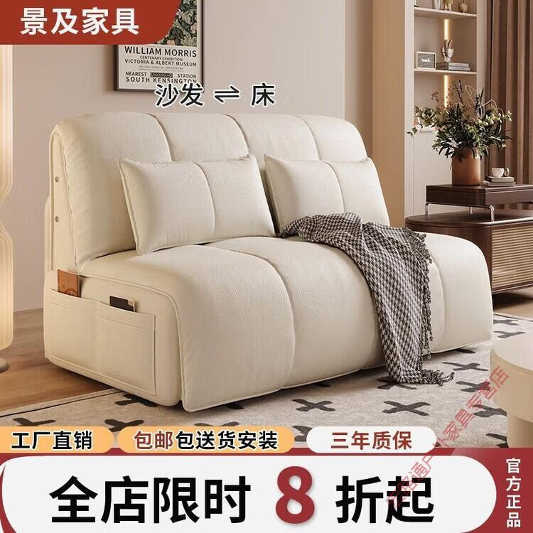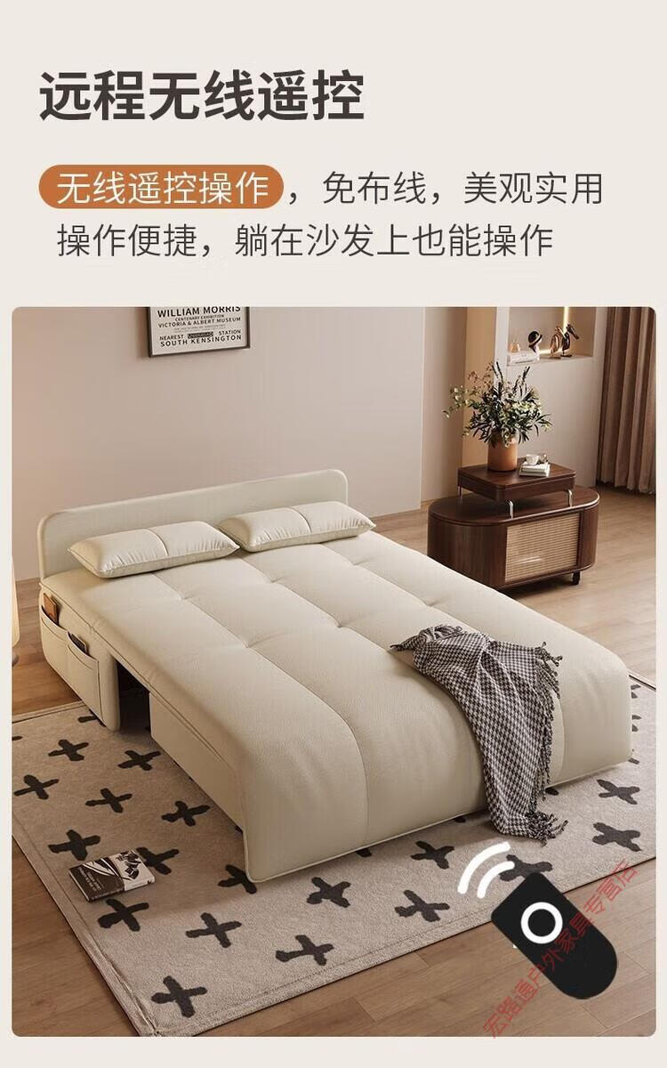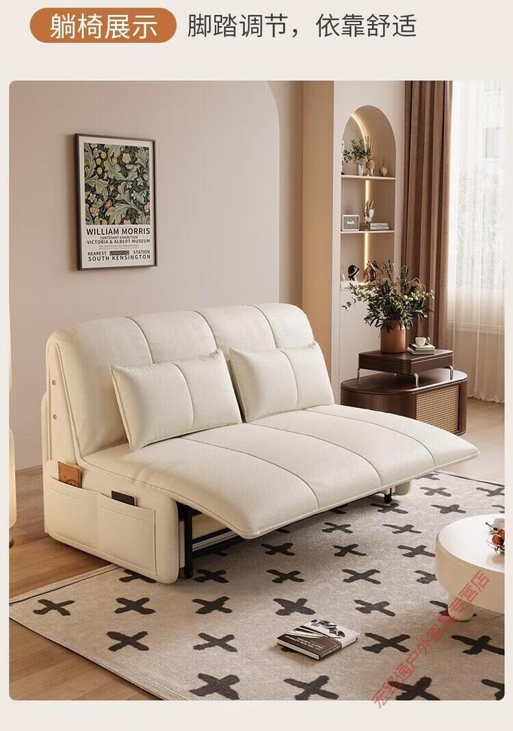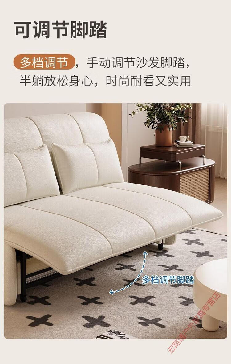 Yingtang Electric Sofa Bed Cream Style Smart Electric Sofa Bed Folding Dual-Purpose Internet Popular Models Without Storage - Genuine Leather Latex Model Outer Diameter 1.83 Meters With Headboard and Footrest