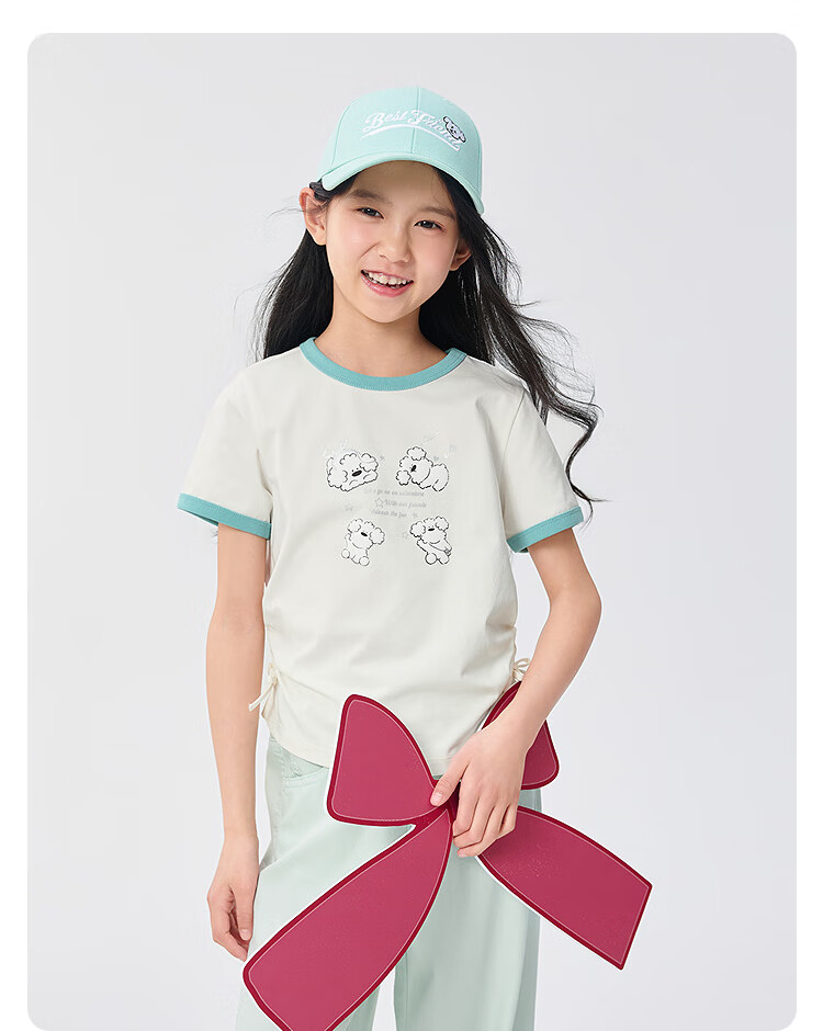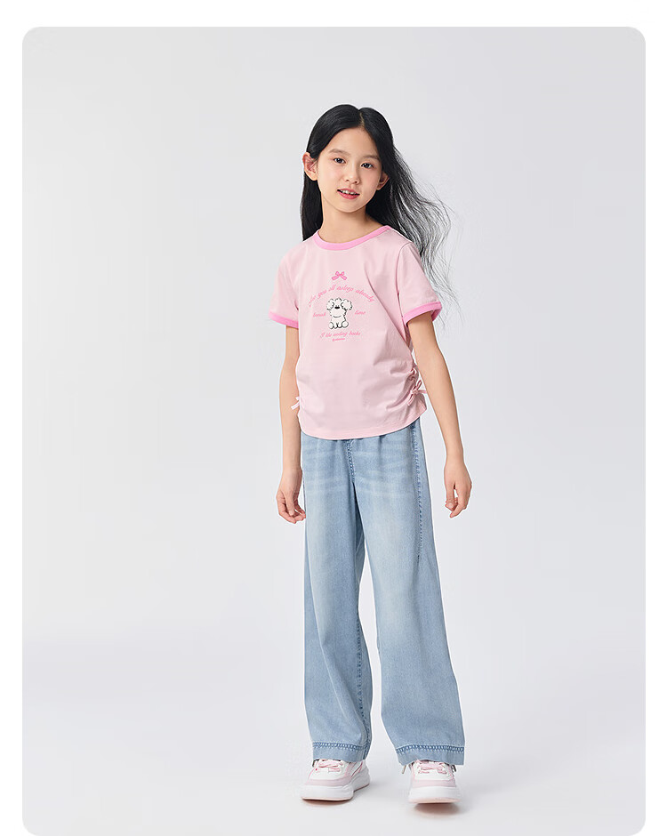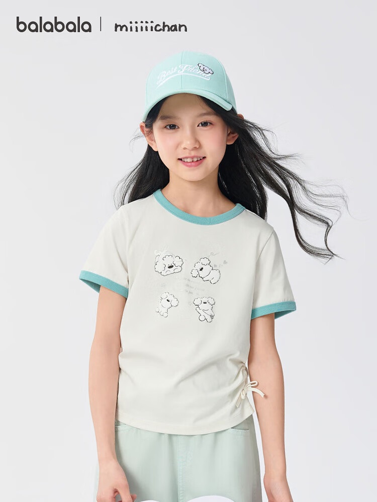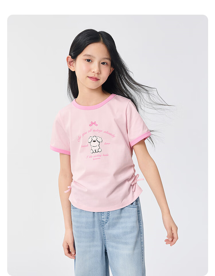 Balabala children's clothing children's short-sleeved girls' T-shirt 2025 summer wear miiiiichan IP mall same style dream pink 60359 150