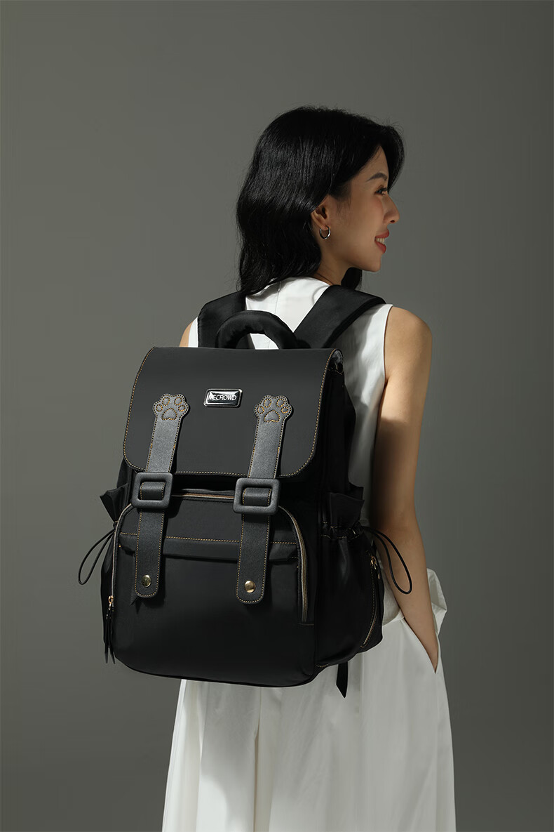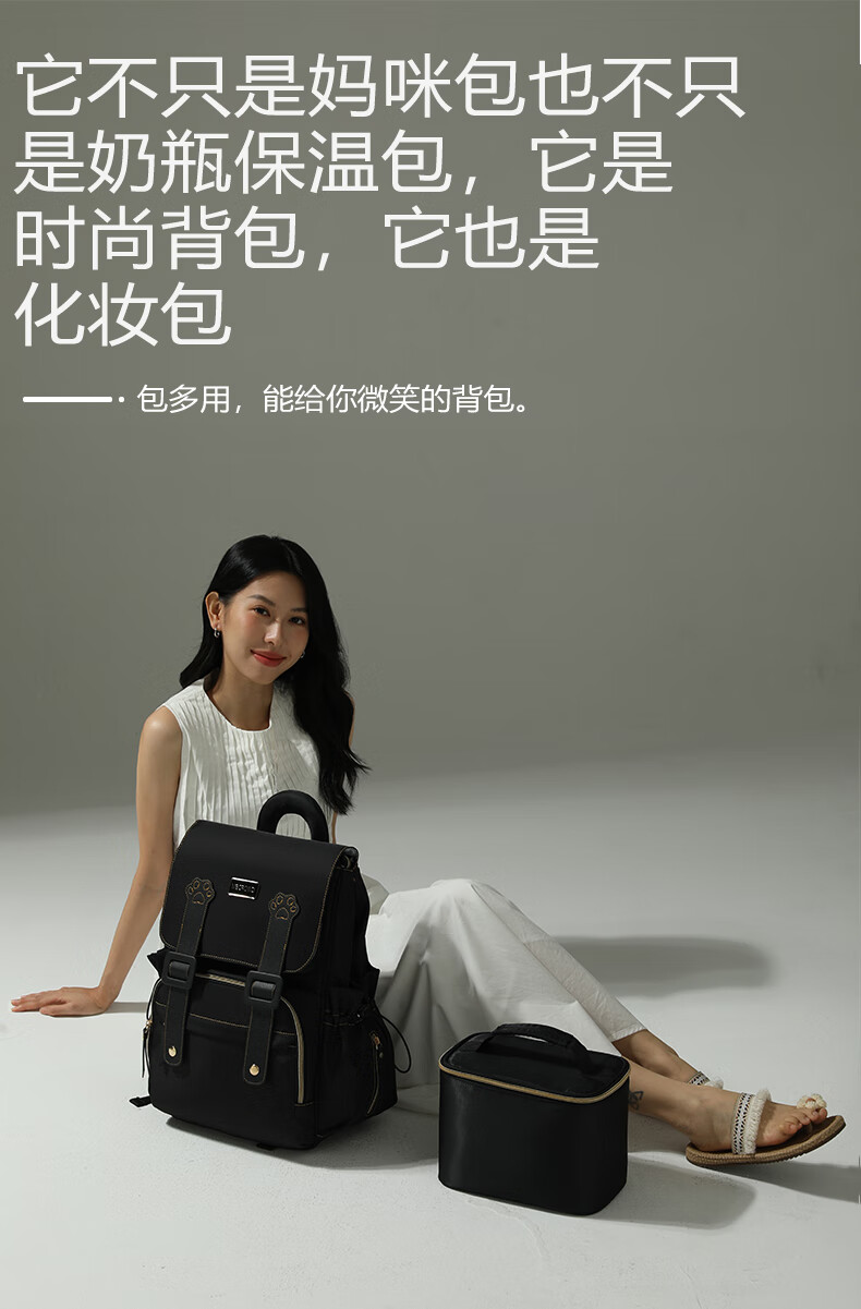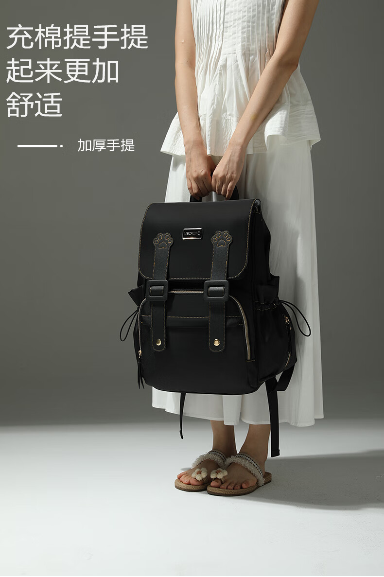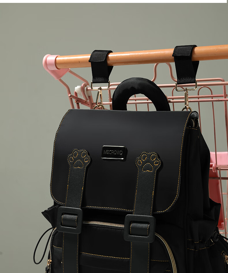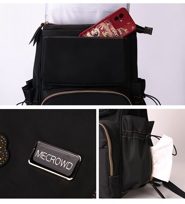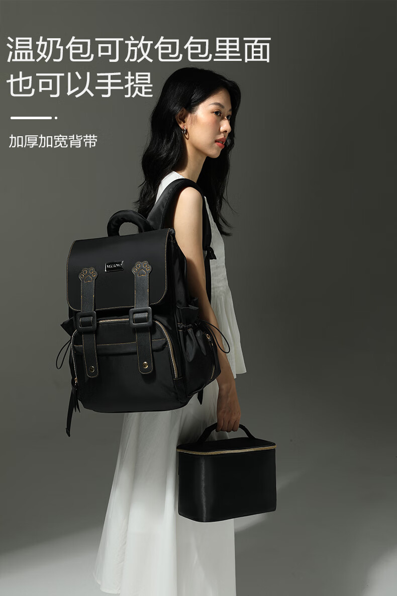 MECROWD妈咪包双肩包2025大容量大功能妈妈外出轻便背奶包手提母婴包 黑色
