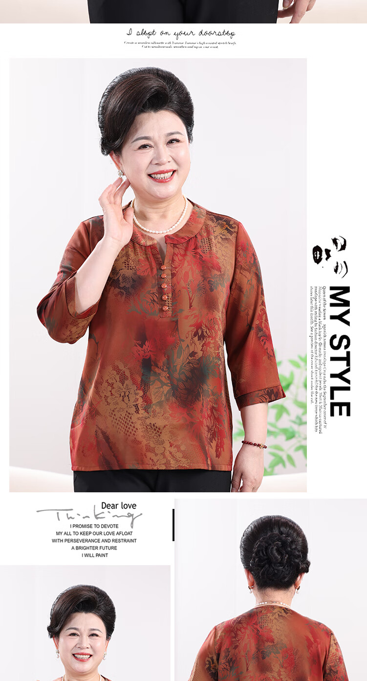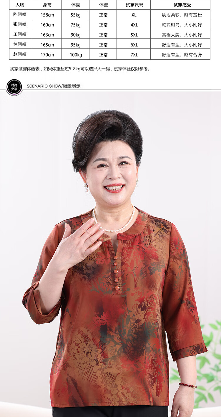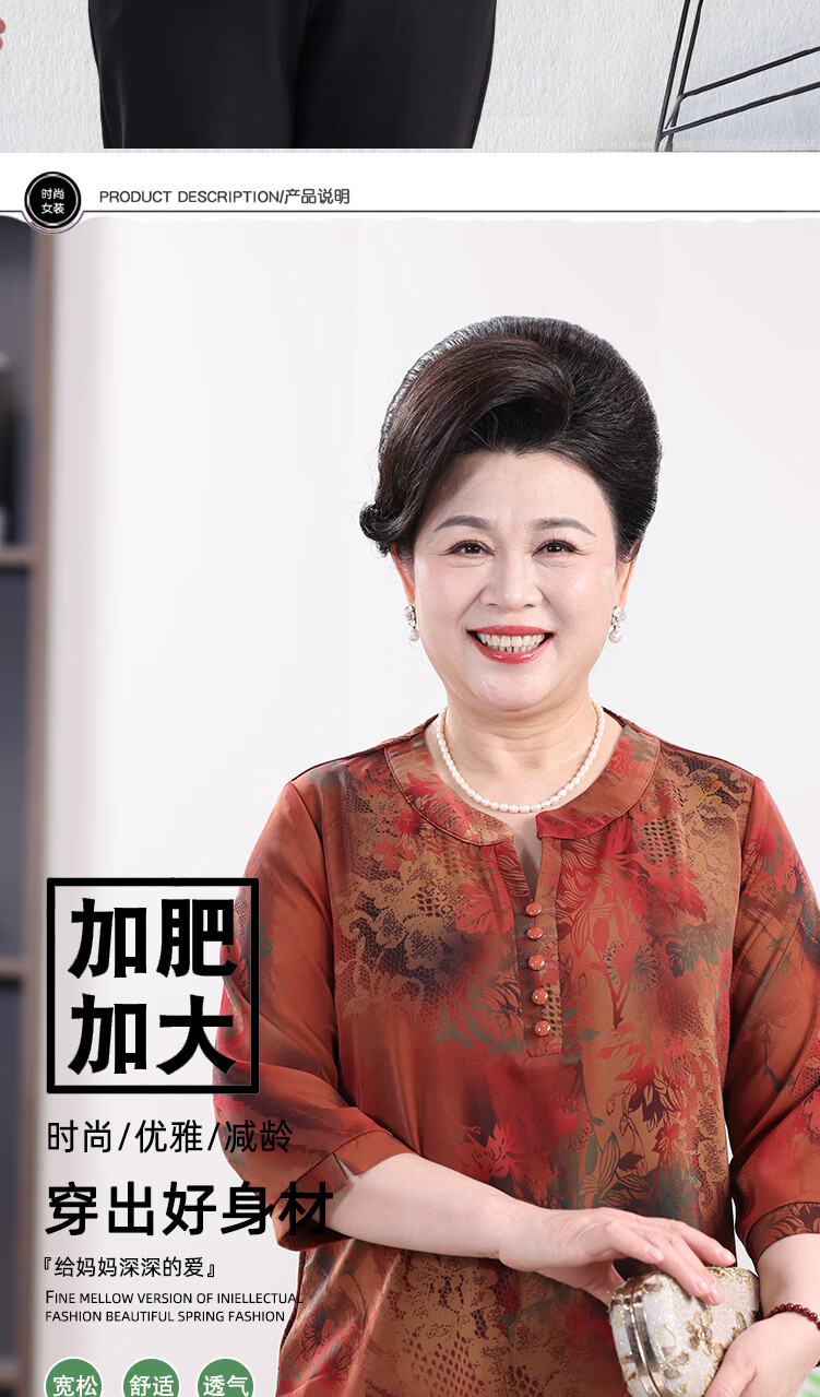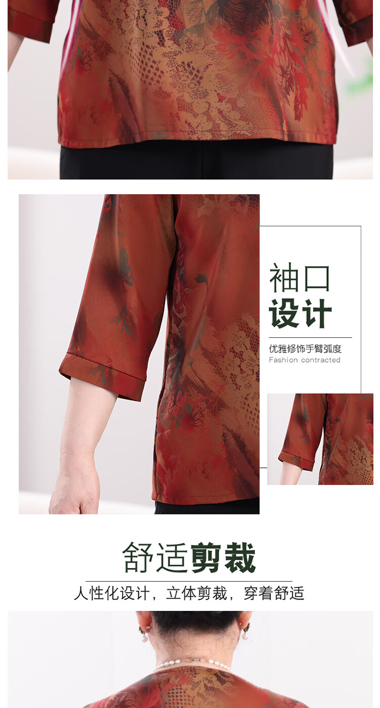 Grandma Fanzhiyanxiang's summer style thin tops for the elderly women 60-70 years old fat mothers three-quarter sleeves round neck large size T-shirt top + pants (756 black pants) XL recommended 100-120Jin Jin equals about 0.5 kg