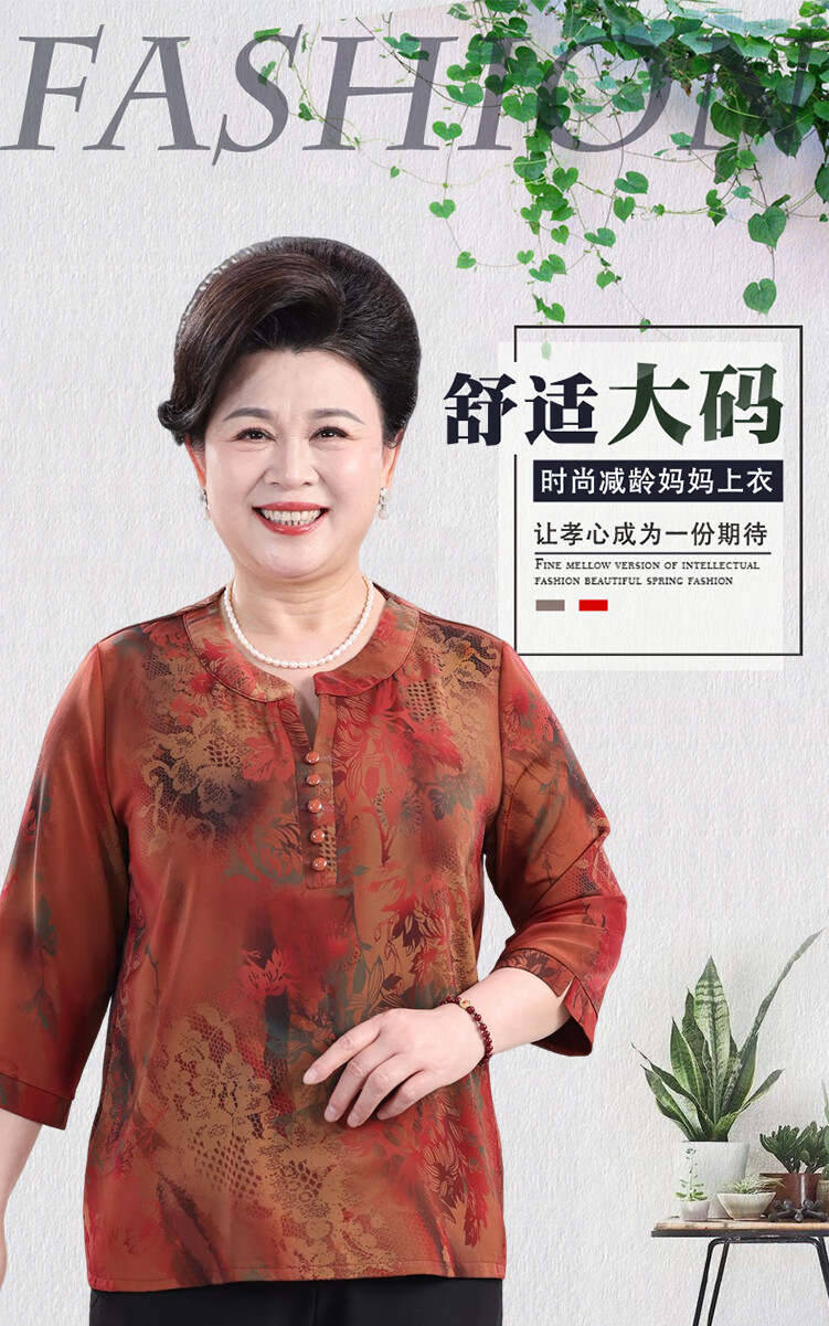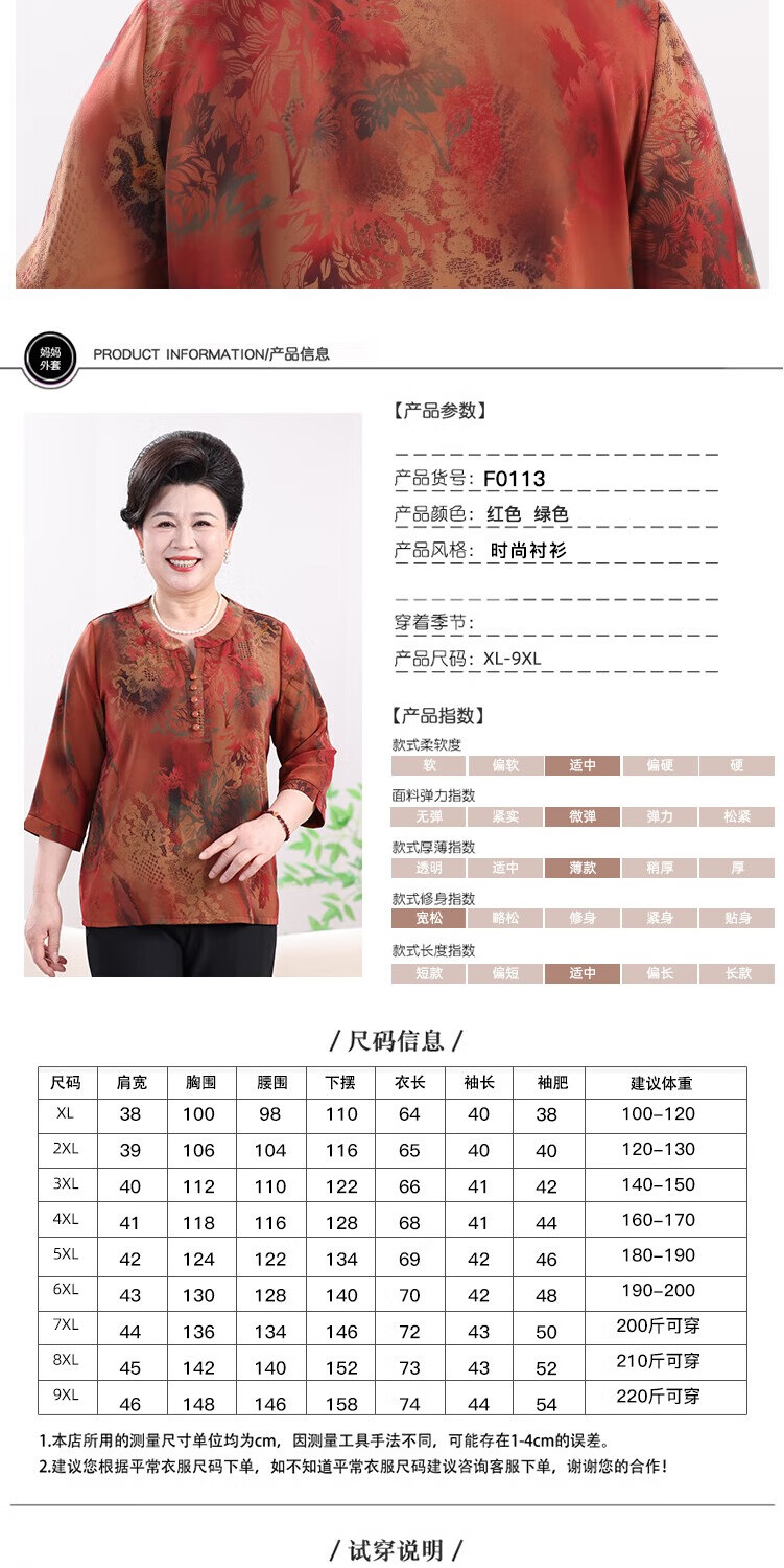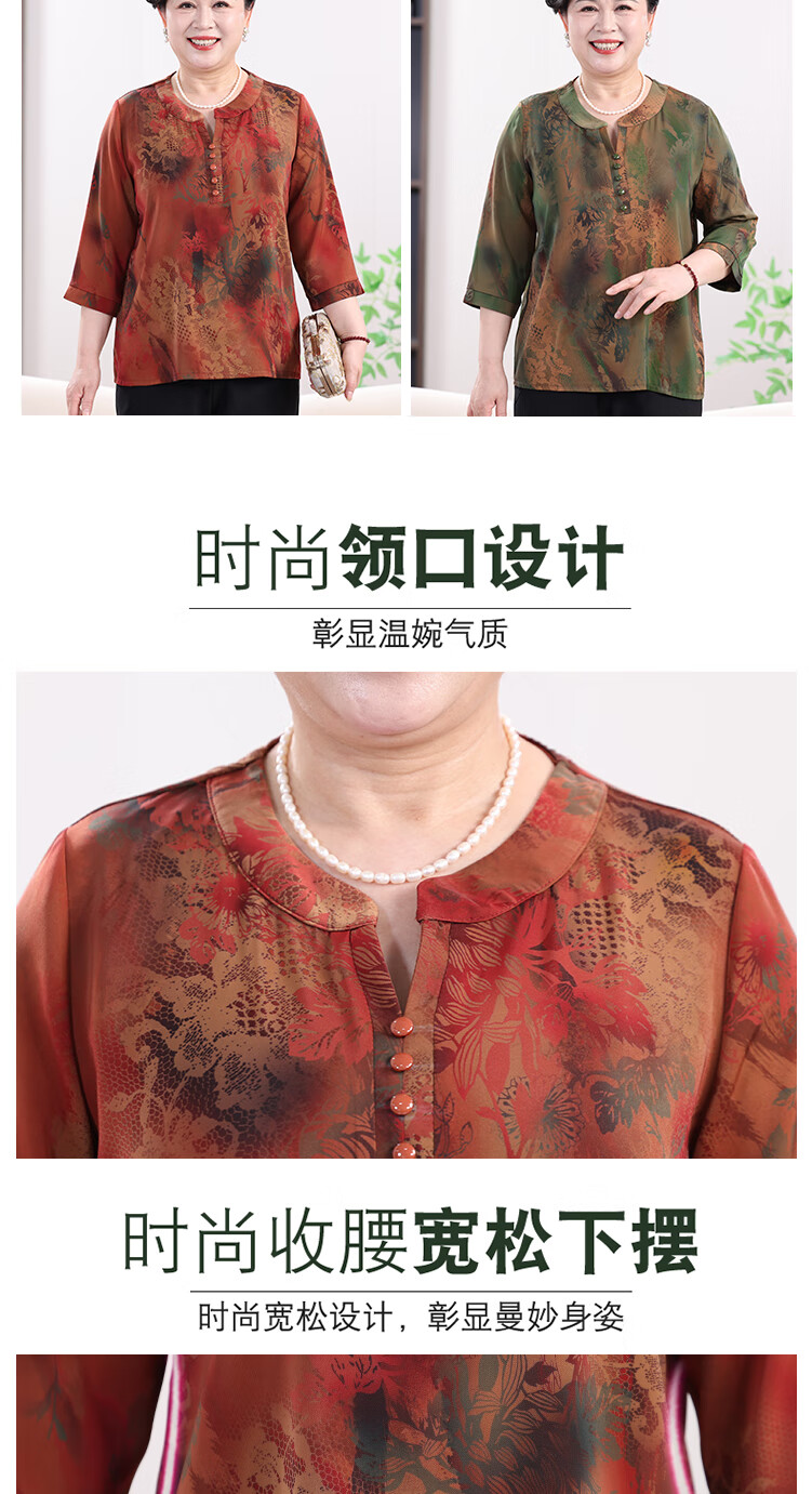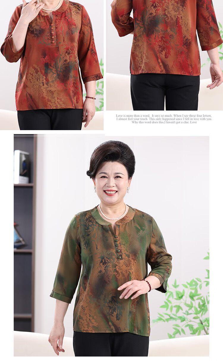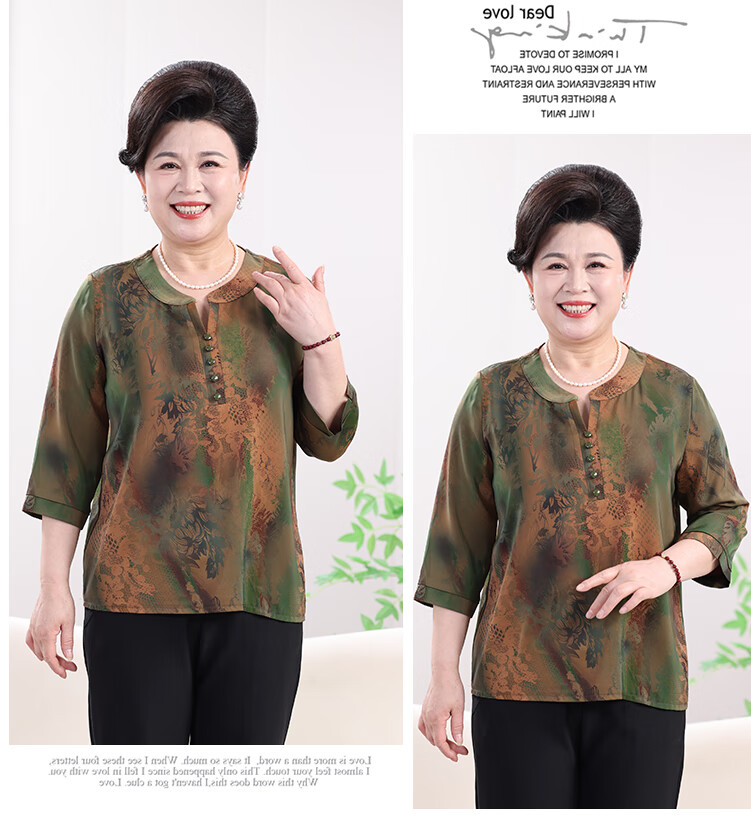 Grandma Fanzhiyanxiang's summer style thin tops for the elderly women 60-70 years old fat mothers three-quarter sleeves round neck large size T-shirt top + pants (756 black pants) XL recommended 100-120Jin Jin equals about 0.5 kg