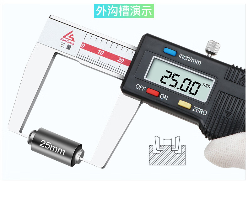 LNGA LANDGRE日本内沟槽数显游标卡尺刀头内孔内圆不锈钢 115-14124-150mm尖头内沟槽
