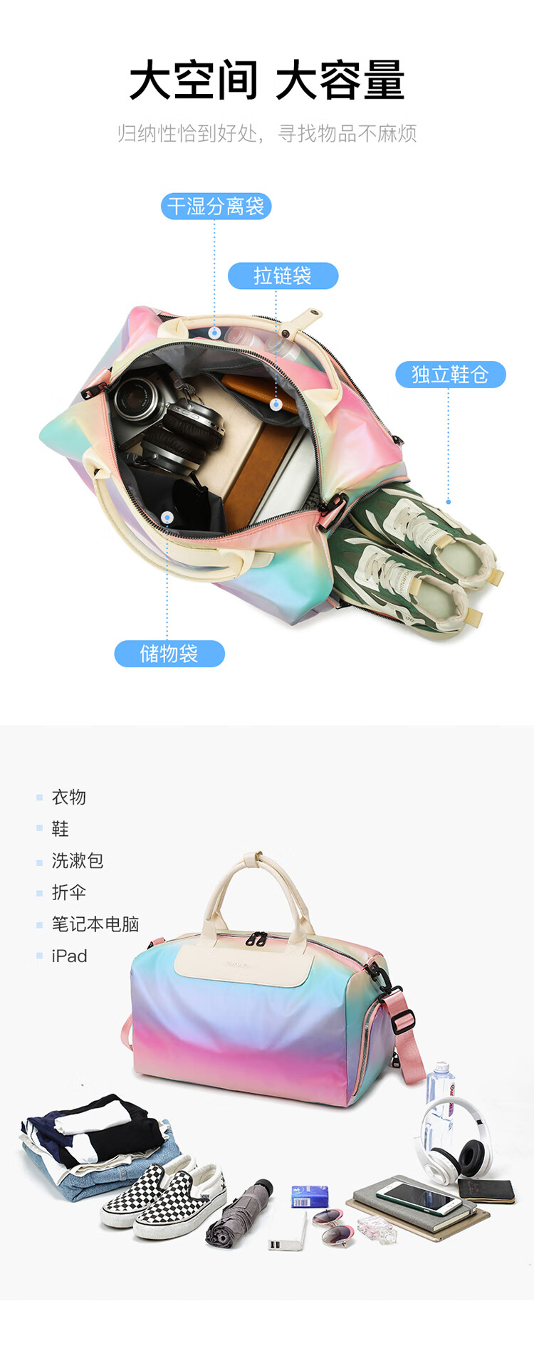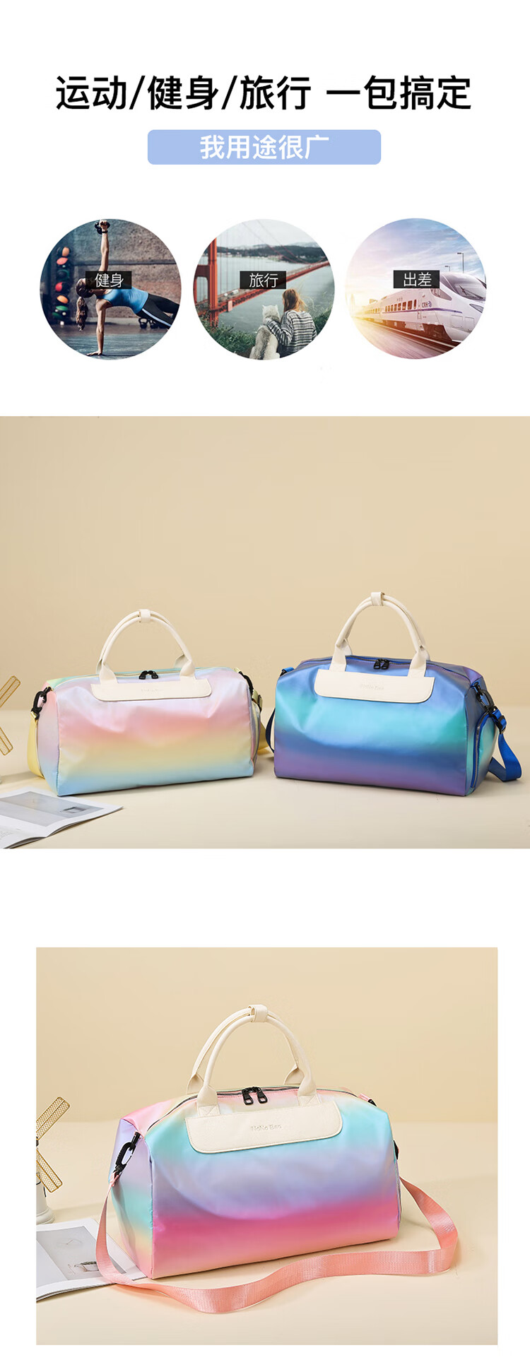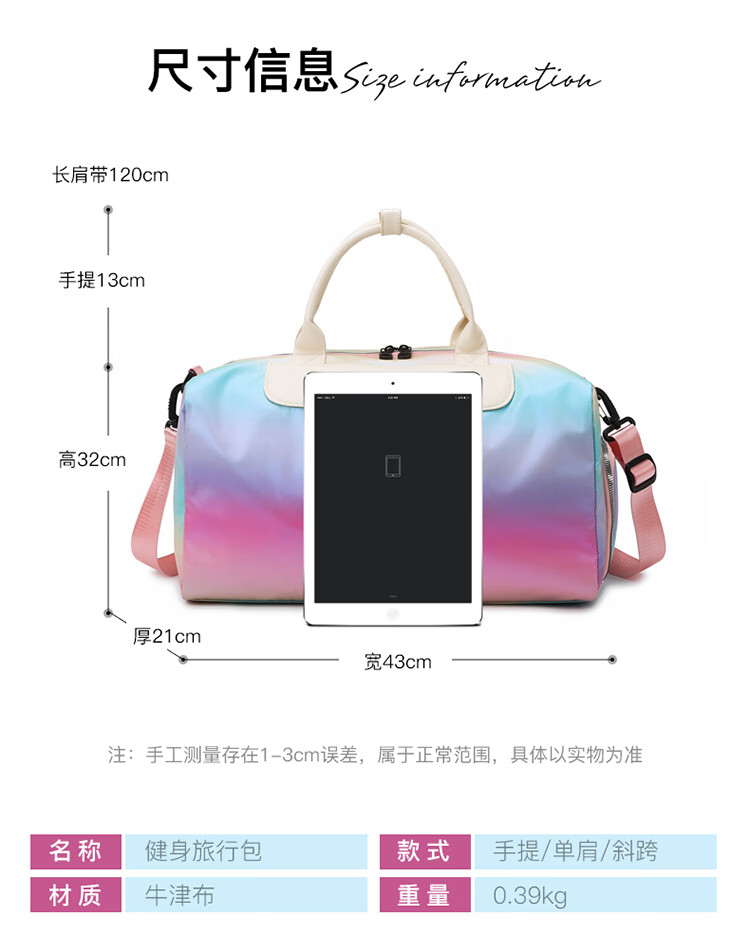 新旅行包女短途旅游手提行李包干湿分离运动健身包男大容量收纳袋 绿色 均码