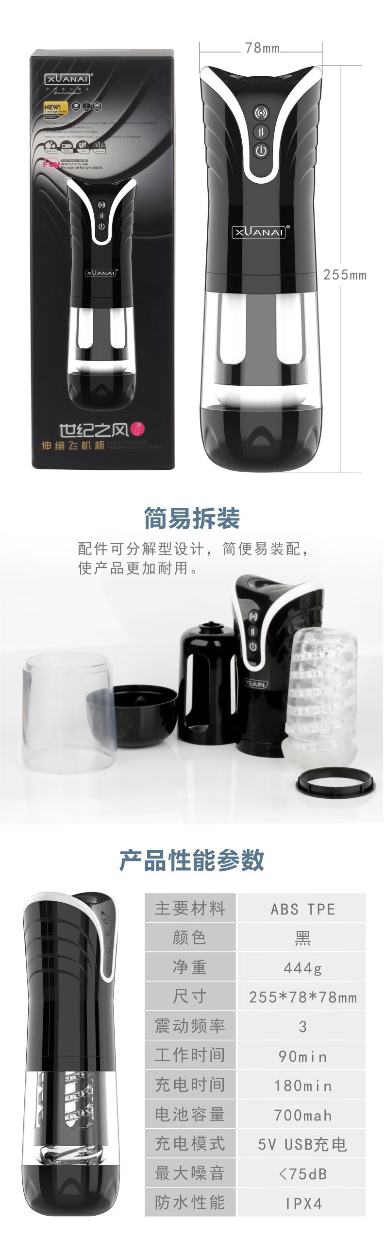Xuanai Century Wind taza de avión completamente automática masturbación masculina sonido telescópico eléctrico producto para adultos 9928 negro estilo mejorado Century Wind