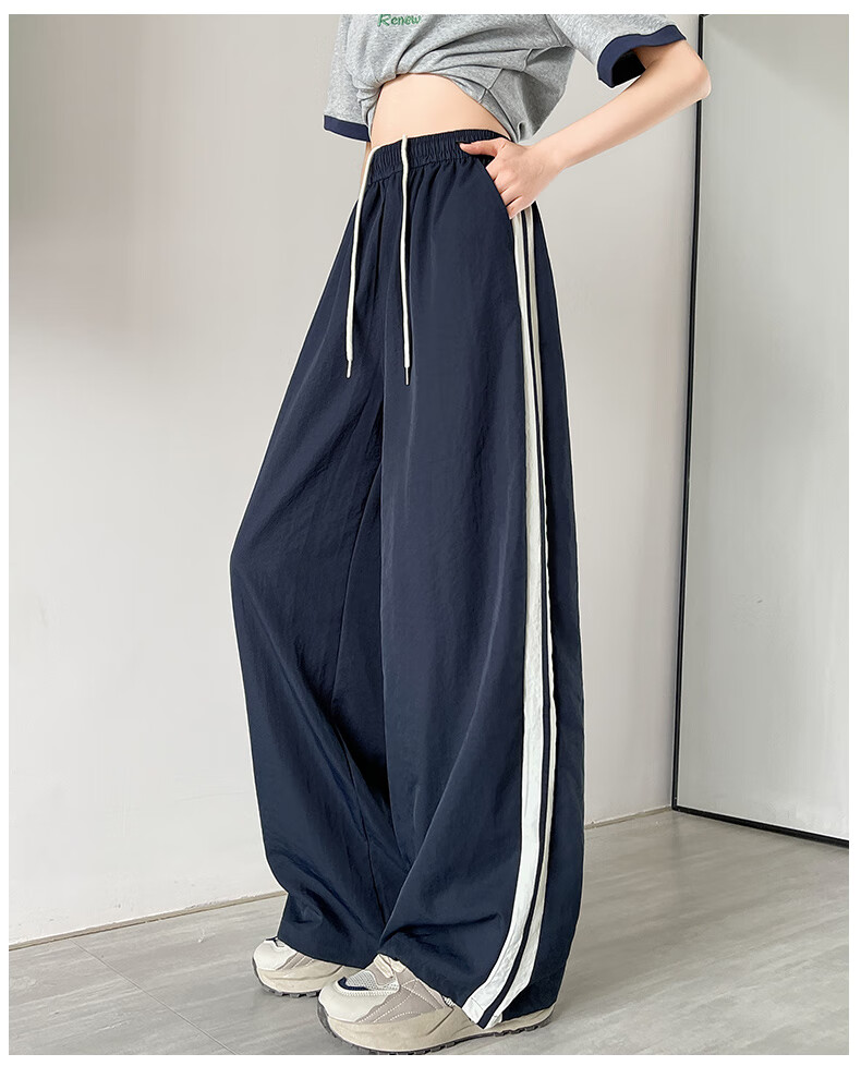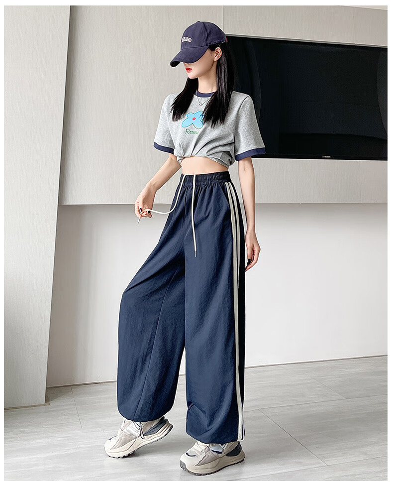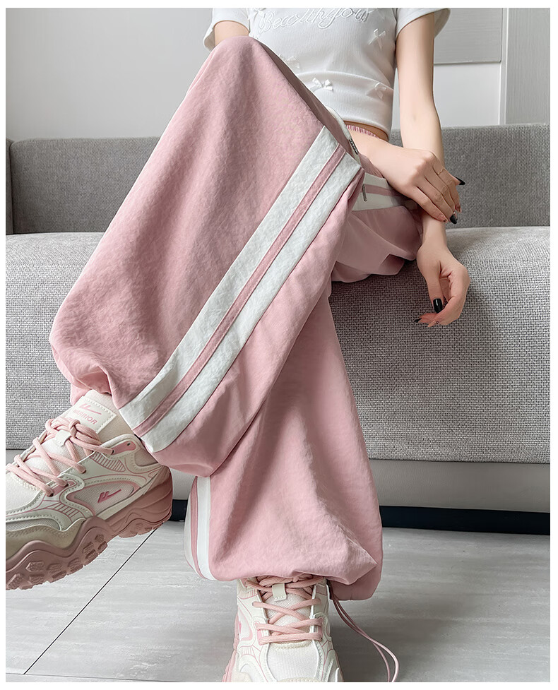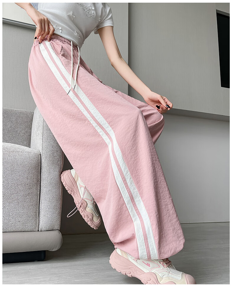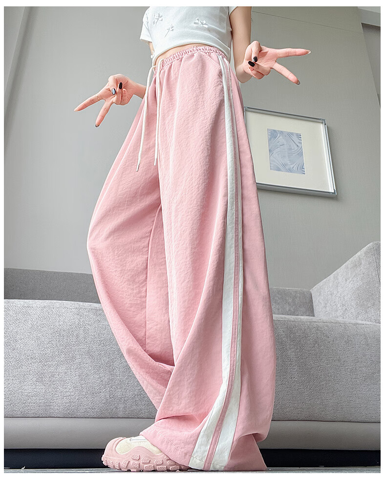 Jeanswest American Side Stripe Wide Leg Overol Mujer Verano 2025 Nuevo Suelto Casual Estilo Fino Pierna Ancha Pantalones Deportivos Rosa Regular S
