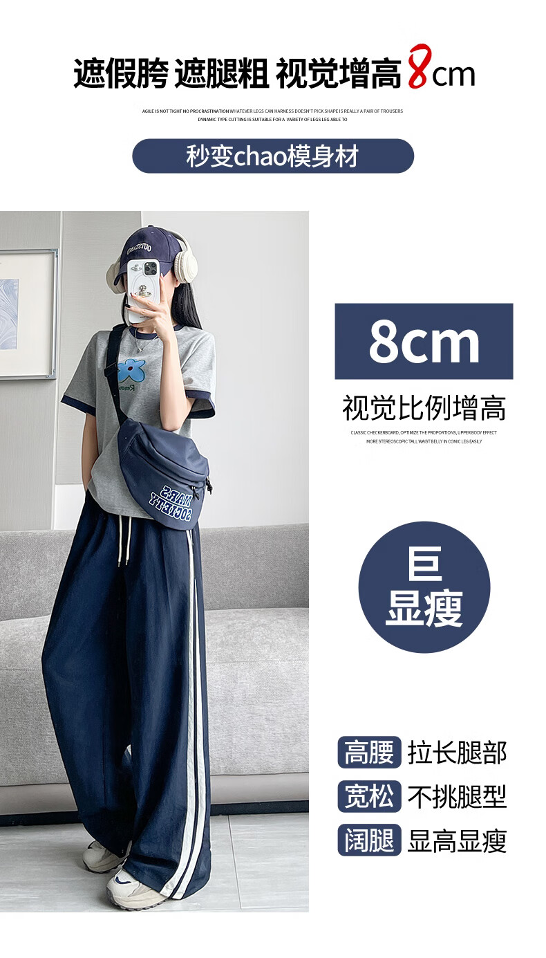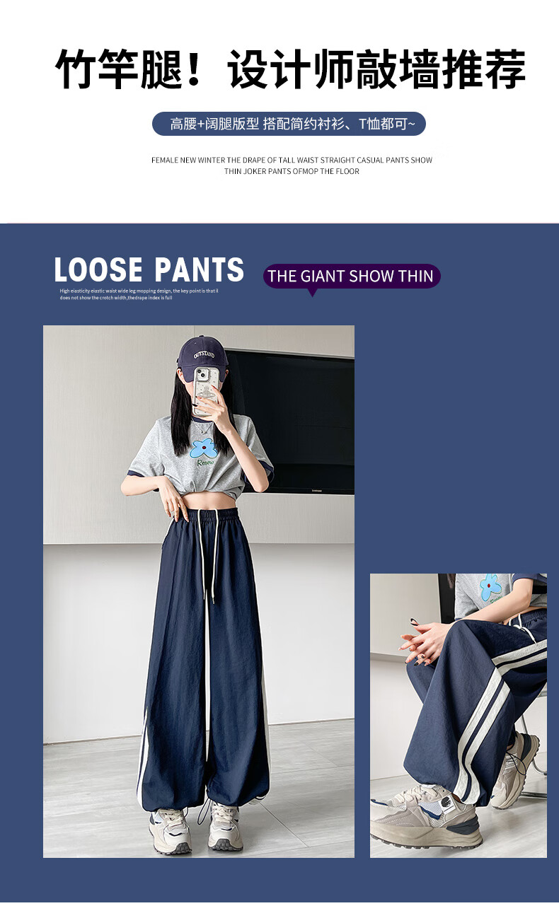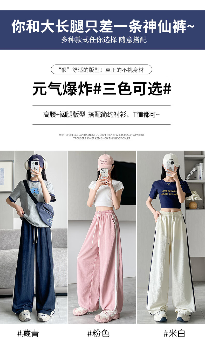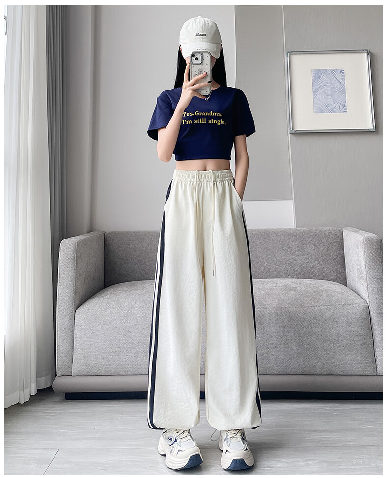 Jeanswest American Side Stripe Wide Leg Overol Mujer Verano 2025 Nuevo Suelto Casual Estilo Fino Pierna Ancha Pantalones Deportivos Rosa Regular S