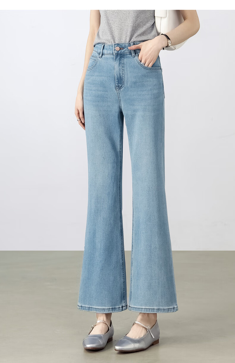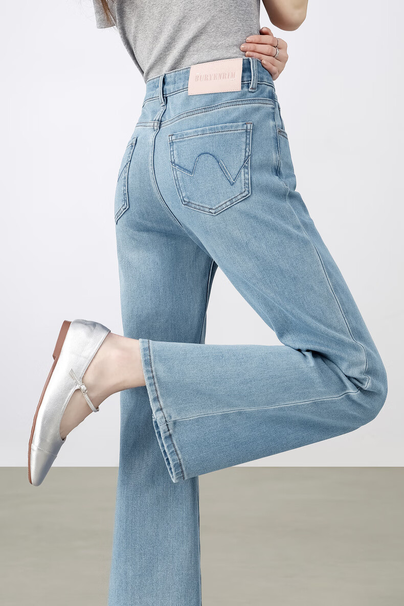 Shandubila Vier-Wege-Stretch-Jeans mit hoher Taille, Vier-Wege-Stretch-Denim + Back-Taille, rosa Ledermarke, Pendler-Schlankheitshose, Denim-Blau, XL
