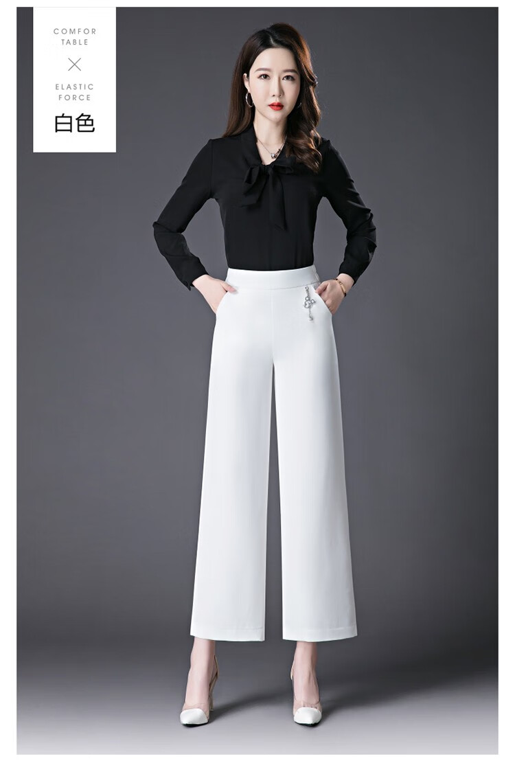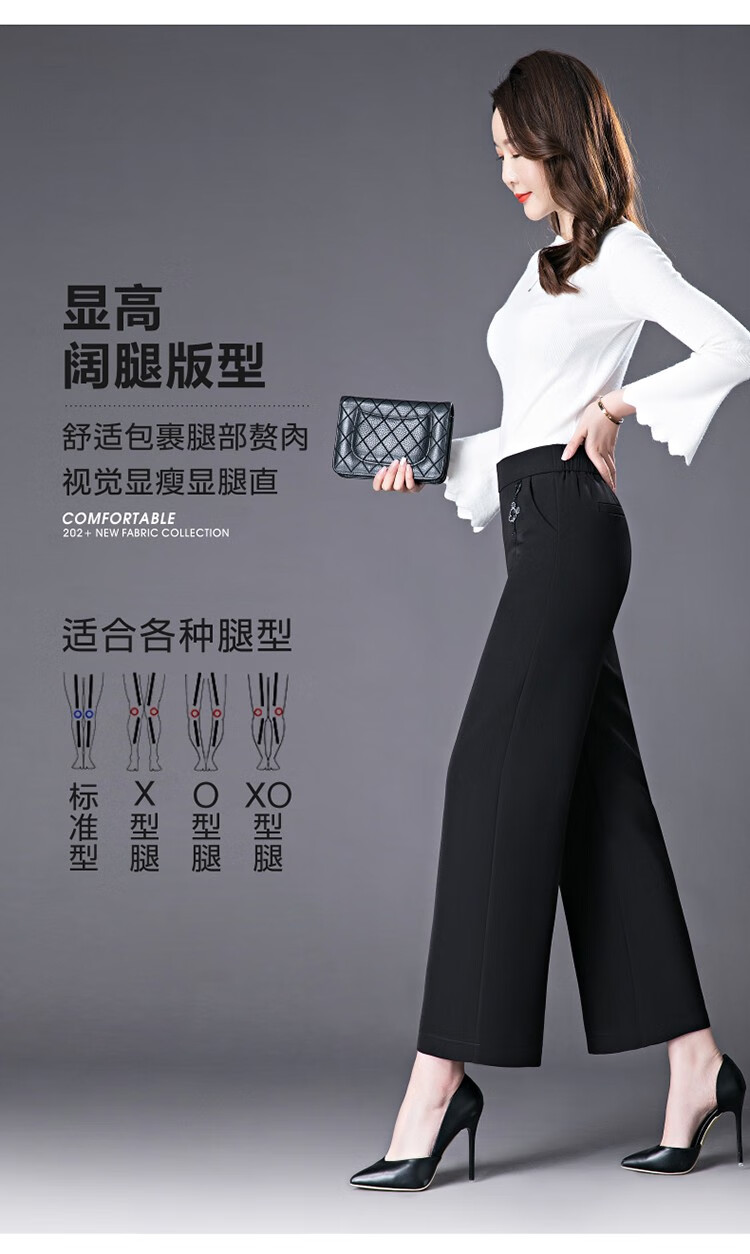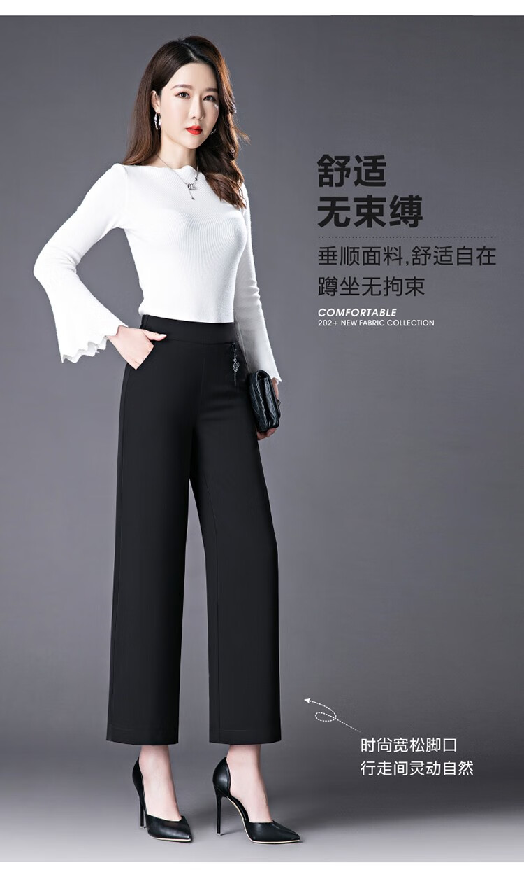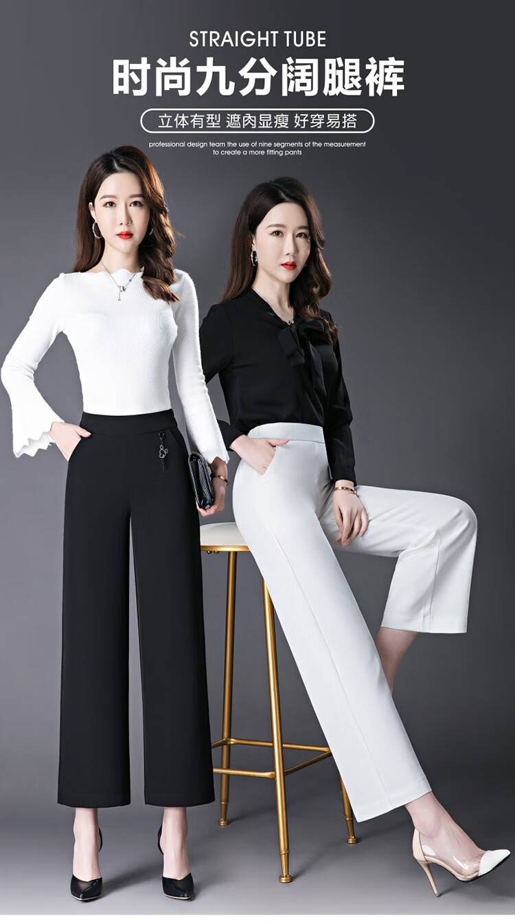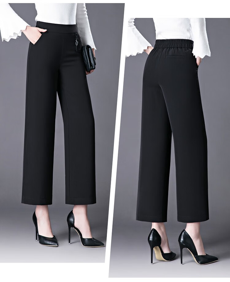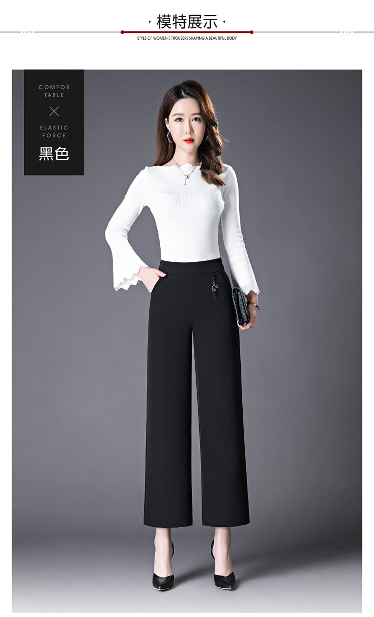 Baisi Dun summer nine-point wide-leg pants for women 2025 new women's elastic waist loose versatile simple pants for women 967a2f65 black 26 size S waist 1'9