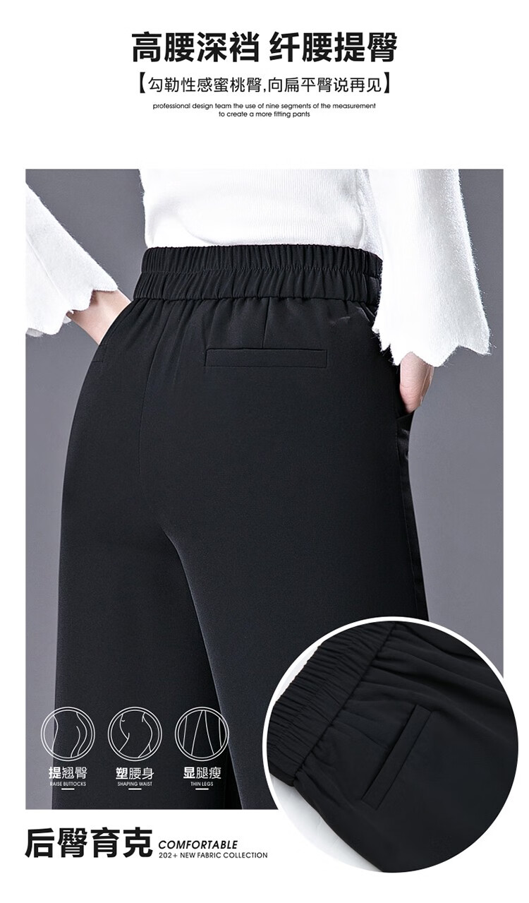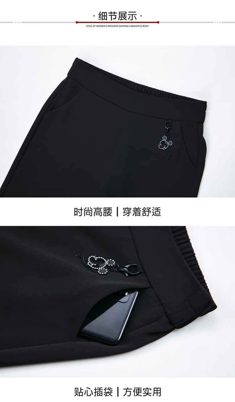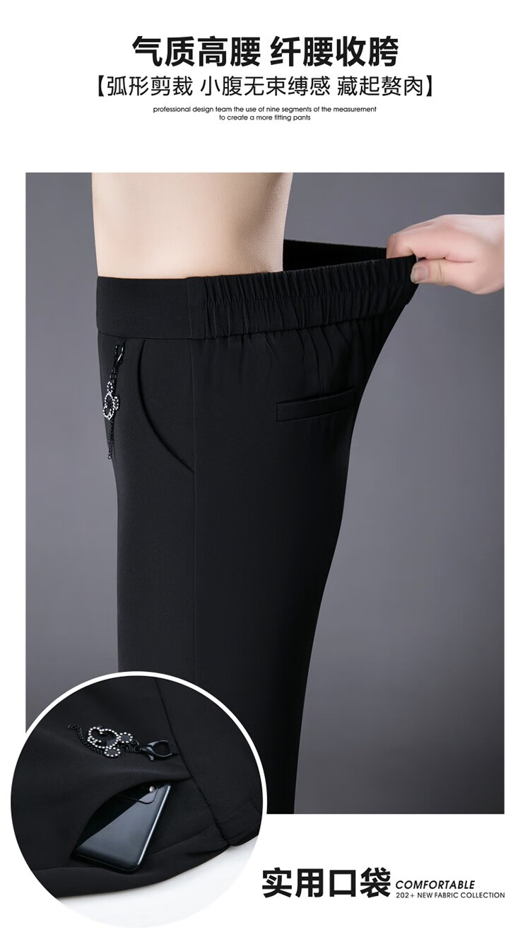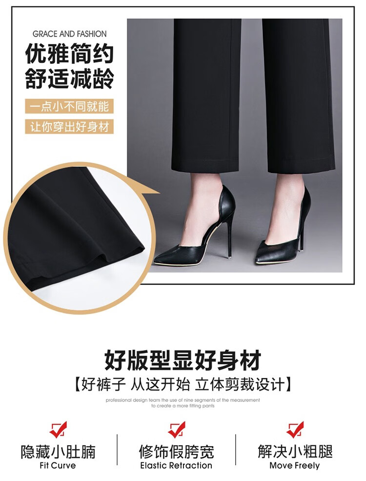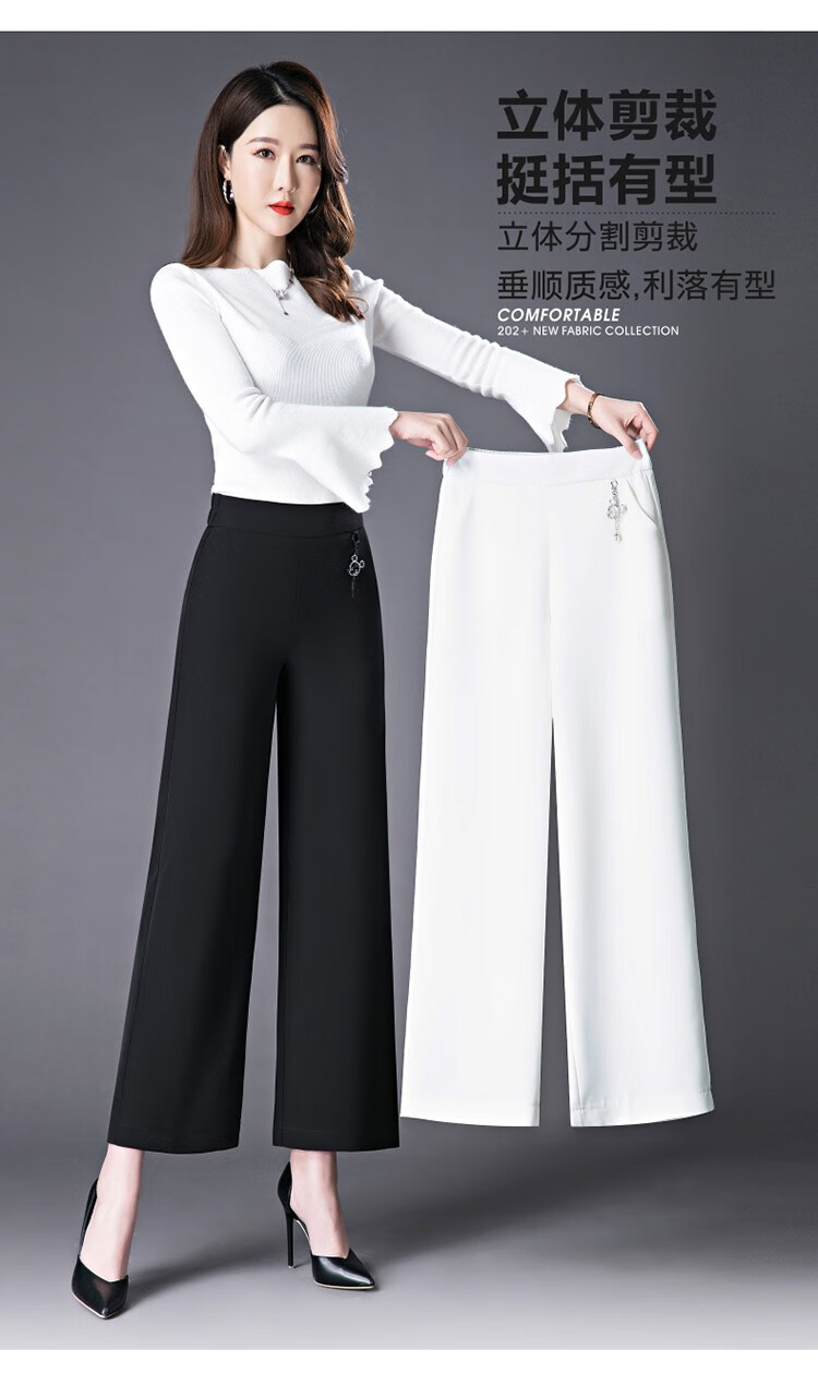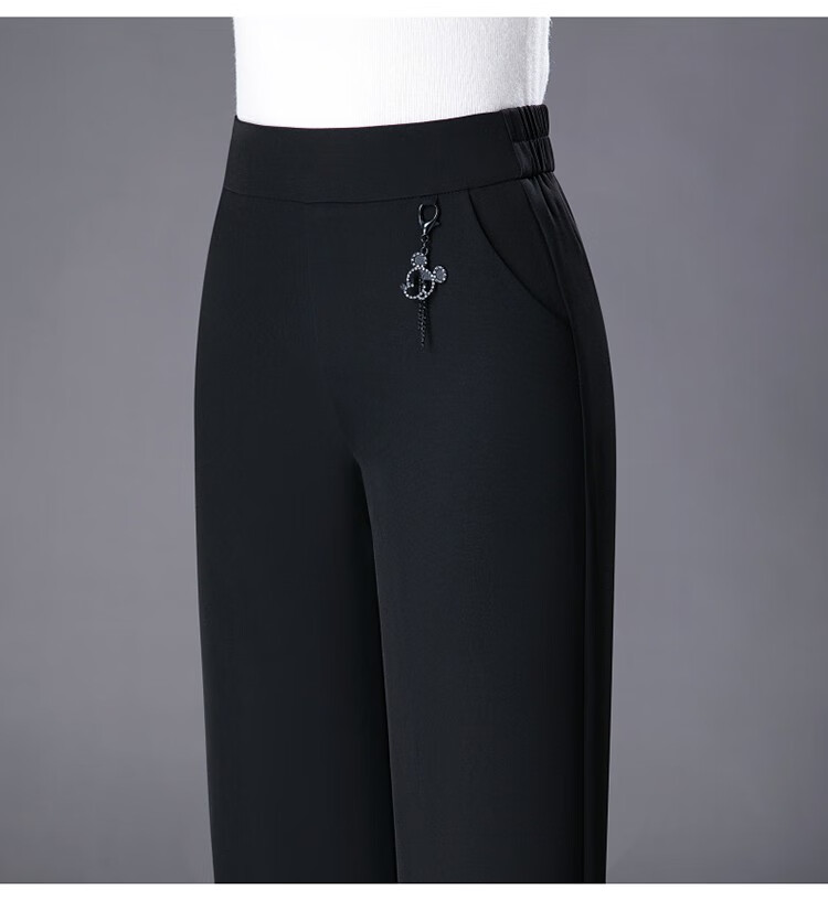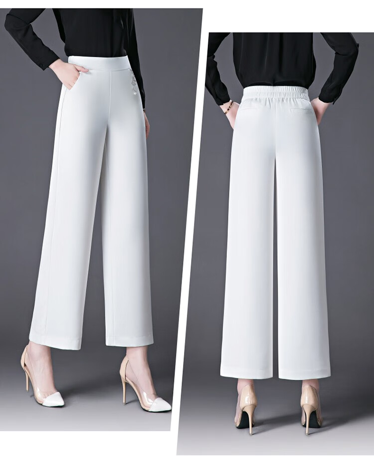 Baisi Dun summer nine-point wide-leg pants for women 2025 new women's elastic waist loose versatile simple pants for women 967a2f65 black 26 size S waist 1'9