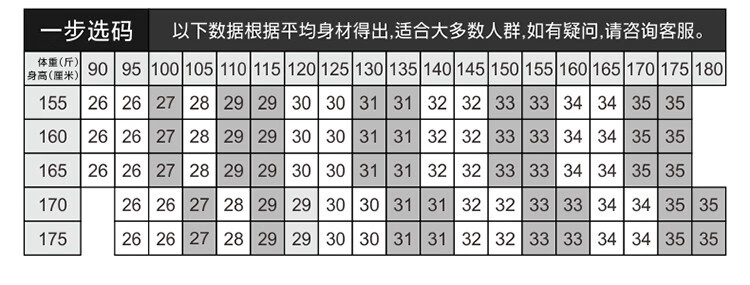 USA(inch) 28-30 30-32 32-34 34-38 38-42