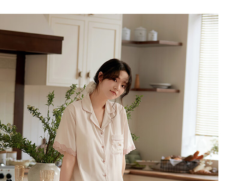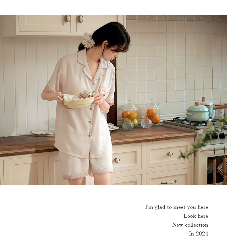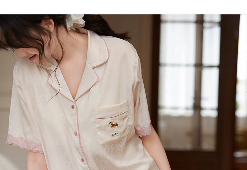 Mme Slee Sleep TIGHT pyjama en soie glacée cool pour femmes short d'été à manches courtes dentelle douce style de luxure pure avec coussinets d'allaitement vêtements d'extérieur d'été vêtements de maison J138 avec coussinets d'allaitement M
