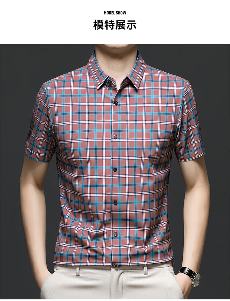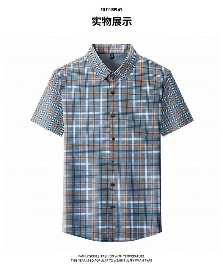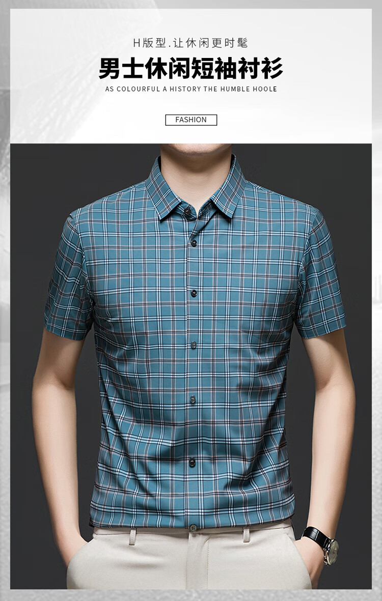 Goldlion Herren-Kurzarmhemd aus Eisseide für junge und mittlere Menschen, dünner Sommerstil, kariert, vielseitig, atmungsaktiv, Halbarmhemd, Herren-Kurzarmhemd xd/6629, blau, S 165, empfohlen 100–120 Jin Jin entspricht 0,5 kg