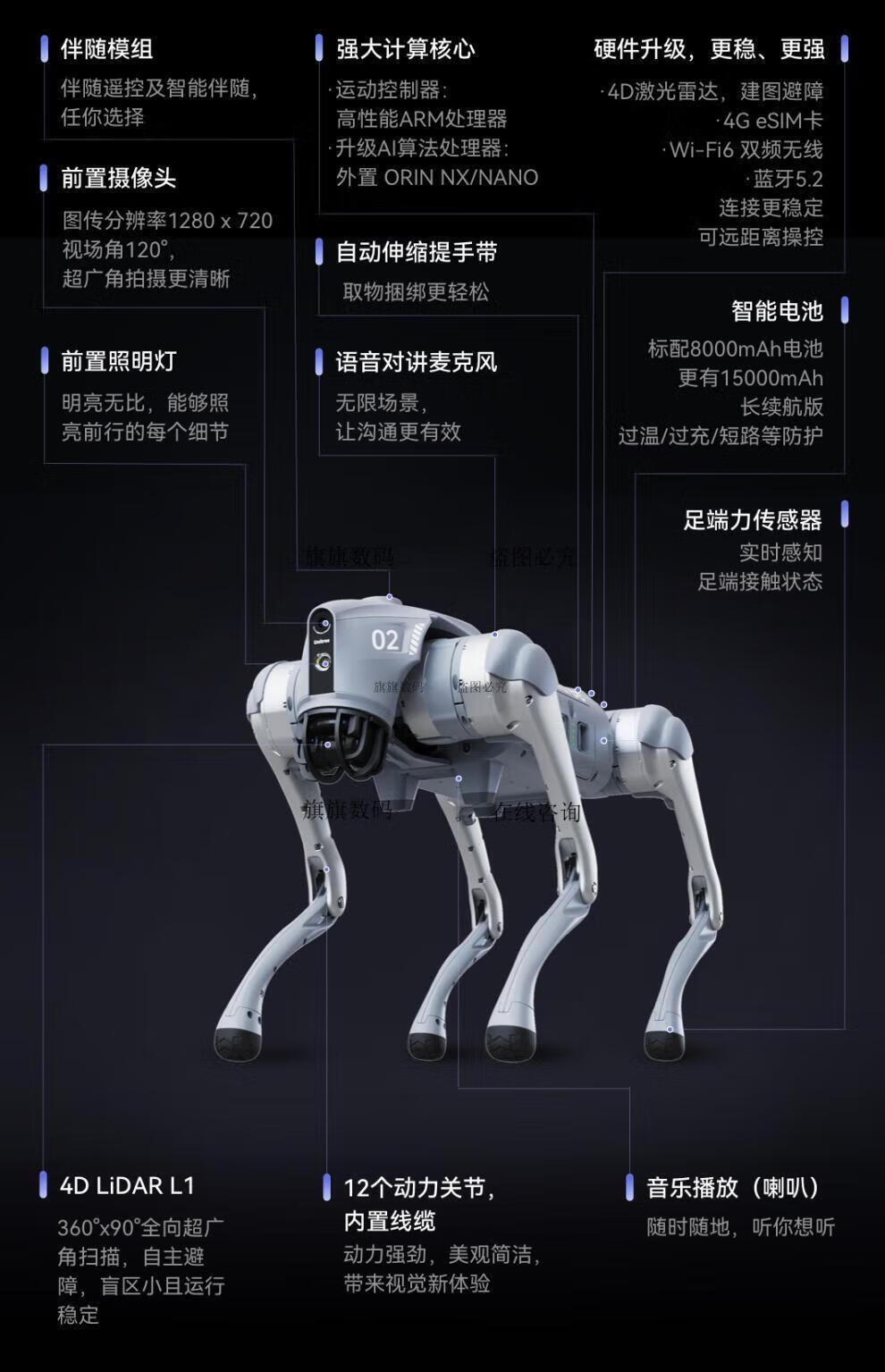 Yushu Voice AI Grand modèle de chien robot incarné, compagnon bionique intelligent, robot quadrupède, longue durée de vie de la batterie + télécommande Go2-Air