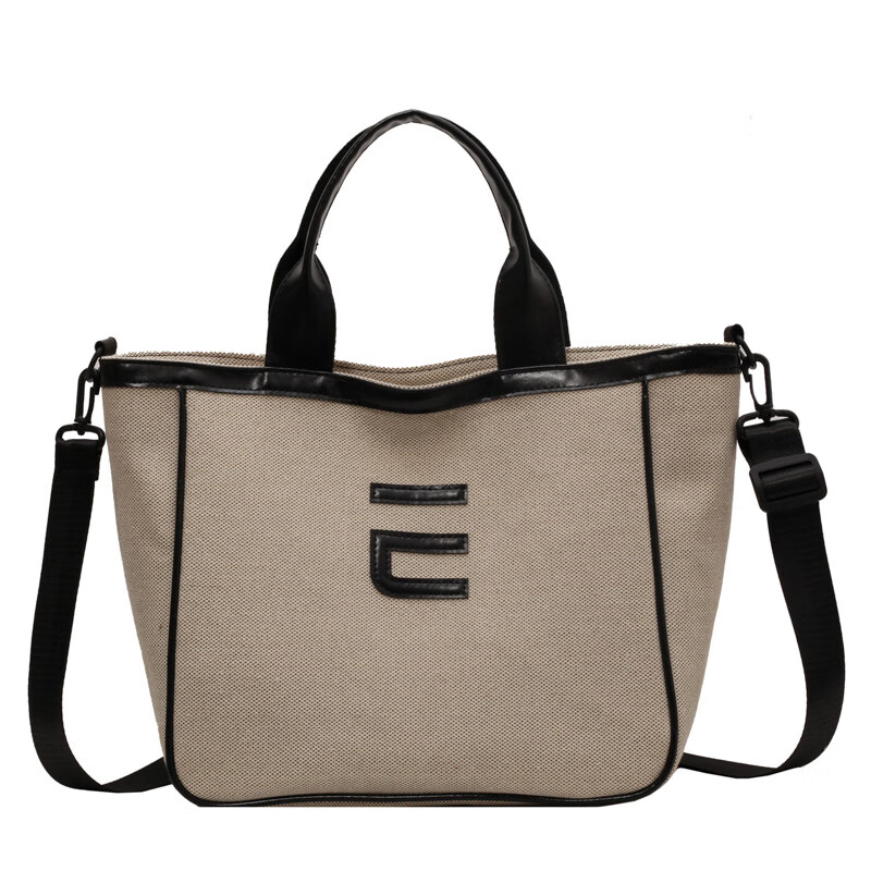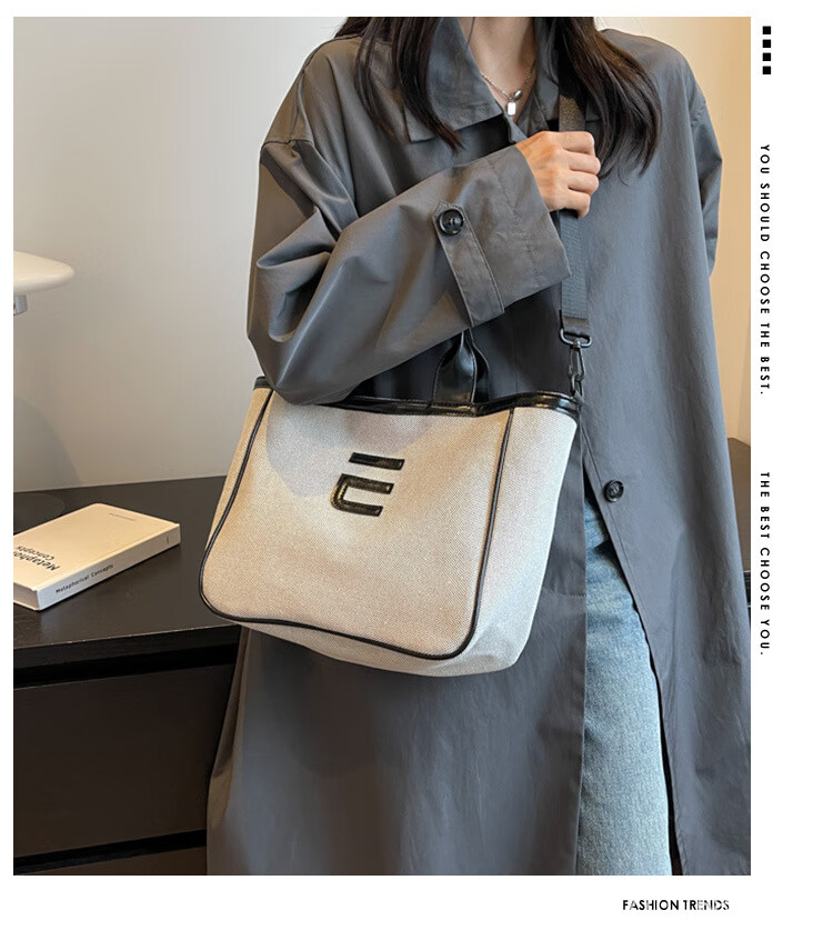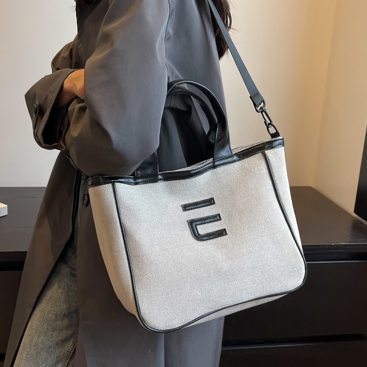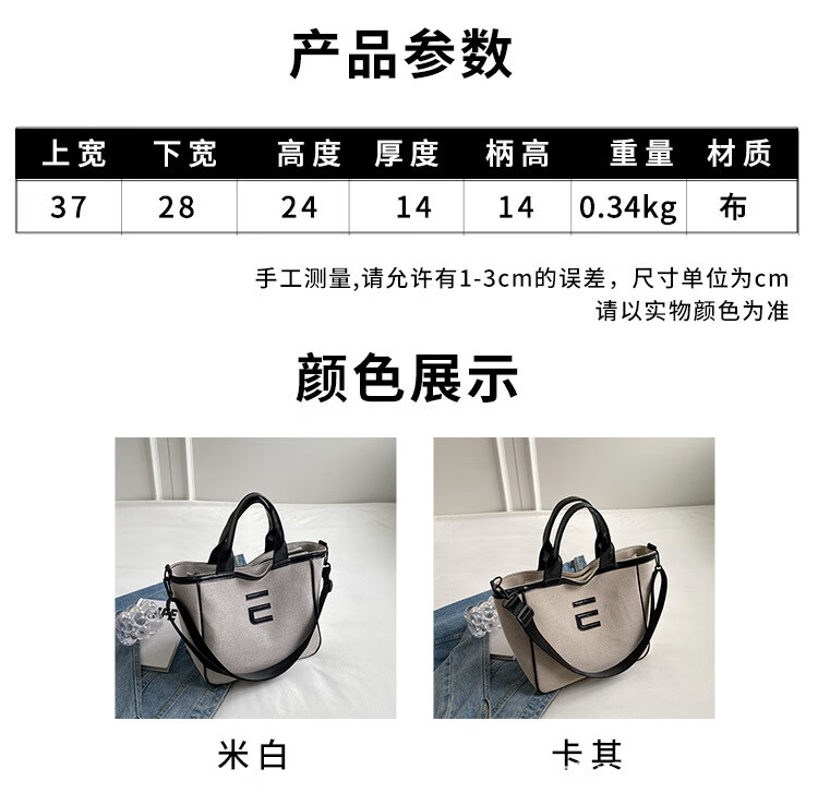 跨境韩式帆布包小众设计学生斜挎书法包上班便当包时尚字母妈咪包 米白色 均码
