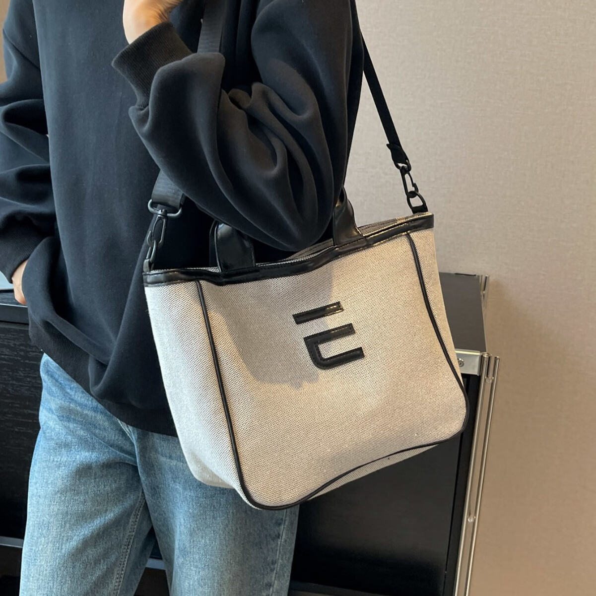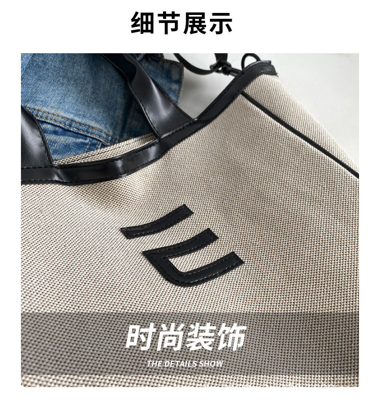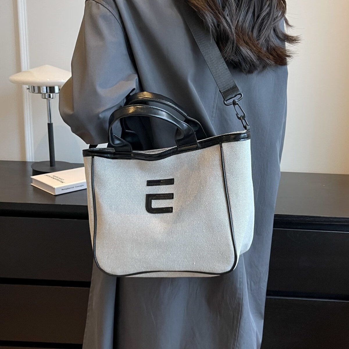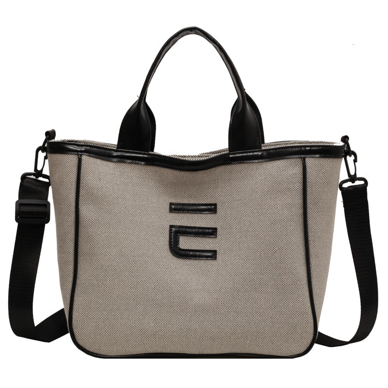 跨境韩式帆布包小众设计学生斜挎书法包上班便当包时尚字母妈咪包 米白色 均码