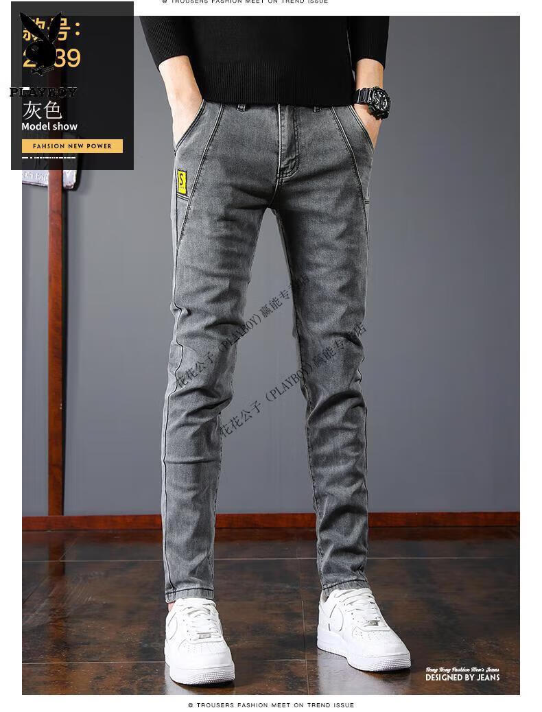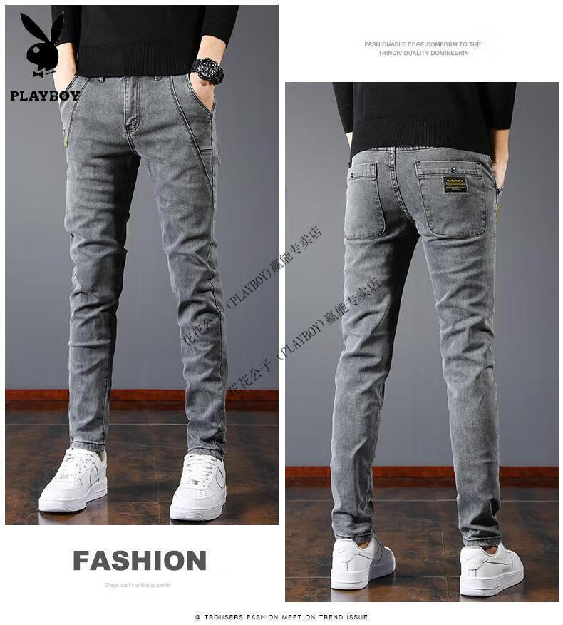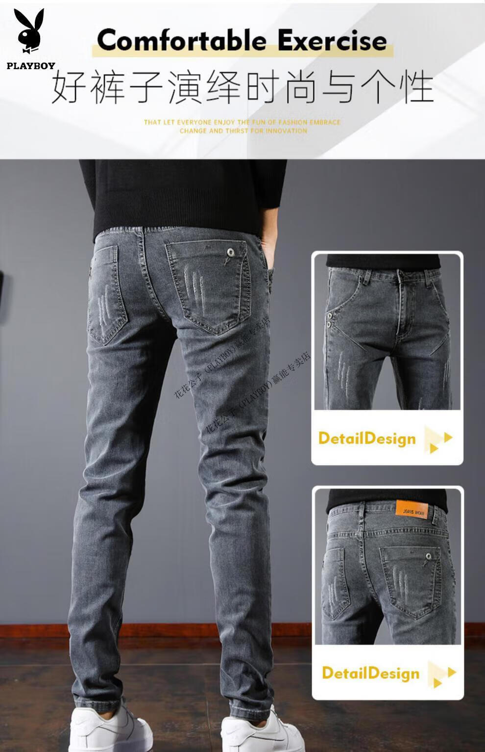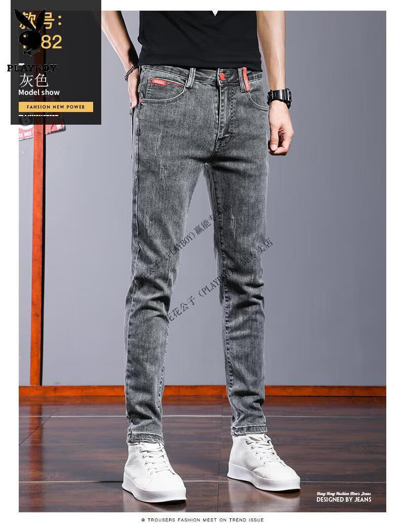 花花公子(PLAYBOY)冰氧吧牛仔裤男士夏季薄款修身小脚高弹力潮牌冰丝男款长裤子.+ 6636黑灰 M 34 身高170-185C 体重150-160