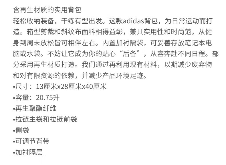 阿迪达斯(adidas)【劲浪运动】女子PRIME BACKPACK运动双肩包书包JD2260 图色 均 码