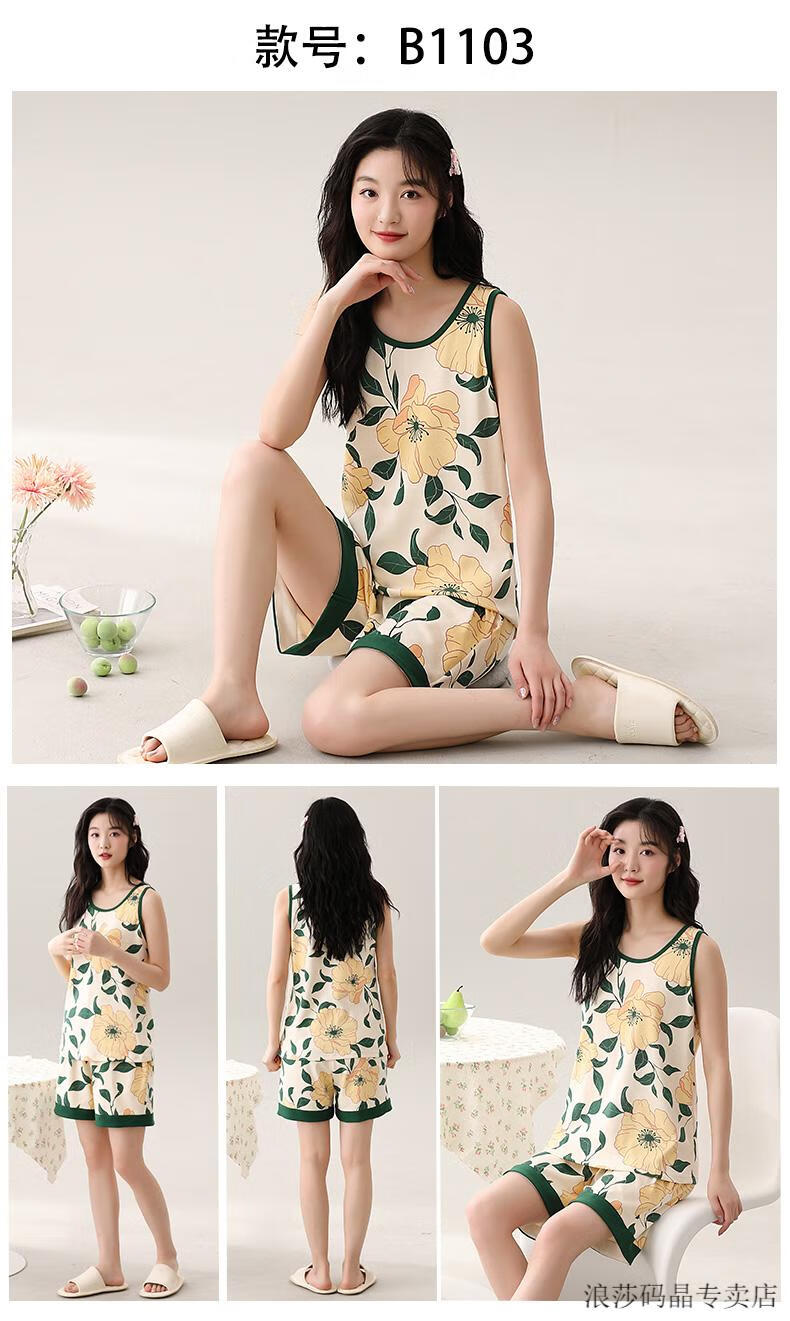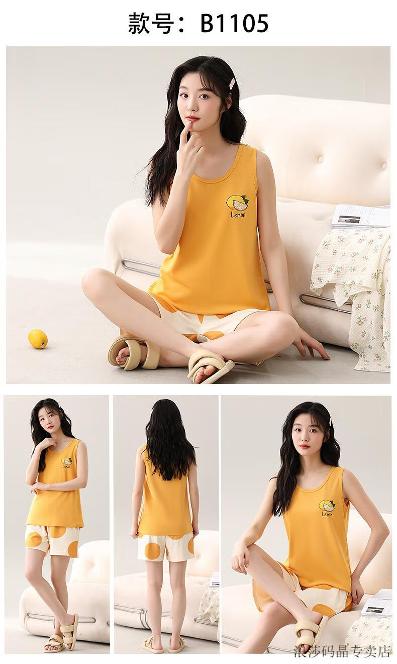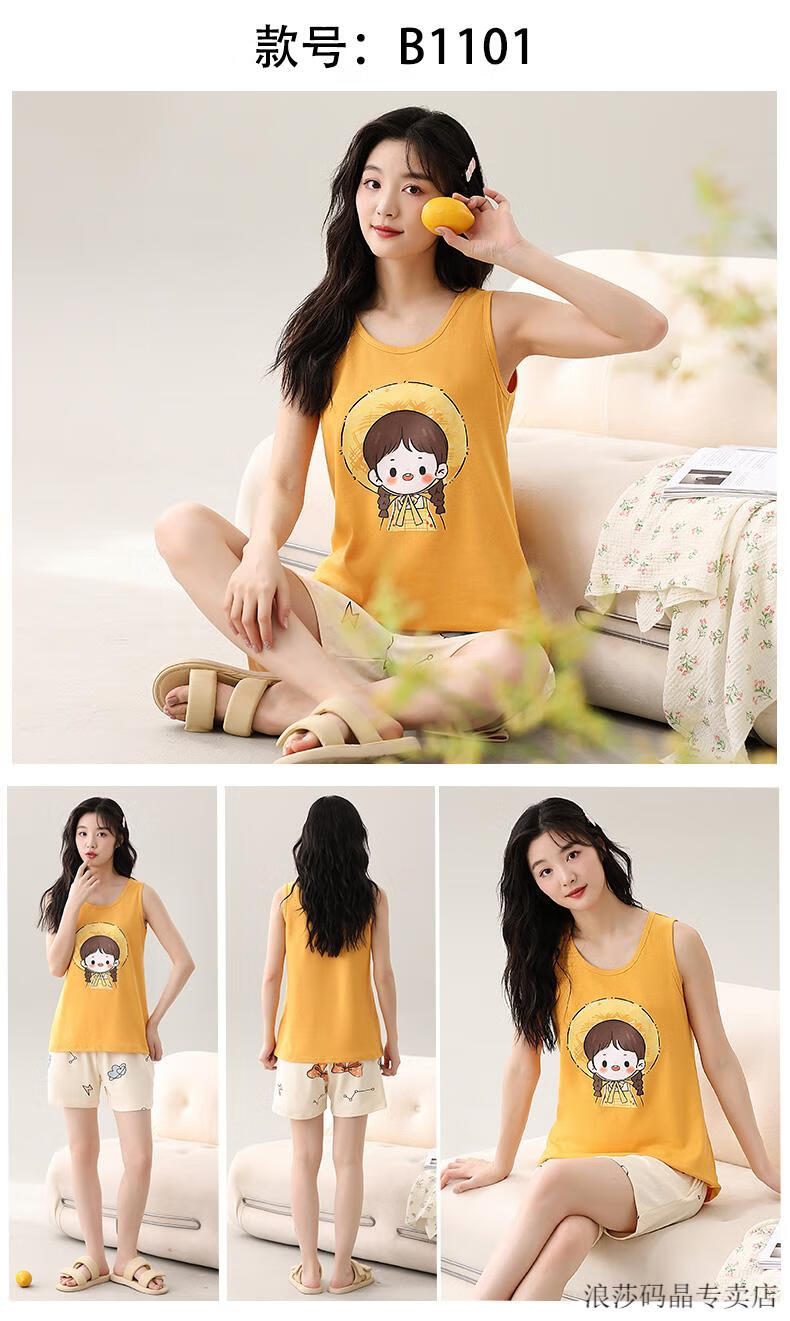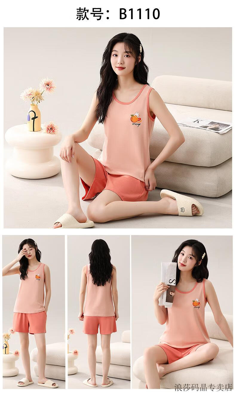 LangSha Pijama de chaleco todo en uno con almohadillas para los pechos para mujer verano fino algodón puro verano sin mangas ropa de hogar de gran tamaño se puede usar fuera del traje conjunto de chaleco con almohadillas para los pechos-F9853 M mujer recomendada 80-100 Jin Jin equivale a 0,5 kg