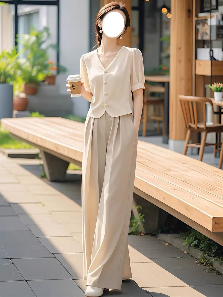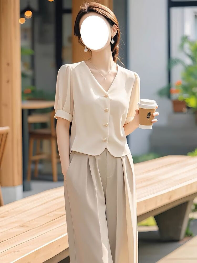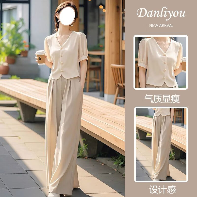 啄木鸟气质一整套穿搭通勤漂亮套装女装高端时尚名媛盐系轻熟两件套装夏 单杏色裤子 S 【建议95斤内】
