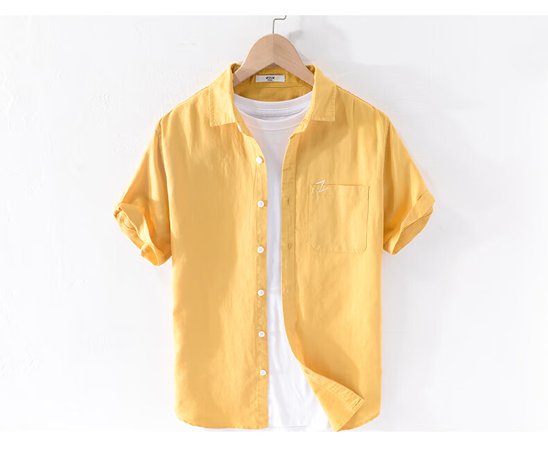 JEEP SPIRIT男士亚麻翻领短袖t恤宽松衬衫领上衣服有带领T棉麻料体恤麻布夏装 yunyi-9711白色 2XL 155斤左右
