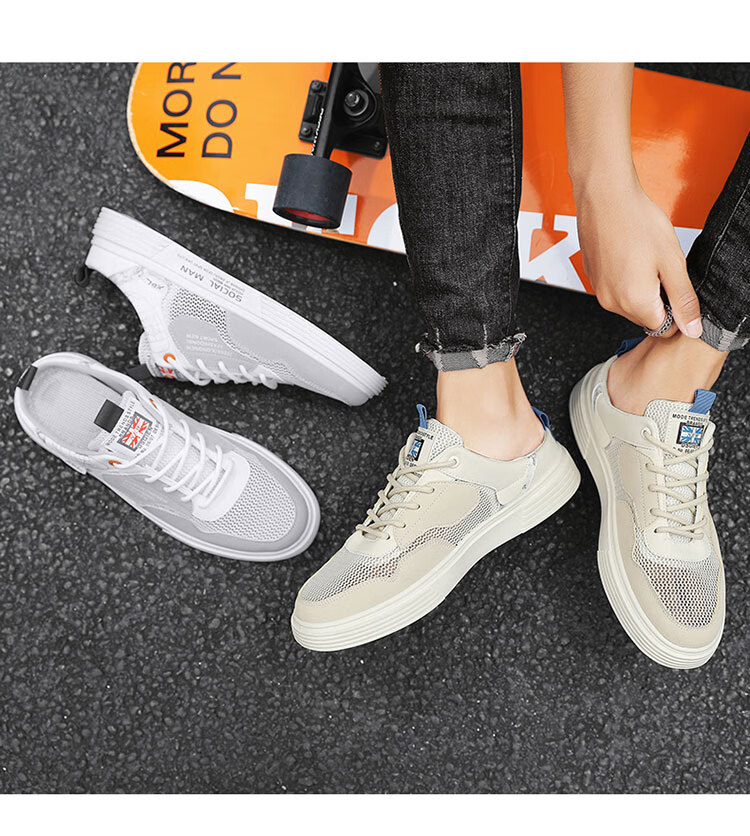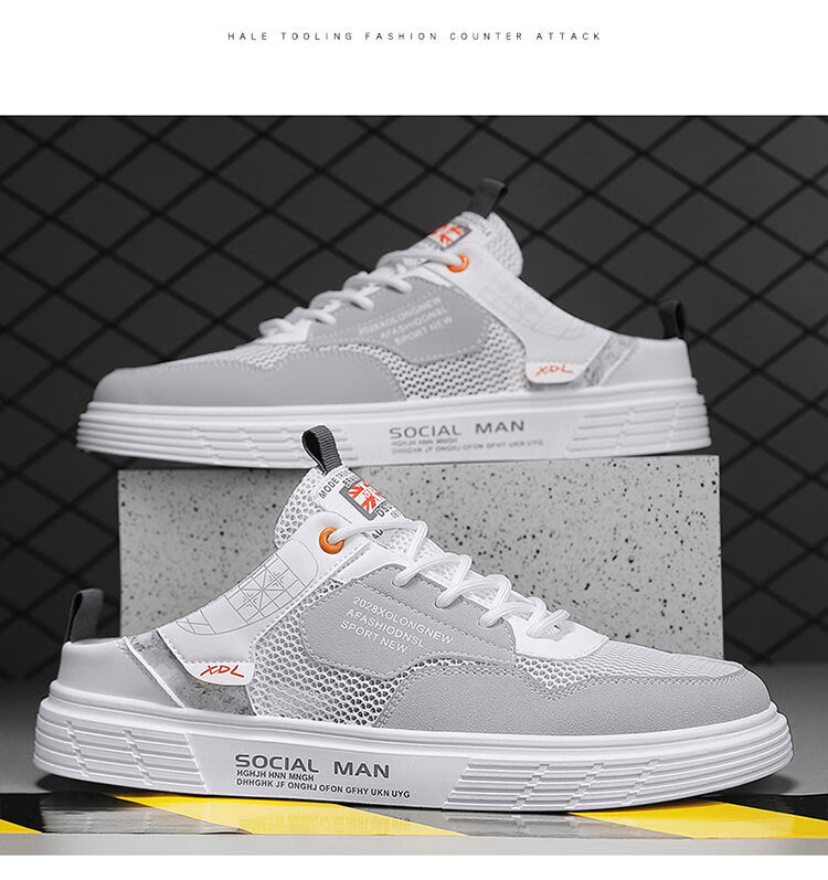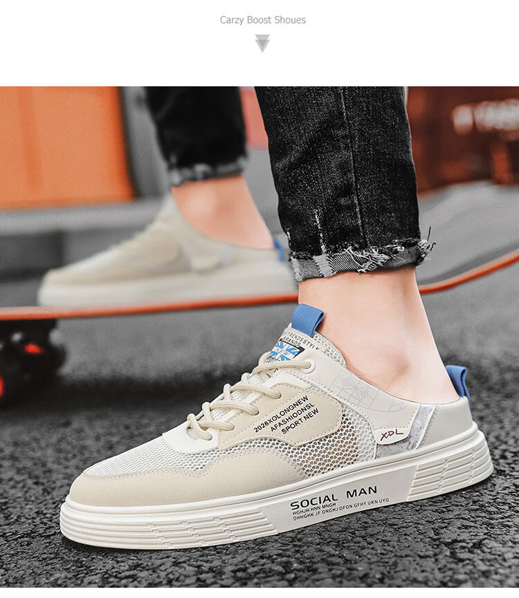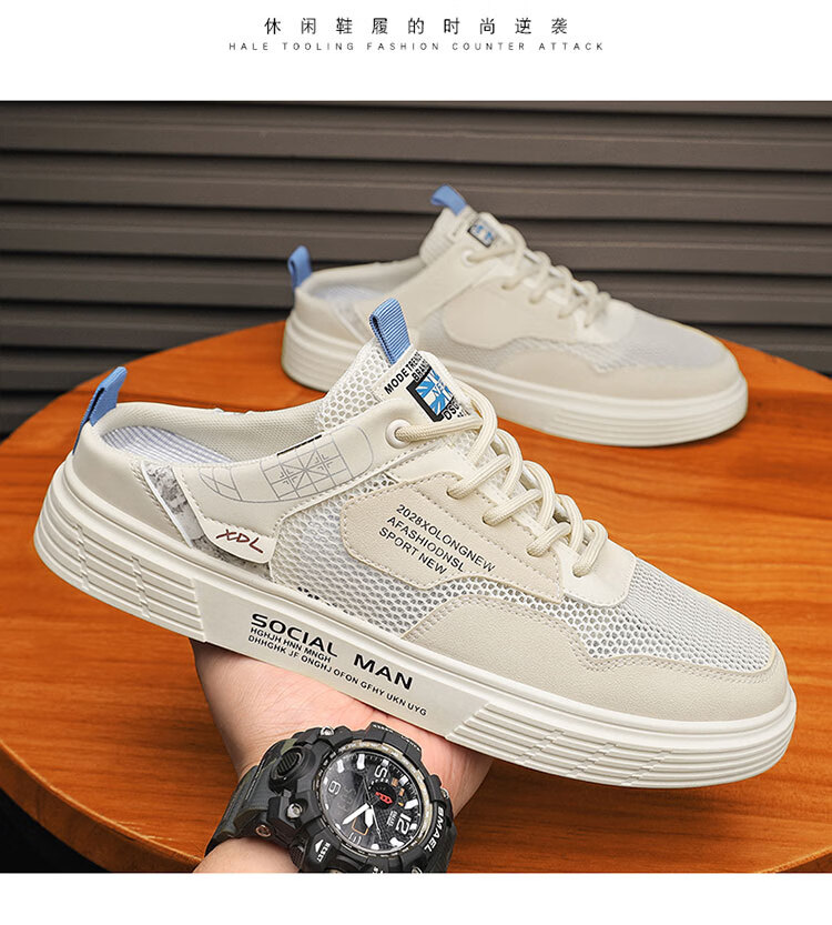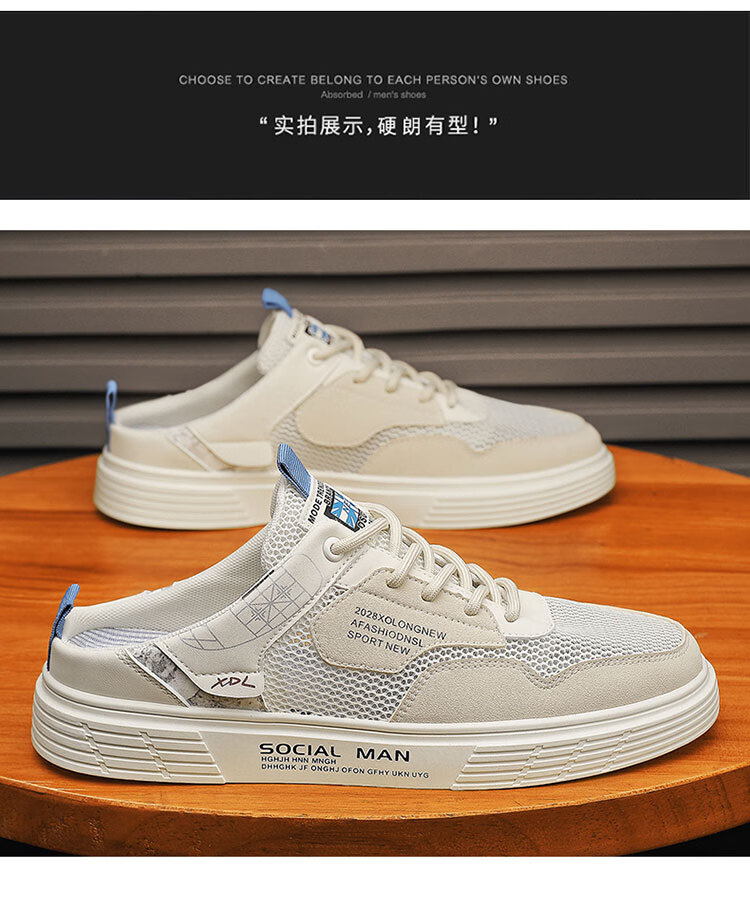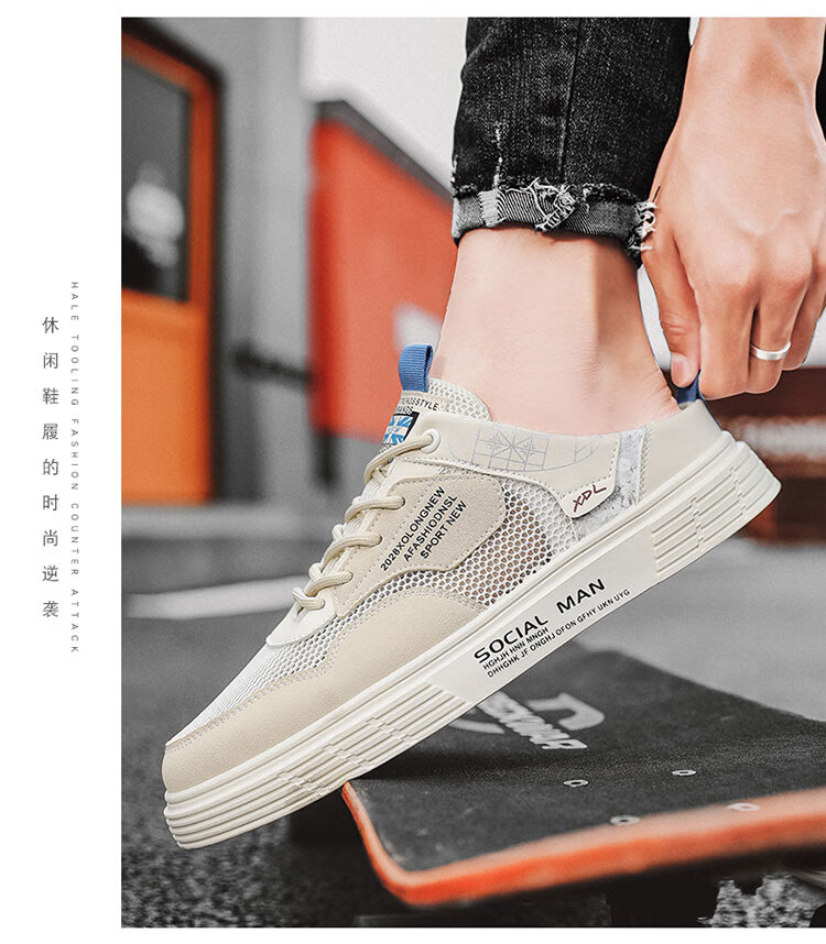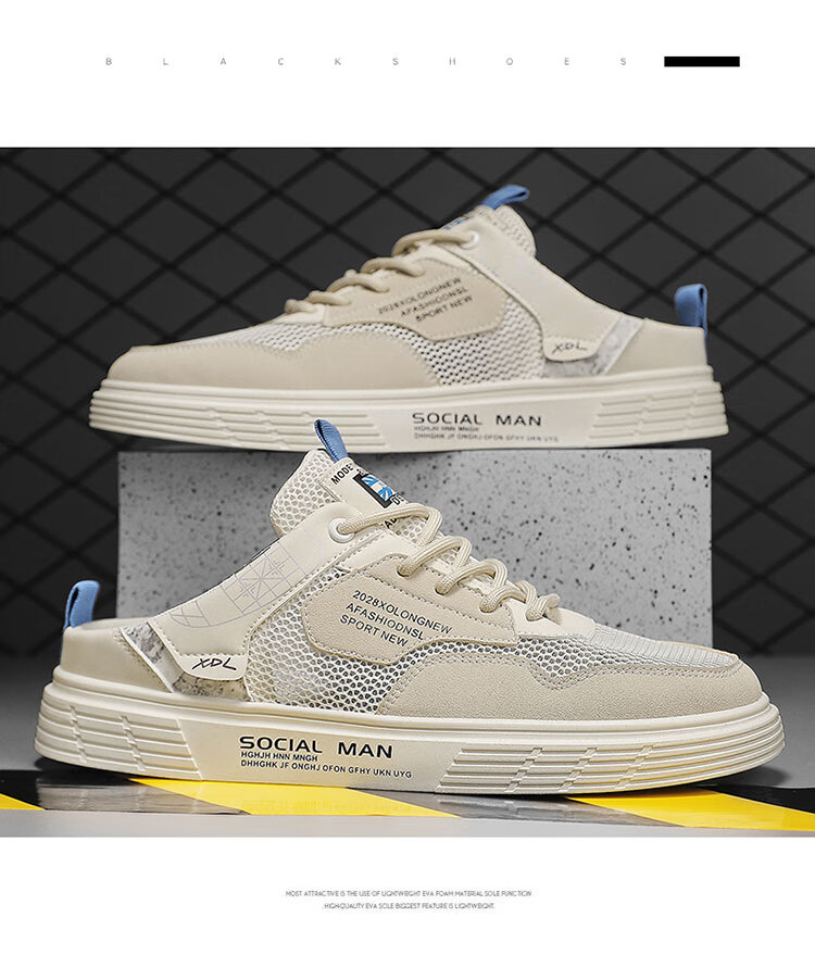 Demi-pantoufles pour hommes nouveau style d'été en maille respirante à semelles épaisses paresseux sans talon chaussures en toile pour hommes baskets tout-match beige 40
