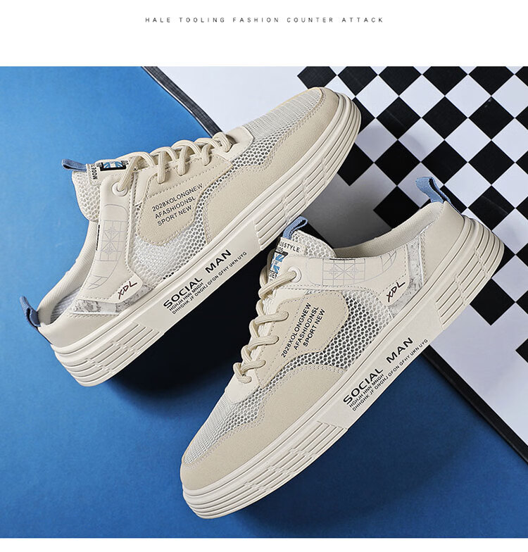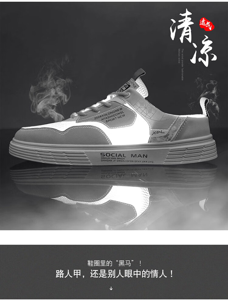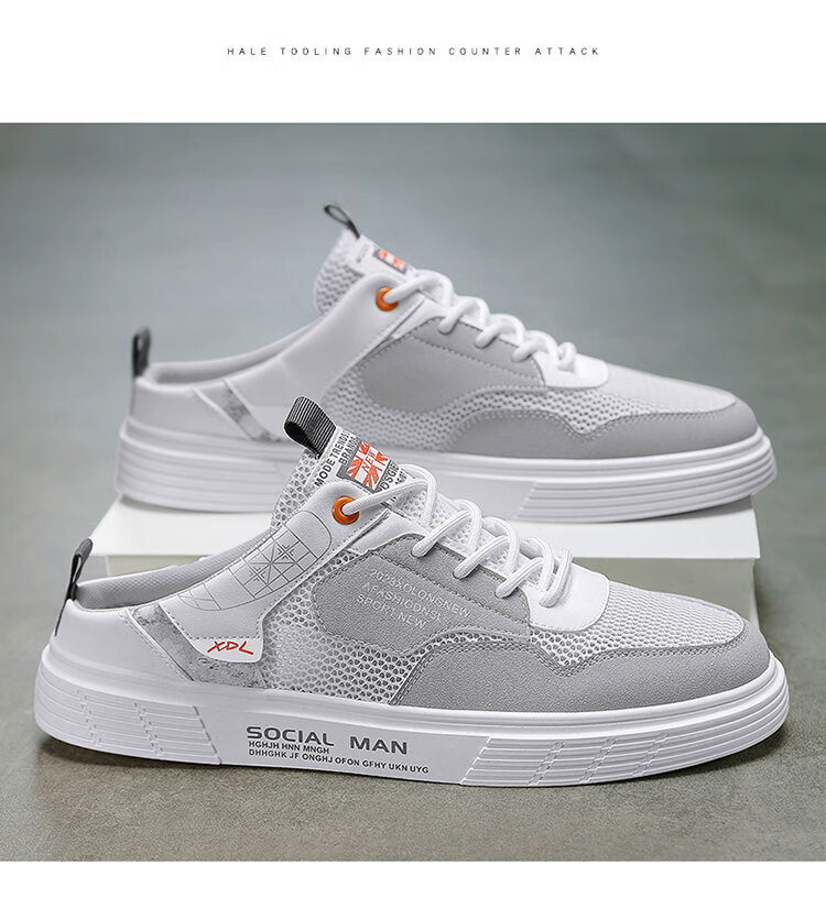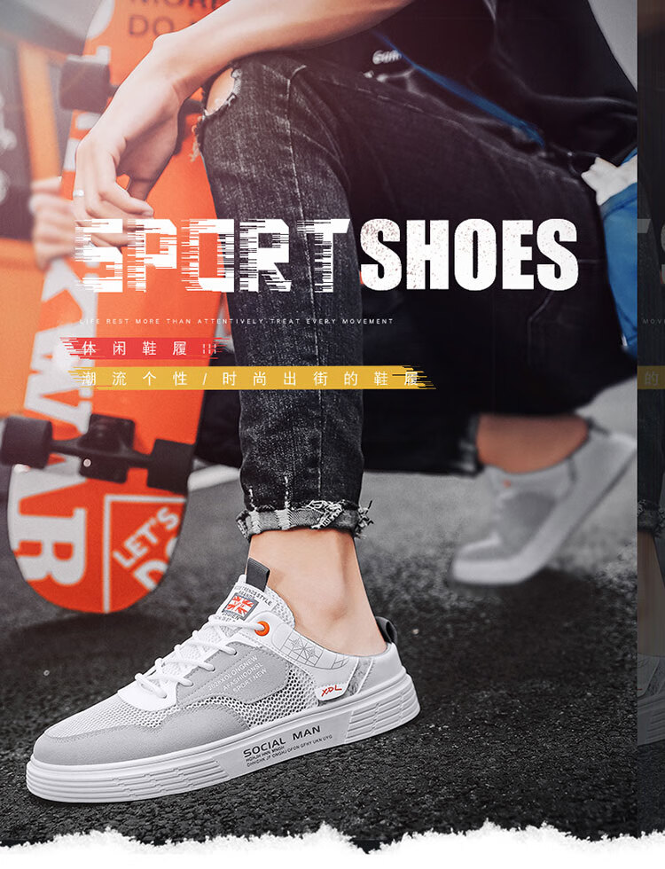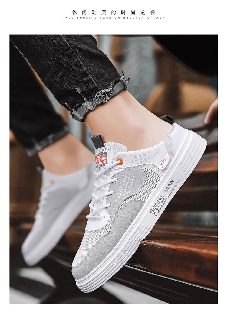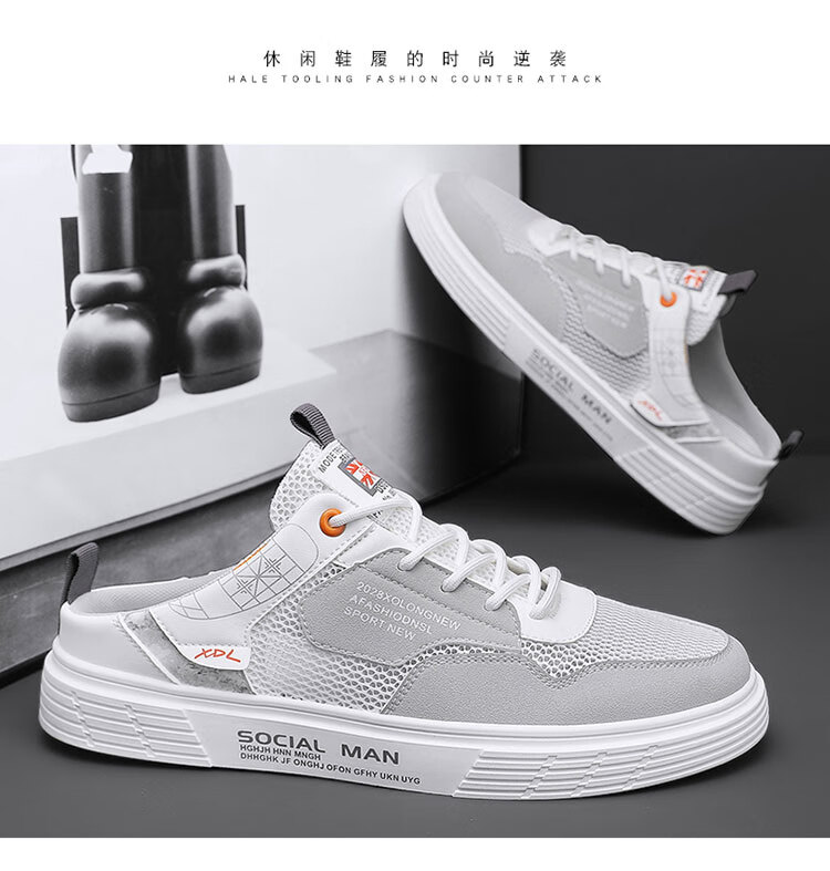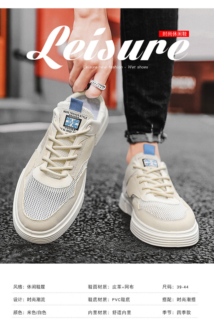 Demi-pantoufles pour hommes nouveau style d'été en maille respirante à semelles épaisses paresseux sans talon chaussures en toile pour hommes baskets tout-match beige 40