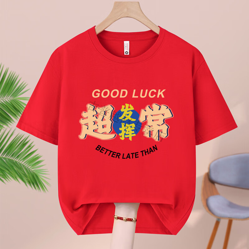 JEEP SPIRIT2025 Приходите на вступительные экзамены в среднюю школу. Красная футболка с короткими рукавами для мужчин и женщин, которые должны пройти золотой список на каждом экзамене и выиграть вступительные экзамены в колледж. Одежда для вступительных экзаменов в колледж должна выиграть - 829-красный S/(80-95ЦзиньЦзин равен 0,5 кг)