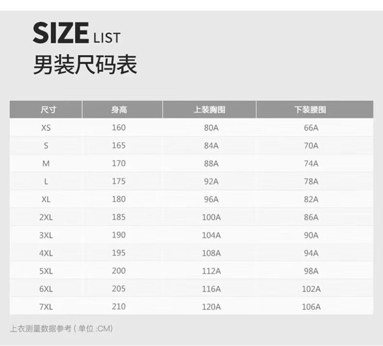 China (cm) 160-165/84-86 165-170 / 88-90 167-172 / 92-96 168-173 / 98-102 170-176 / 106-110