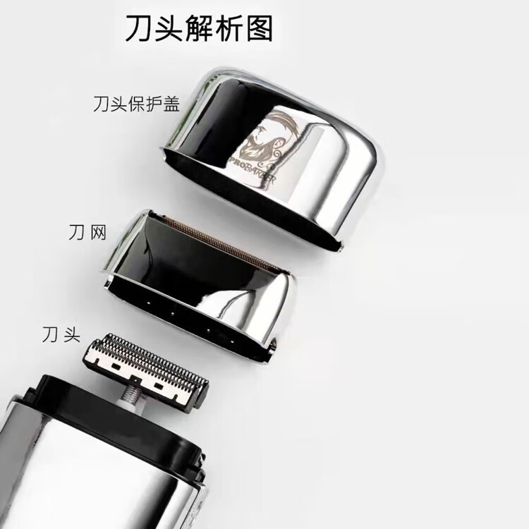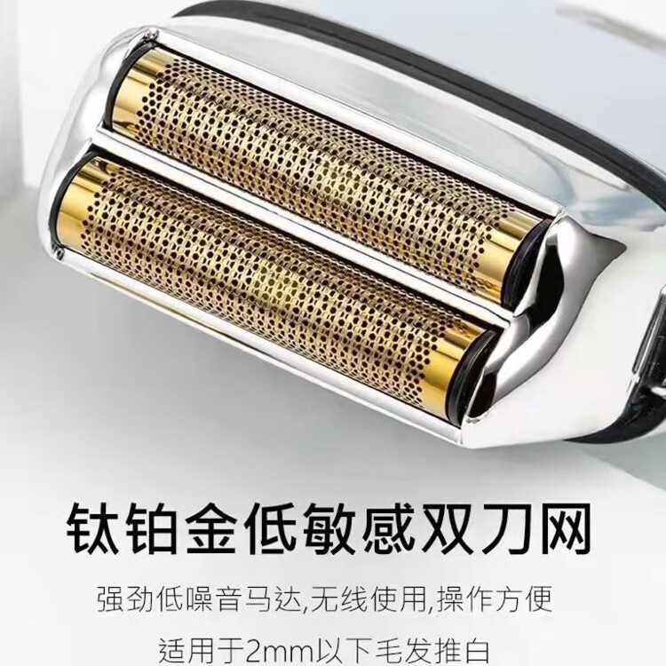 比尔比尔9731新款金属剃须刀发廊复古油头渐变增白白光专用理发器 比尔9028原装刀网刀片一套