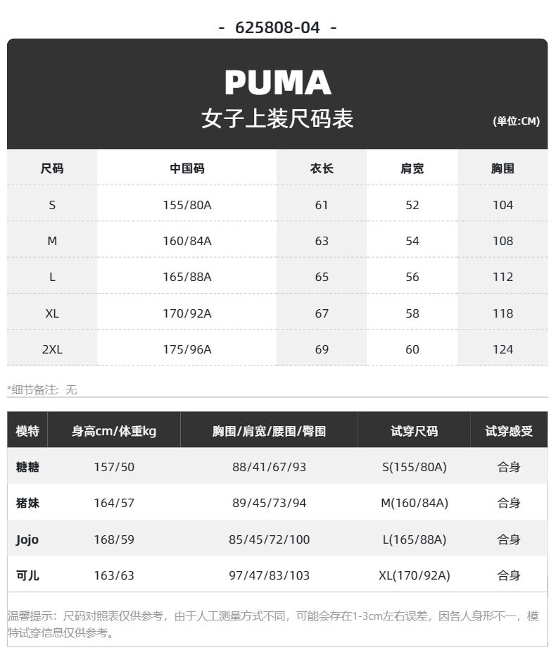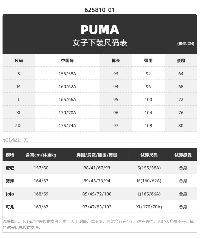 China (cm) 160-165/84-86 165-170 / 88-90 167-172 / 92-96 168-173 / 98-102 170-176 / 106-110